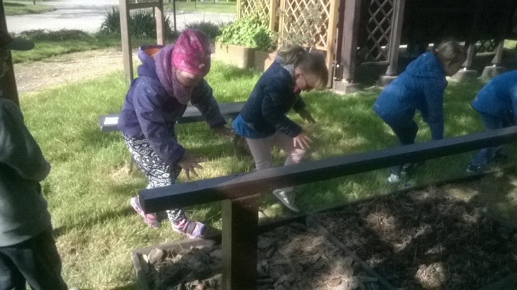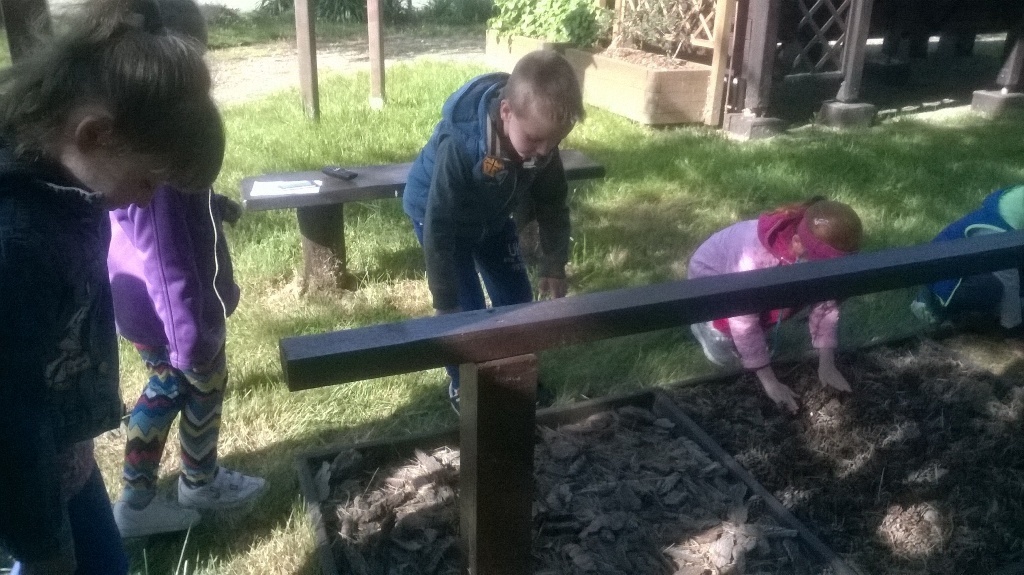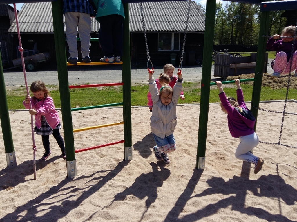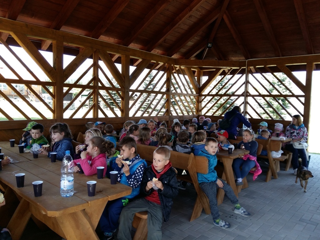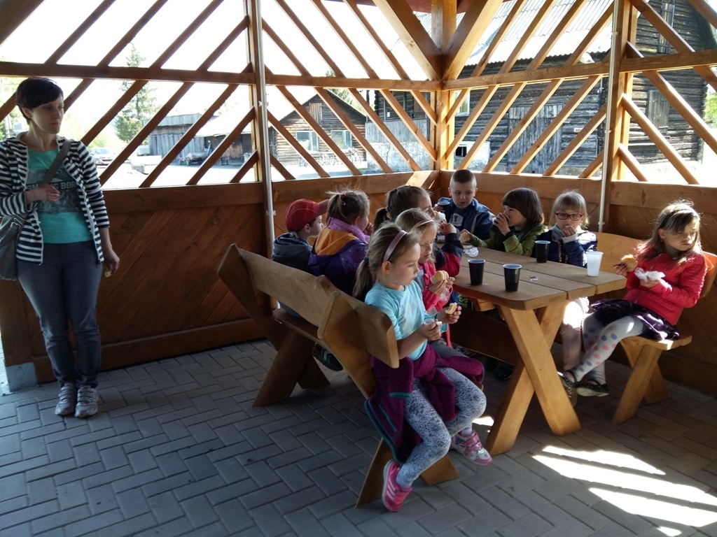 Po wyczerpującej pracy, w wielkiej altanie wybudowanej na łące zjedliśmy drugie śniadanie. Później bawiliśmy się i biegaliśmy po łące i placu zabaw. Poszliśmy też nad malutki stawik, gdzie mogliśmy zobaczyć dzieci żab – kijanki.