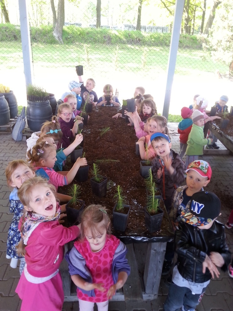 Zmęczeni i zadowoleni wróciliśmy z naszymi sosnami do przedszkola. Czekamy na kolejną wyprawę z panią Bogusią, tym razem na Halę Izerską.