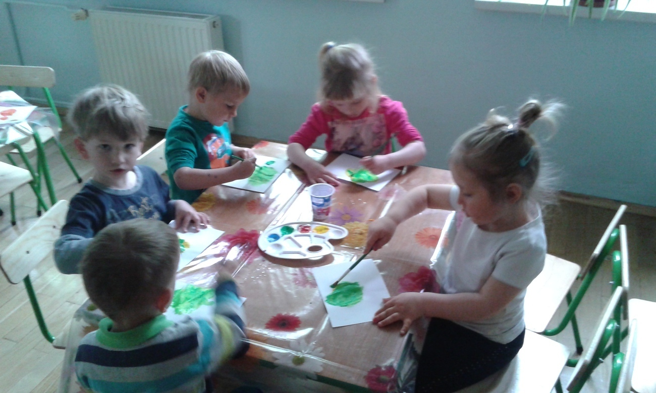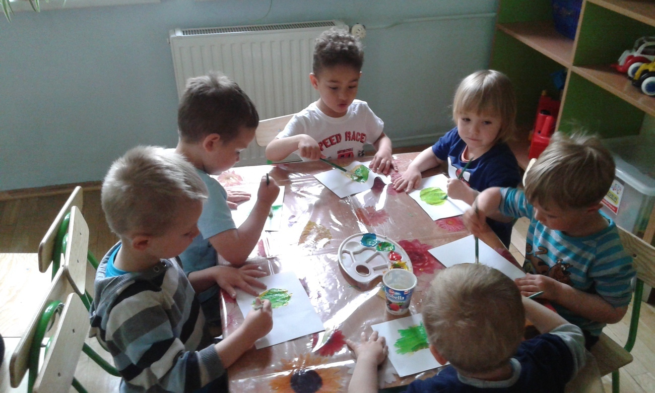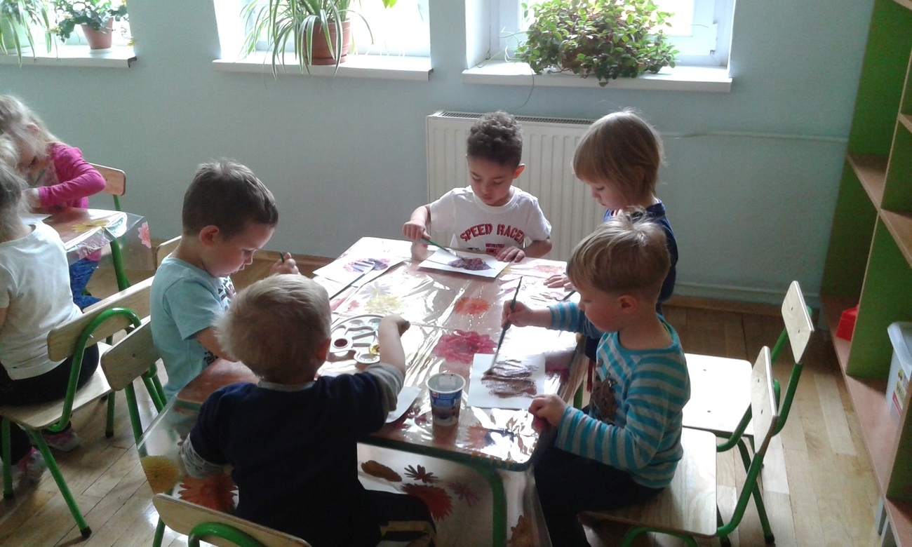 Każde z dziecko otrzymało kartkę, farby i pędzel, tak przygotowani mogliśmy przystąpić do eksperymentu.