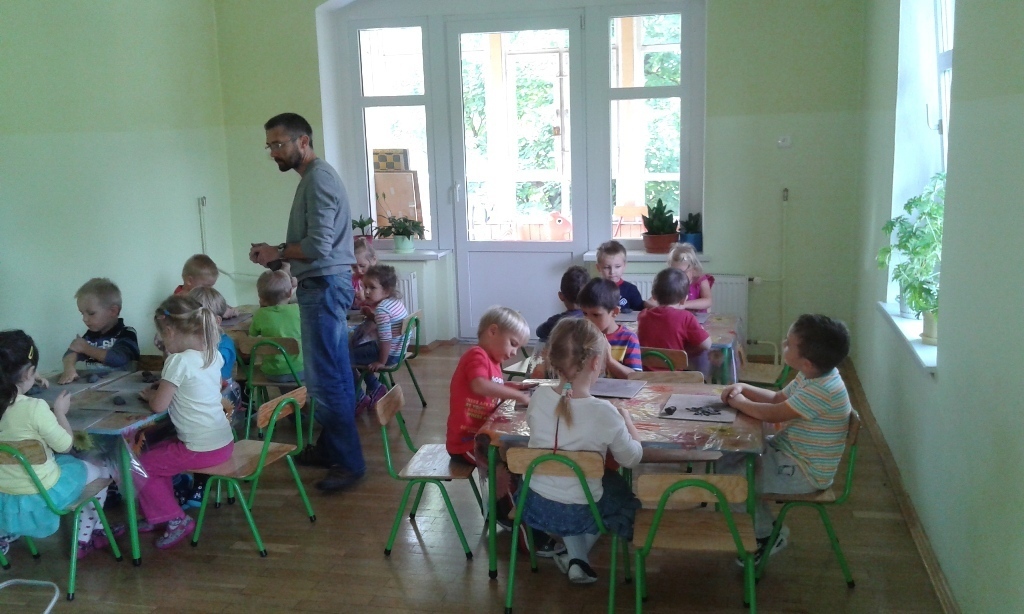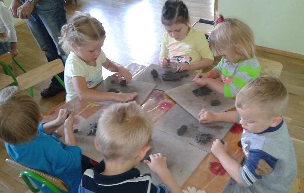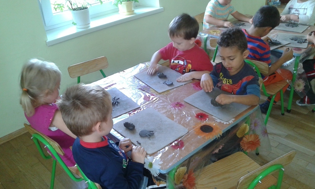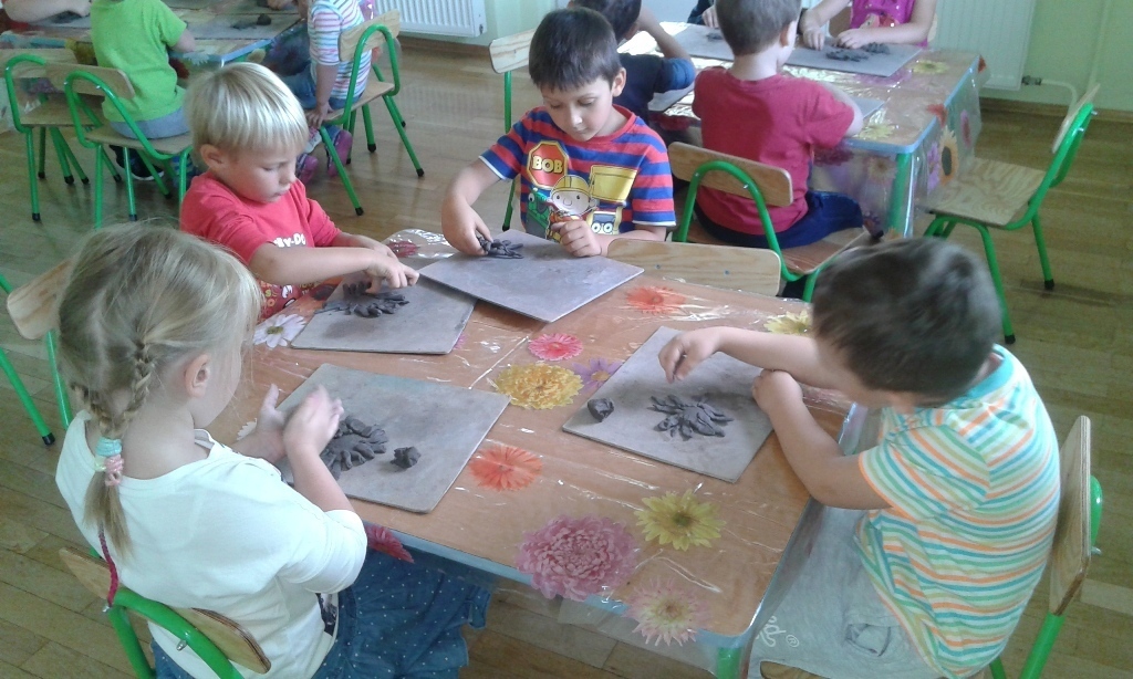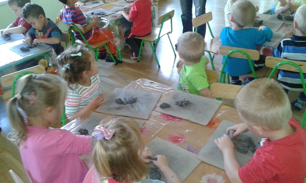 15.09.2015 odbyły się pierwsze zajęcia ceramiczne w grupie II. Przedszkolaki były podekscytowane nowymi zajęciami. Pan Rafał wytłumaczył w jaki sposób będą się bawić gliną oraz powiedział czego ona bardzo nie lubi. Kiedy Tygryski przystąpiły do działania były bardzo zdziwione fakturą gliny, która była zimna, twarda i na dodatek brudziła strasznie ręce (co na samym początku bardzo przeszkadzało). Natomiast po oswojeniu się rozpoczęła się świetna zabawa. A co będzie na kolejnych zajęciach?