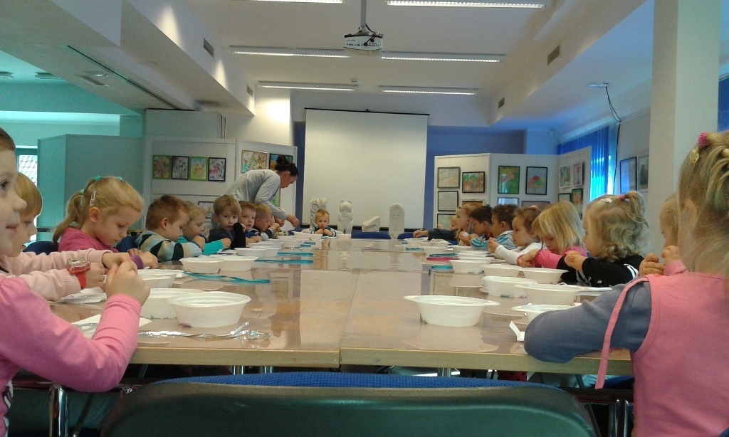 Kiedy wszyscy skończyli pracę, myśleliśmy, że będziemy wracać do przedszkola ale myliliśmy się, ponieważ pani oprowadziła nas po przepięknym muzeum.