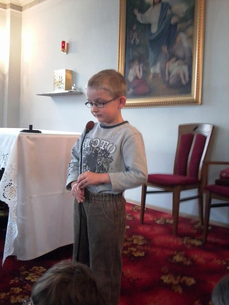 W dniu 02.03.2012 r uczestnicy konkursu recytatorskiego "Brzechwa dzieciom" z grup IV i V udali się do Zakładu Pielęgnacyjno - Opiekuńczego przy ulicy Żeromskiego aby zaprezentować się w pokonkursowym repertuarze. Przedstawione zostały oczywiście utwory J. Brzechwy przygotowane przez zdobywców nagród. Po bardzo miłym przywitaniu rozpoczęły się nasze prezentacje. Nie ukrywamy, że każdego z nas zjadała mała trema przed występem, zwłaszcza przed tak liczną publicznością jak również przed mówieniem do mikrofonu. Na całe szczęście przezwyciężyliśmy strach a wspaniała publiczność dodała nam odwagi. Burzą oklasków zostały nagrodzone recytacje utworów: „Kaczki dziwaczki”, „Samochwały”, „Kwoki”, „Psich smutków”, „Muchy”, „Lenia”, „Na wyspach Bergamutach”, „Kłamczuchy”, czy też wierszy „Na straganie”, „Jajko”, „Wy nie wiecie a ja wiem” czy znanego wszystkim „Tańcowała igła z nitką”. Salwom śmiechu i łzom wzruszenia nie było końca.