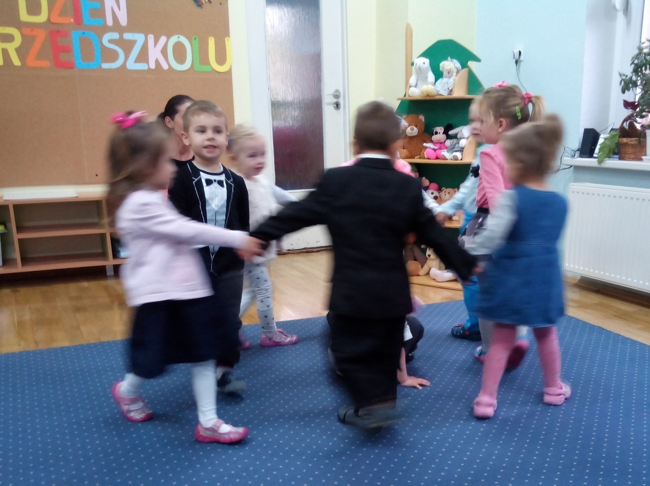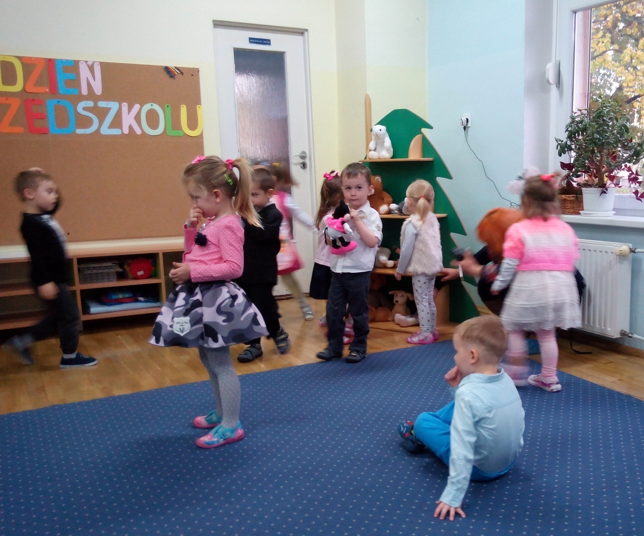 Rozpoczęliśmy przedstawieniem opisującym dzień w przedszkolu, po nim nastąpiło uroczyste włączenie w poczet przedszkolaków Tuptusia naszych nowych kolegów i koleżanek. Wszyscy spisaliśmy się na medal i wróciliśmy do domów już jako najprawdziwsze przedszkolaki. Dziękujemy naszym rodzicom za to, że uczestniczyli w tym ważnym wydarzeniu razem z nami.