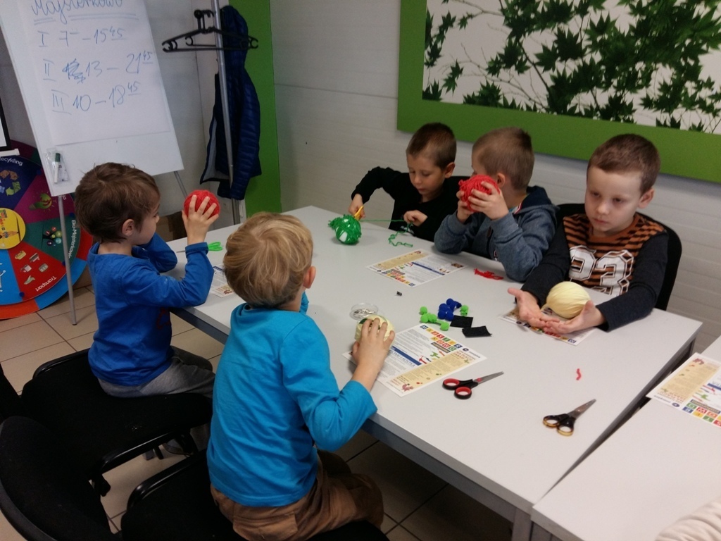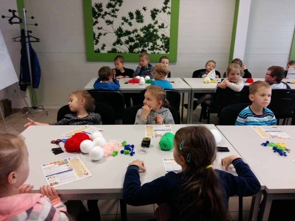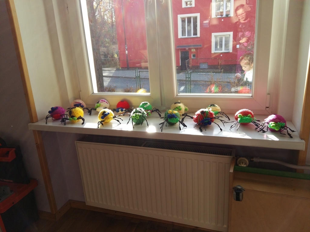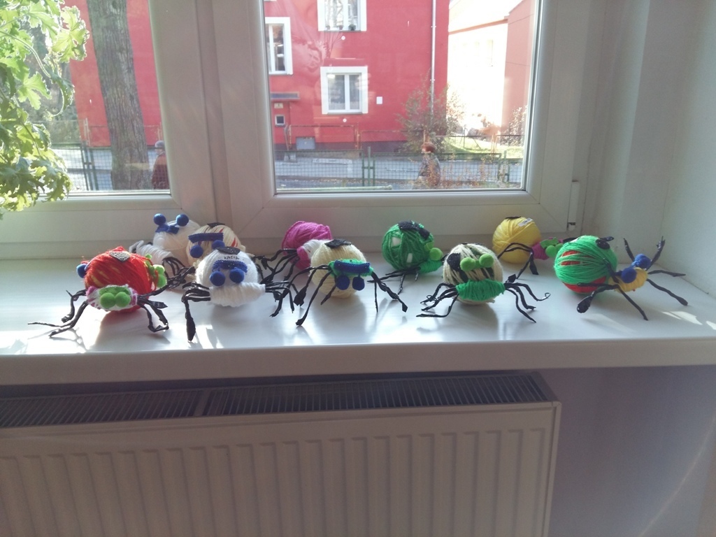 Dnia 30.10.2015 r grupa starszaków wzięła udział w warsztatach w Castoramie. Gdy doszliśmy na miejsce czekała już na nas pani prowadząca oraz przygotowane przez nią materiały do zajęć. Dowiedzieliśmy się, że będziemy robić pajączki przy użyciu wełny i kulek styropianowych. Najtrudniejsze okazało się nawijanie wełny, ale przy małej pomocy wszystkim się udało. Potem wystarczyło już tylko przymocować nóżki i głowę i pająk gotowy. To były bardzo pracochłonne zajęcia ale warte wysiłku, bo pajączki wyszły śliczne.