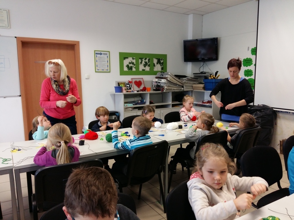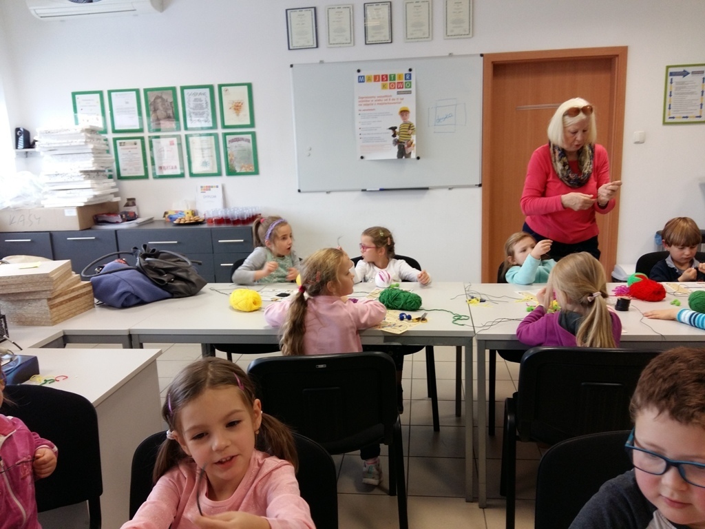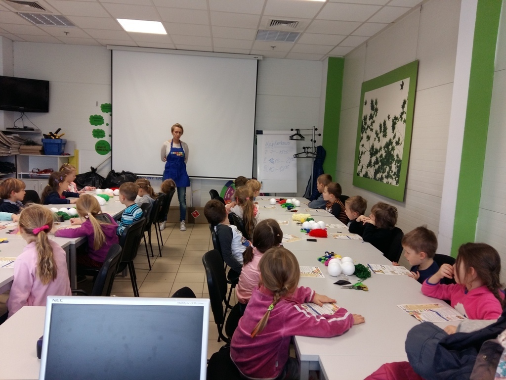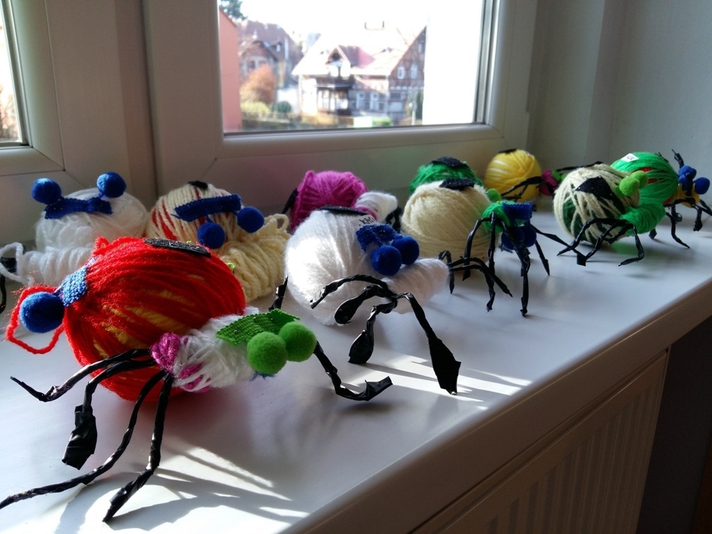 Dnia 30.10.2015 r grupa starszaków wzięła udział w warsztatach w Castoramie. Gdy doszliśmy na miejsce czekała już na nas pani prowadząca oraz przygotowane przez nią materiały do zajęć. Dowiedzieliśmy się, że będziemy robić pajączki przy użyciu wełny i kulek styropianowych. Najtrudniejsze okazało się nawijanie wełny, ale przy małej pomocy wszystkim się udało. Potem wystarczyło już tylko przymocować nóżki i głowę i pająk gotowy. To były bardzo pracochłonne zajęcia ale warte wysiłku, bo pajączki wyszły śliczne.