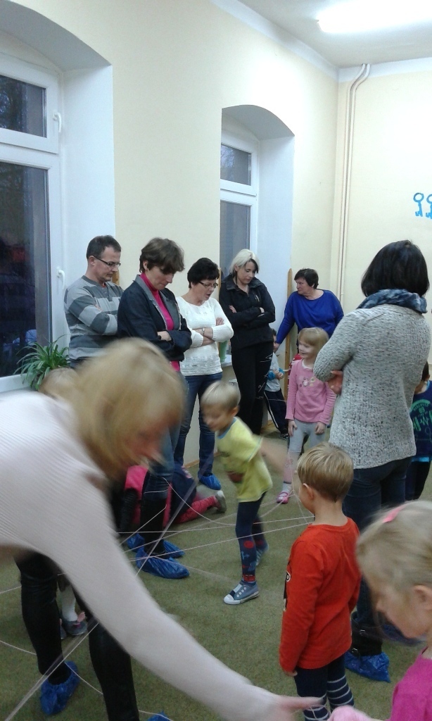 Dzieci mogły wróżyć sobie z kolorów, wosku i butów a zajęcia zakończyła wspólna integracja poprzez stworzenie ogromnej pajęczyny z kłębka wełny.