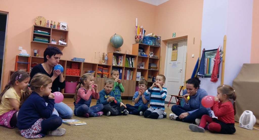 W dniu 26 listopada o godz. 15.30 odbyły się zajęcia otwarte dla rodziców. Temat zajęć dotyczył powietrza. Wspólnie z dziećmi próbowaliśmy je złapać, schować do kubeczka i balonika, zmierzyć jego siłę. Doszliśmy do wniosku, że powietrza nie da się złapać i że może być przyjemne np. jako lekki wietrzyk lub groźne jak huragan. Głównym celem zajęć było pokazanie rodzicom w jaki sposób prowadzimy zajęcia dydaktyczne oraz jak dzieci funkcjonują w grupie.
