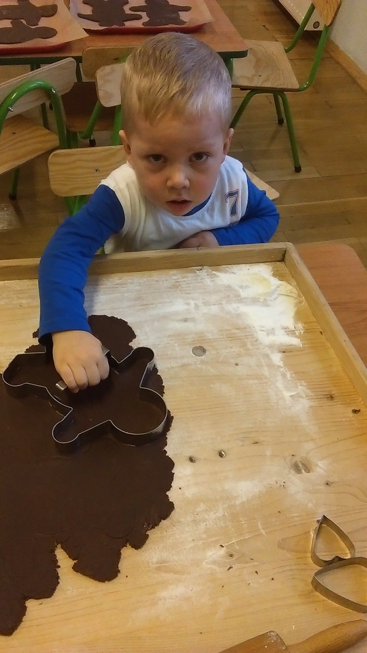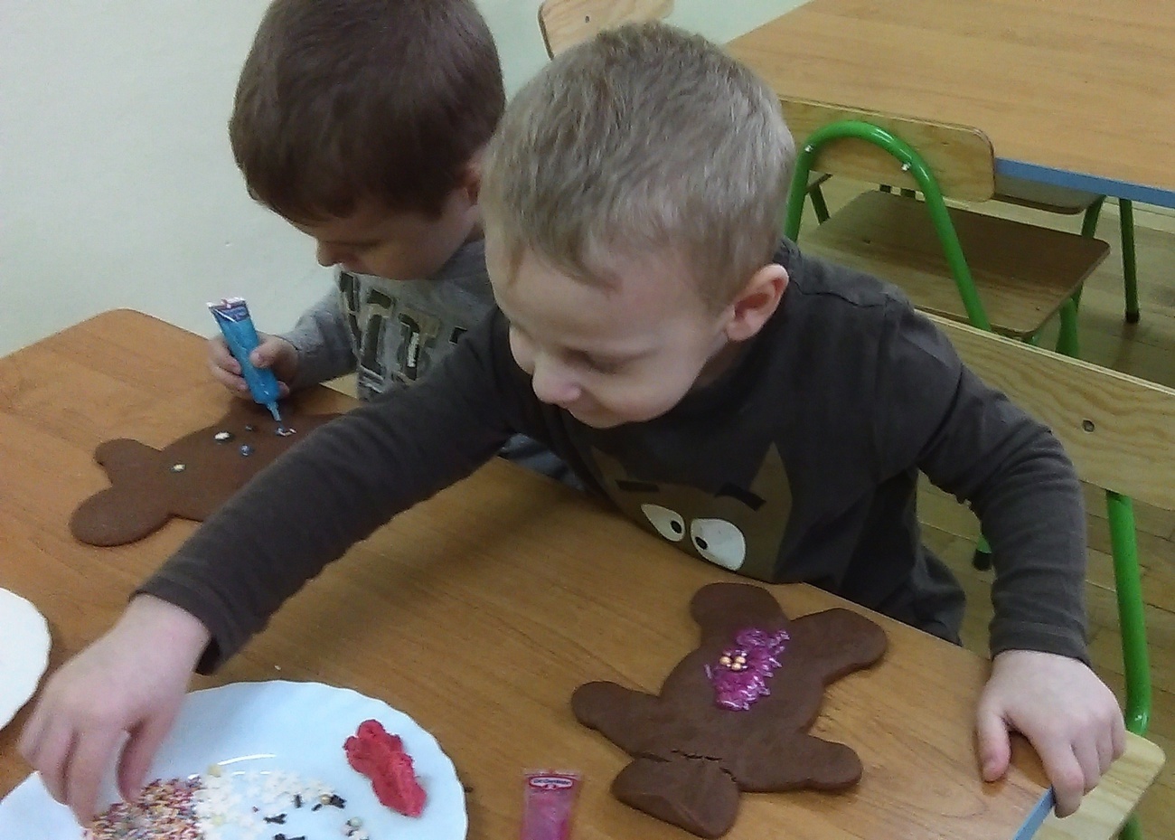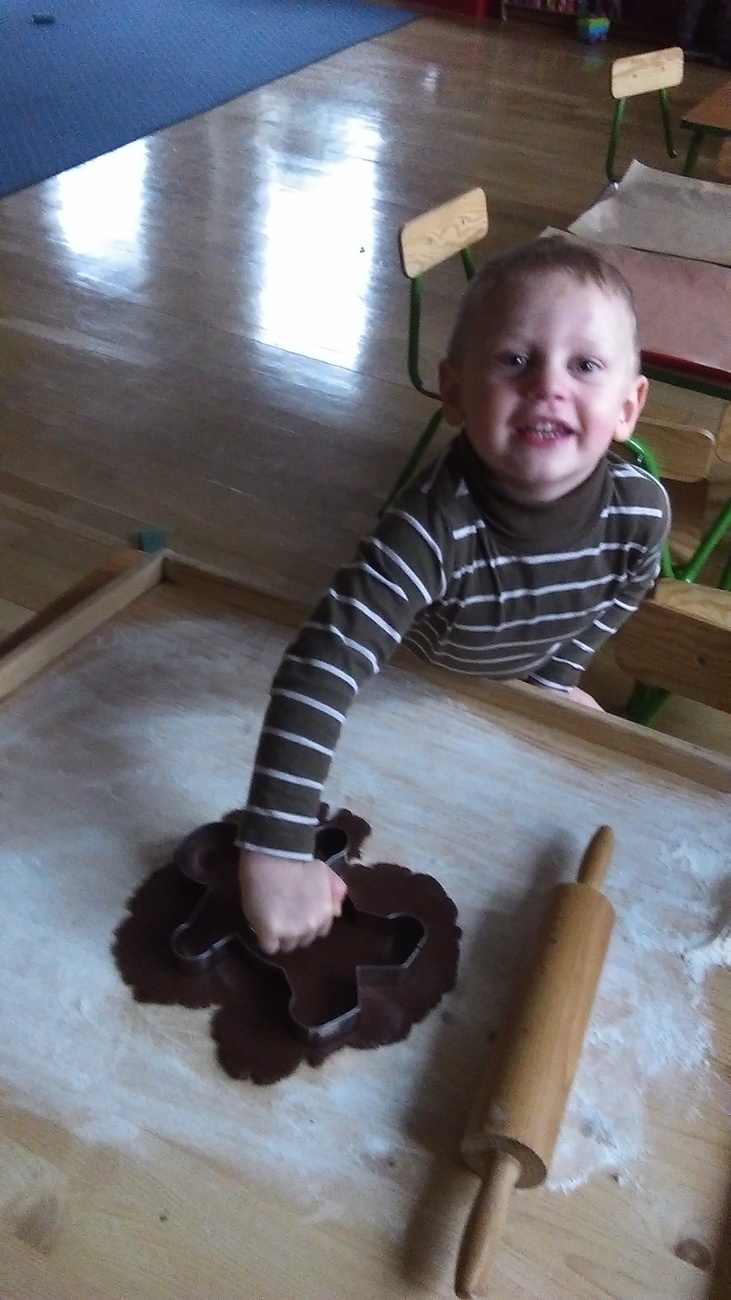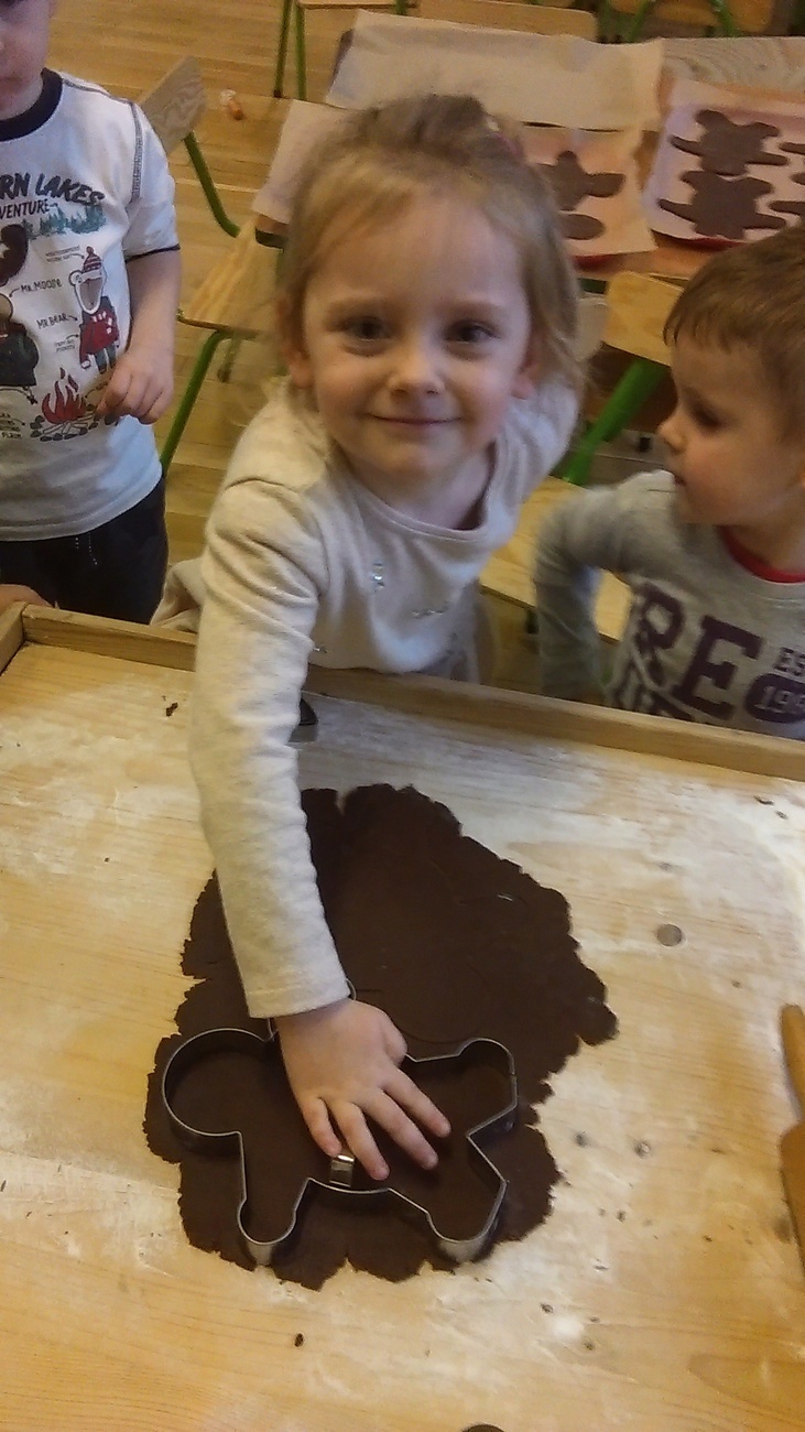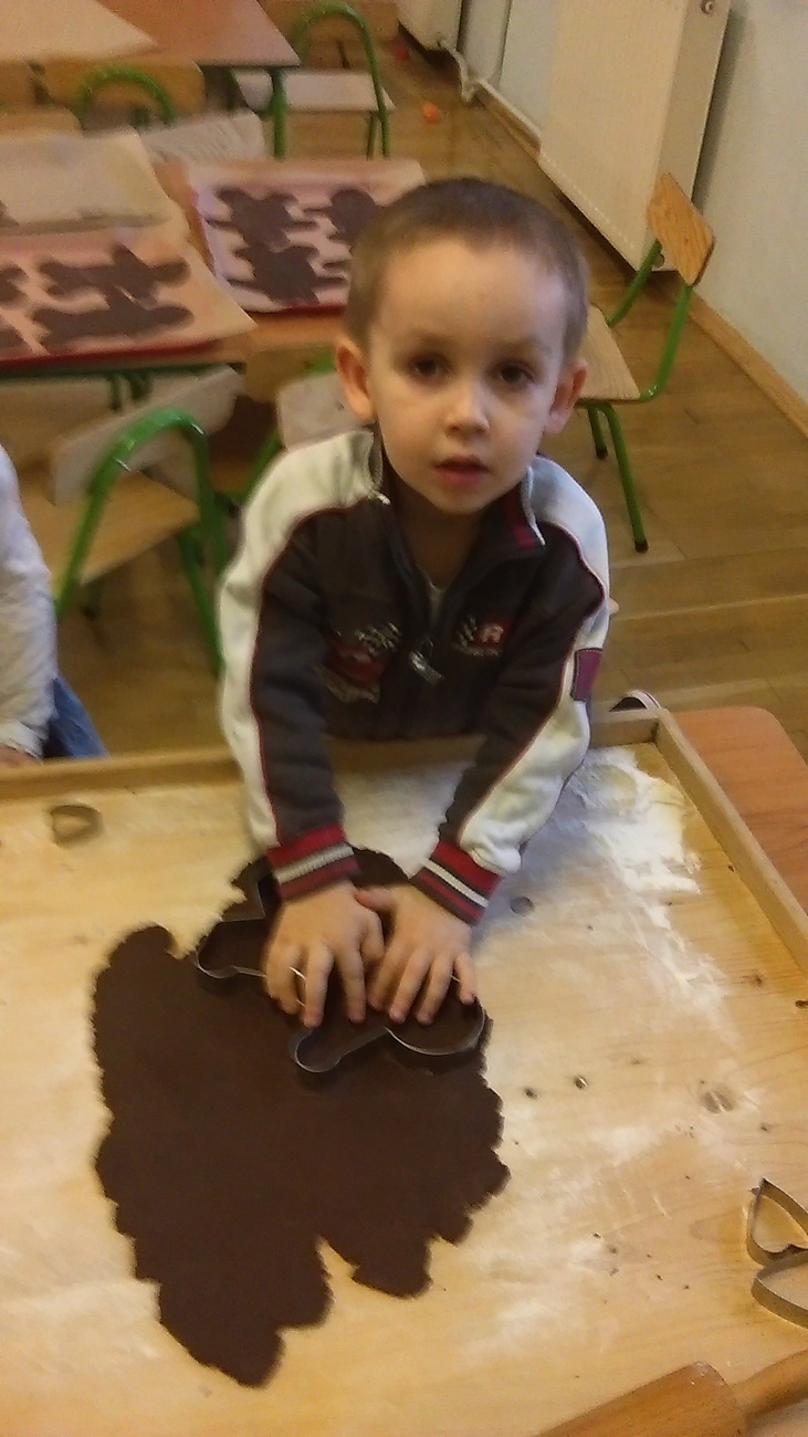 W drugiej połowie grudnia powoli do naszej sali wkradał się świąteczny nastrój. Piekliśmy aromatyczne pierniczki, sami wybieraliśmy i wykrawaliśmy wzory.