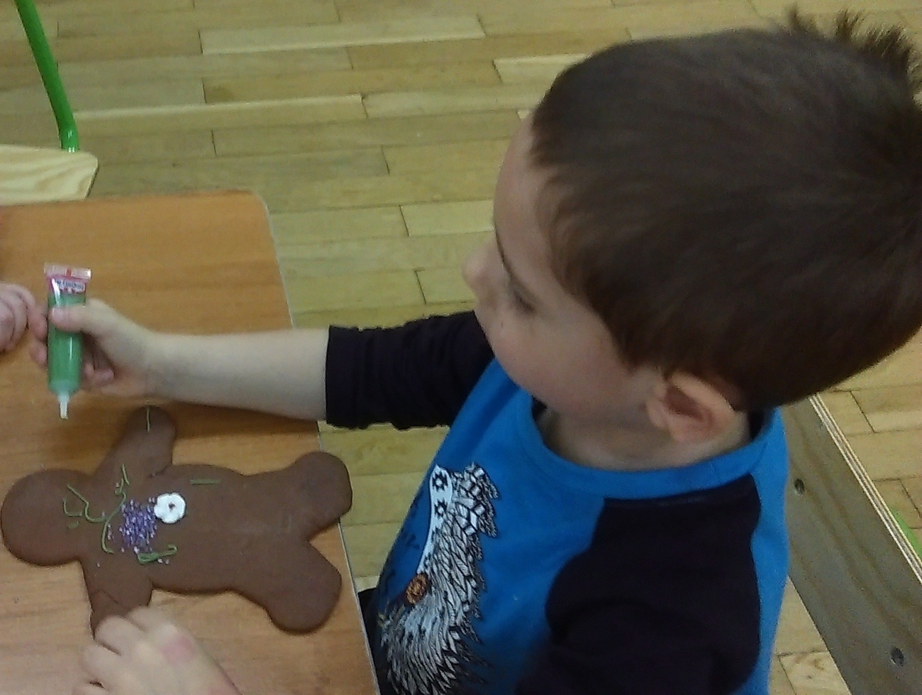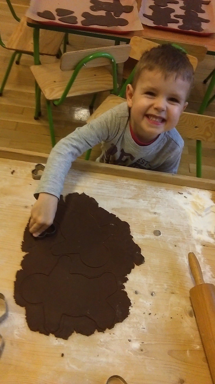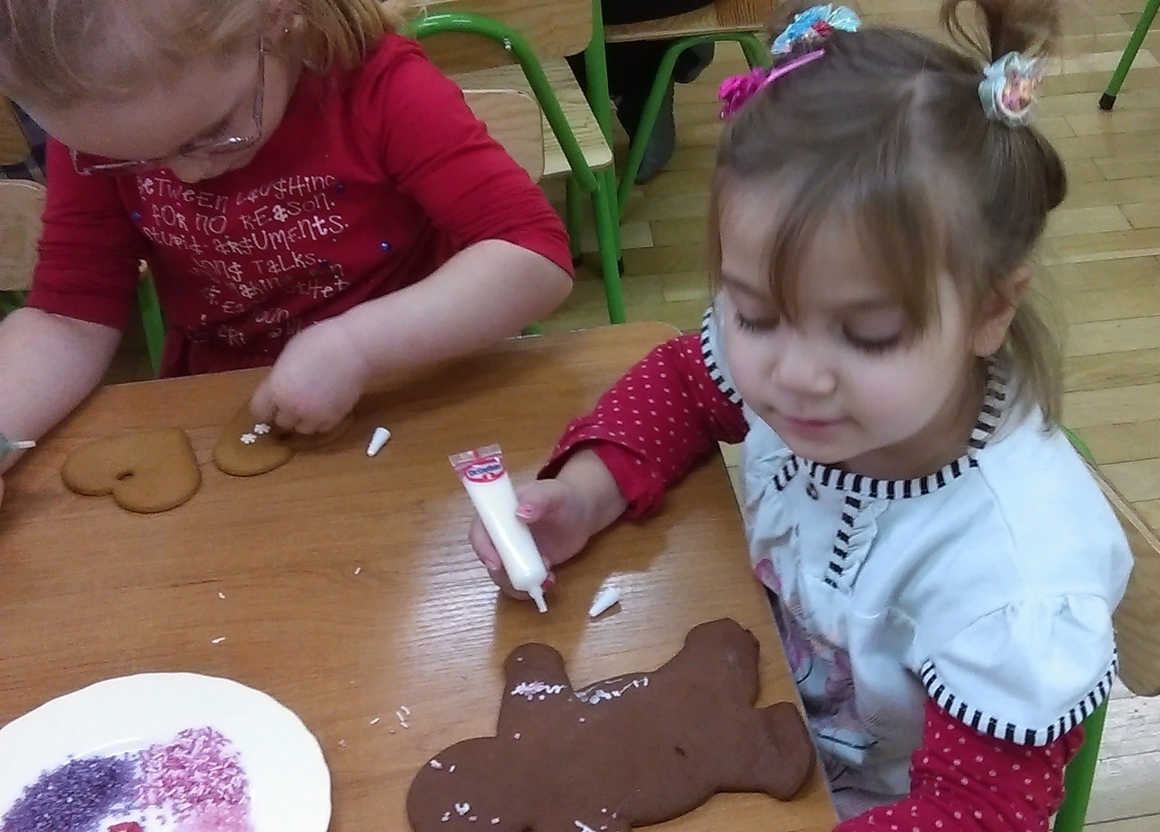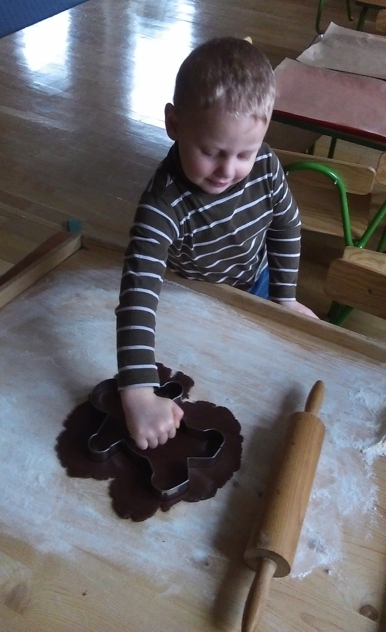 W drugiej połowie grudnia powoli do naszej sali wkradał się świąteczny nastrój. Piekliśmy aromatyczne pierniczki, sami wybieraliśmy i wykrawaliśmy wzory.