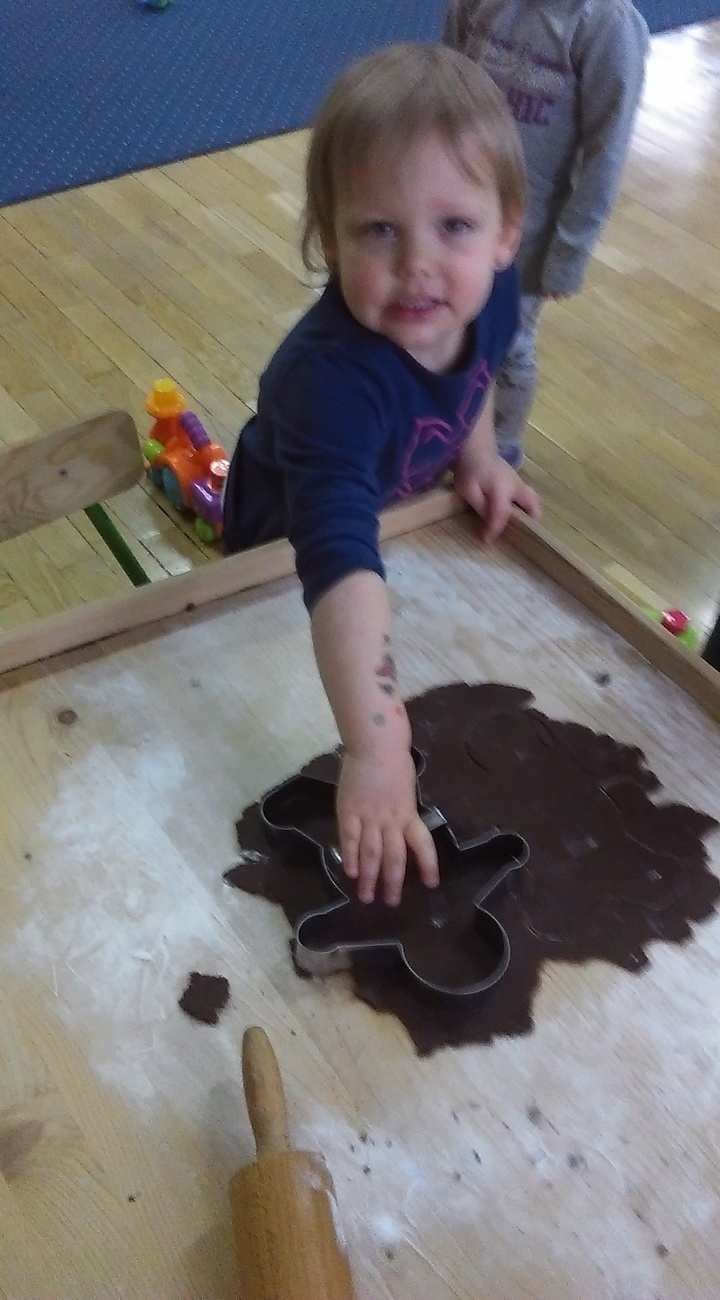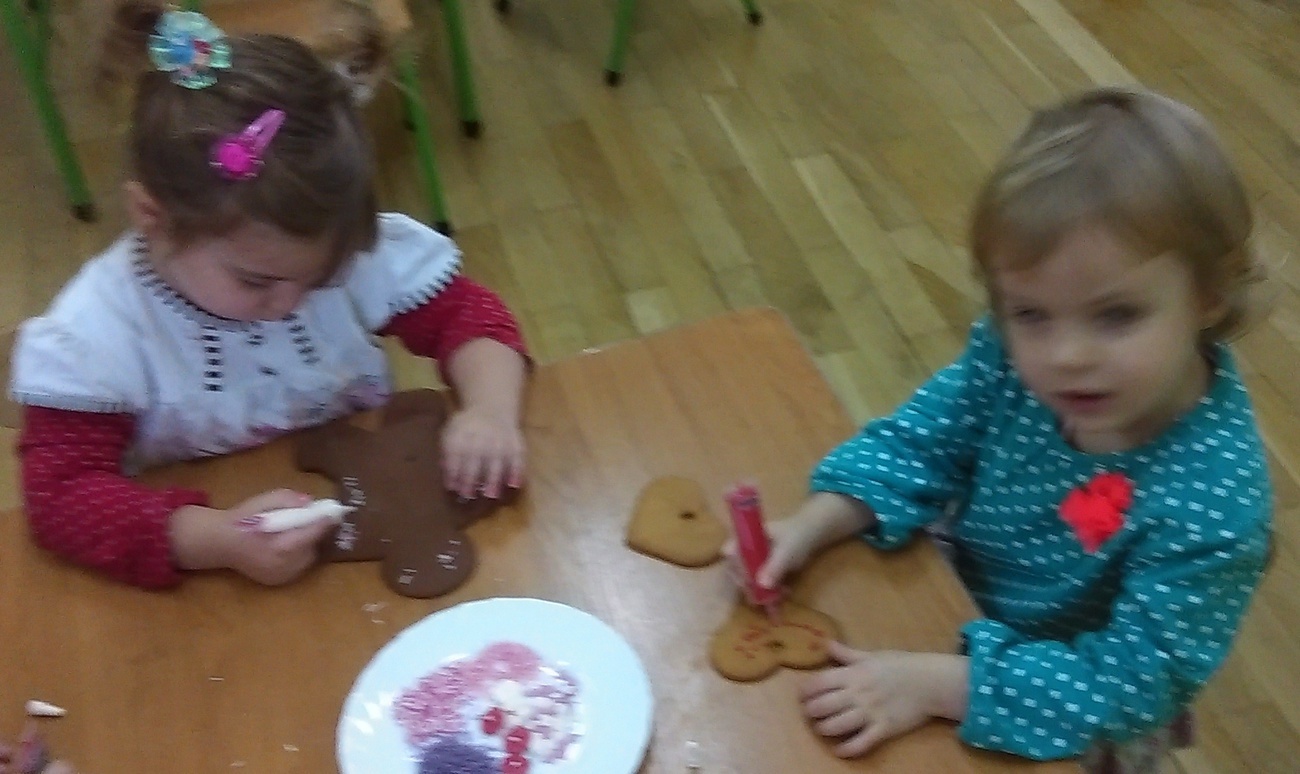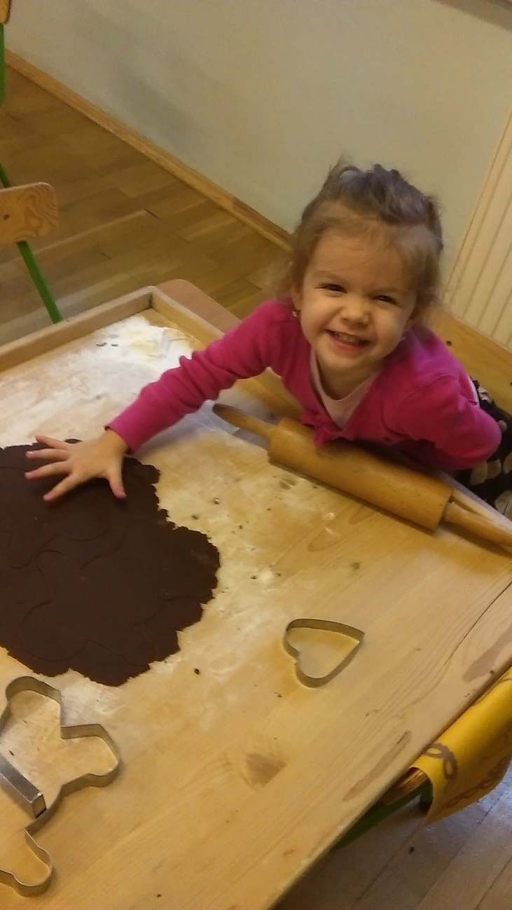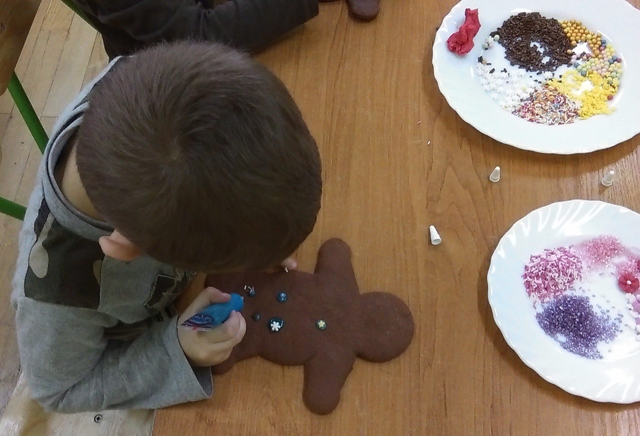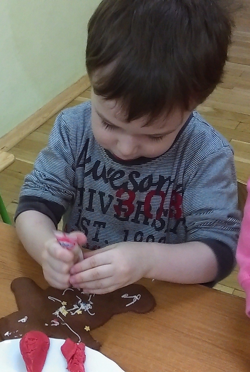 W drugiej połowie grudnia powoli do naszej sali wkradał się świąteczny nastrój. Piekliśmy aromatyczne pierniczki, sami wybieraliśmy i wykrawaliśmy wzory.