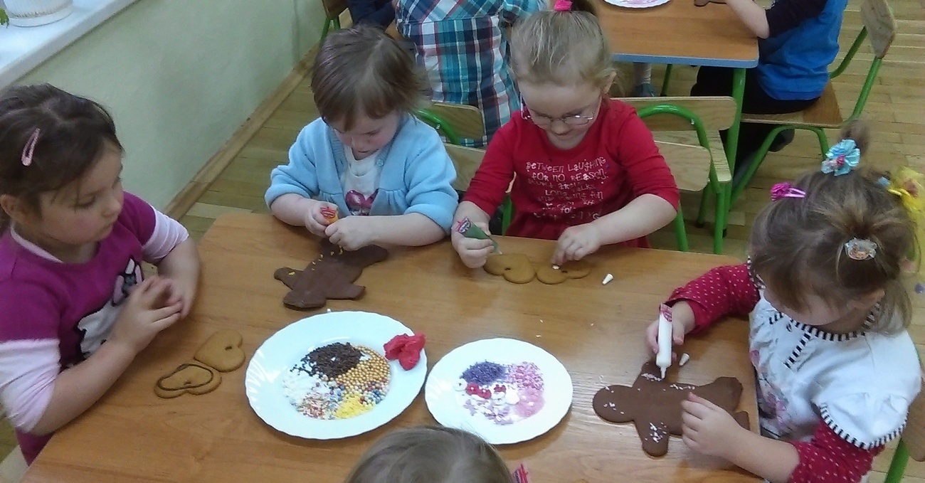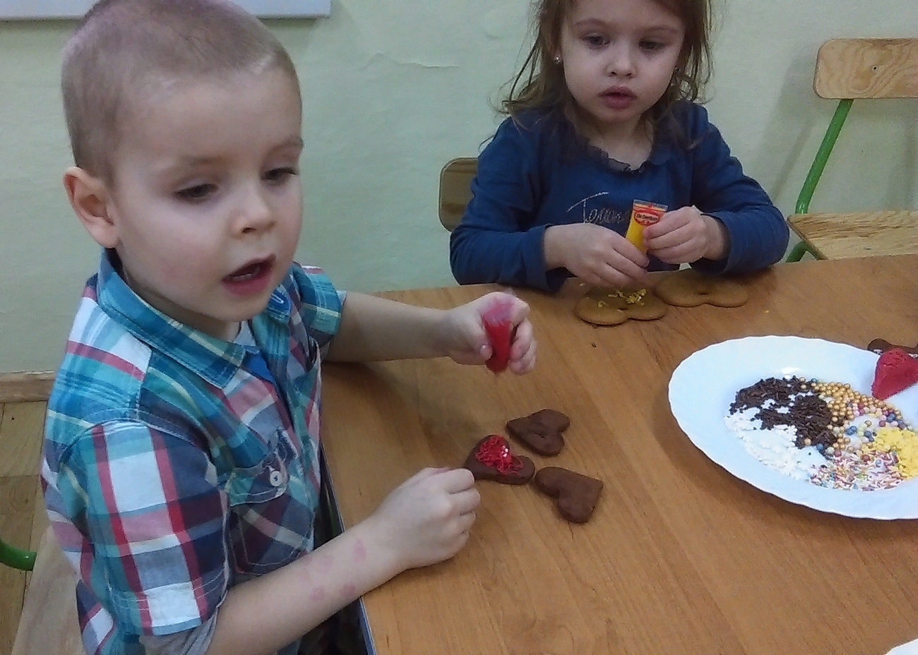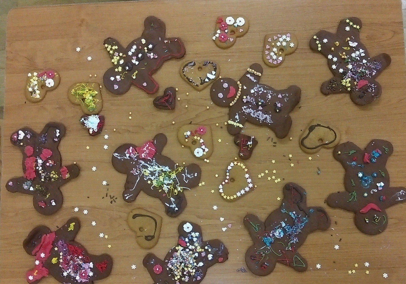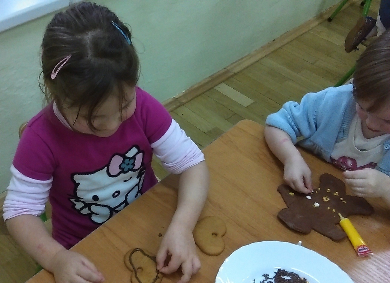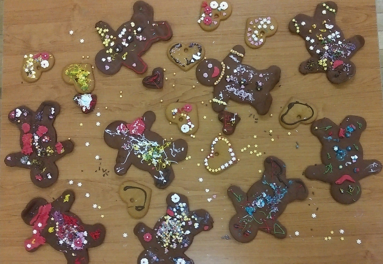 Kolejnym etapem było ozdobienie naszych pierniczków kolorowymi koralikami, gwiazdkami, śnieżynkami, kolorowym lukrem i czekoladą. Oczywiście musieliśmy sprawdzić, czy przyniesione przez nas dekoracje smakowały tak dobrze jak wyglądały.