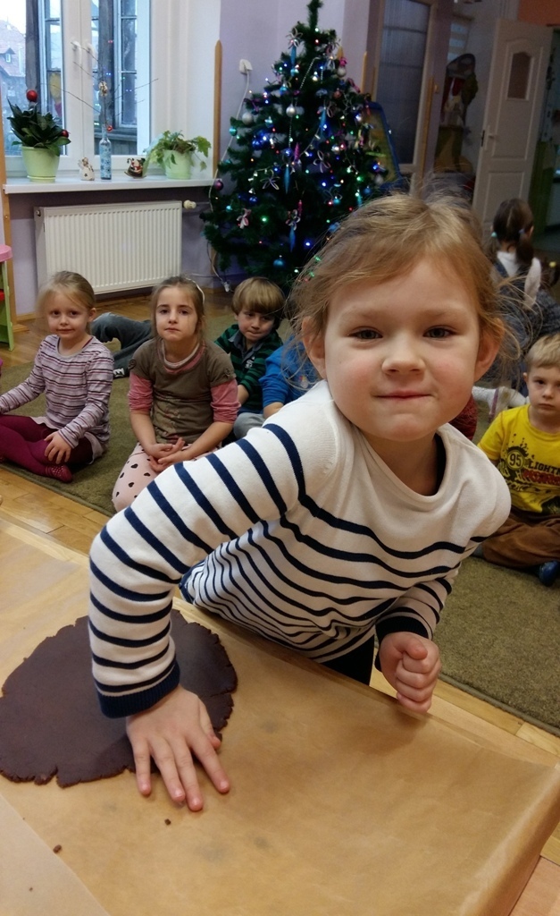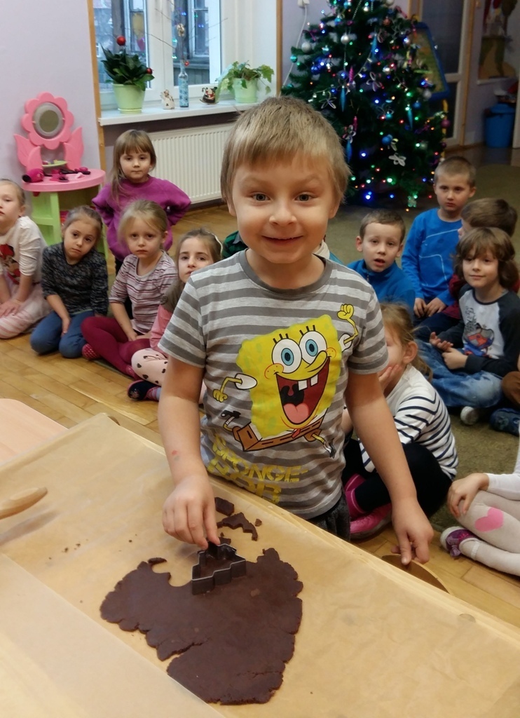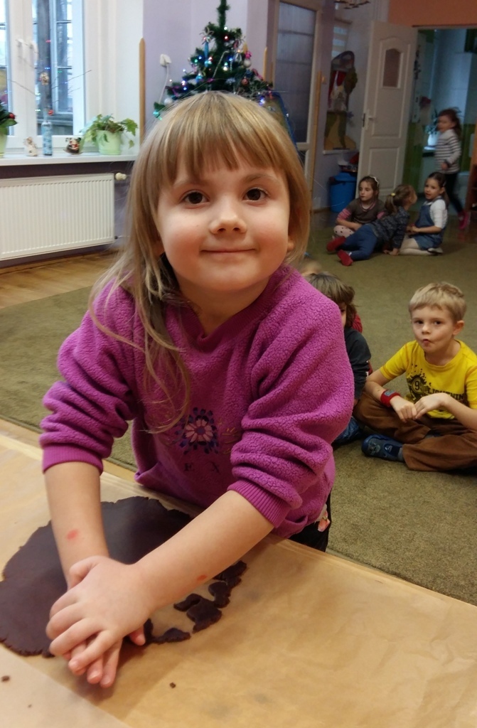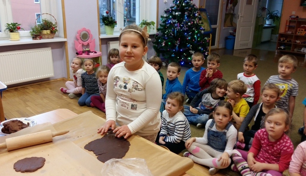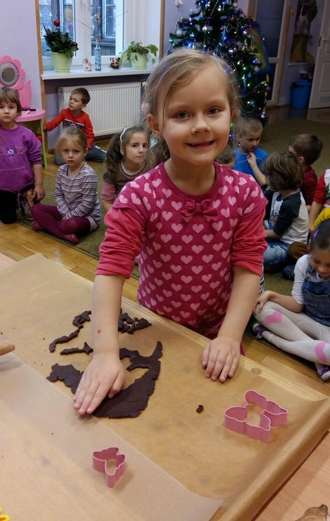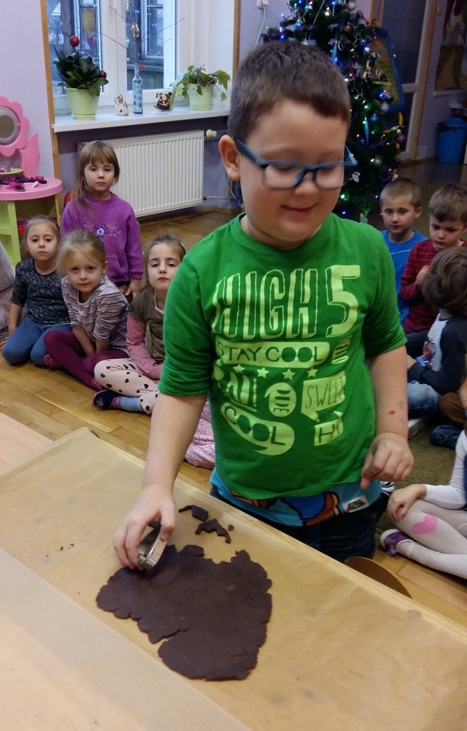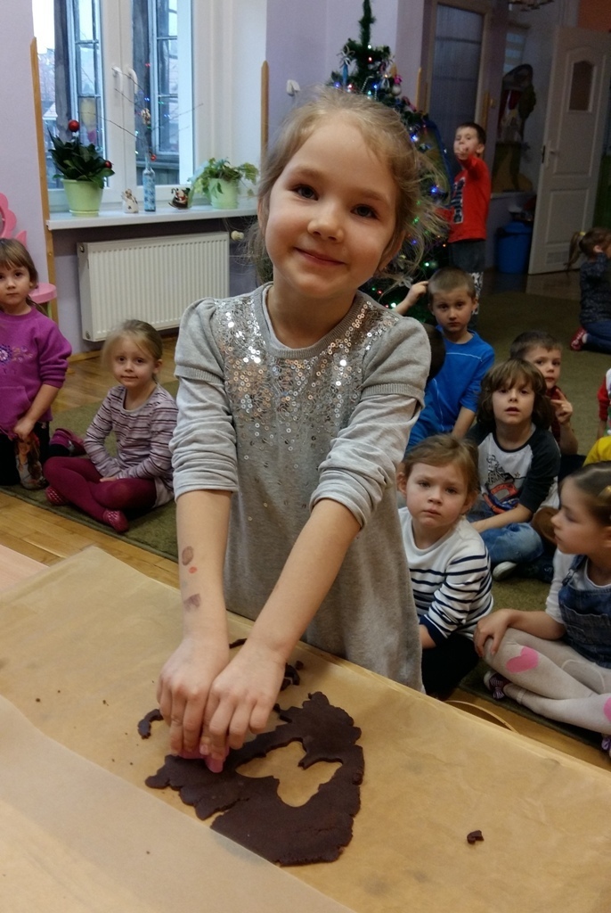 We wtorkowe przedpołudnie zapachniało słodko w całym przedszkolu. Okazało się, że to ciasto na pierniki tak pachnie.
