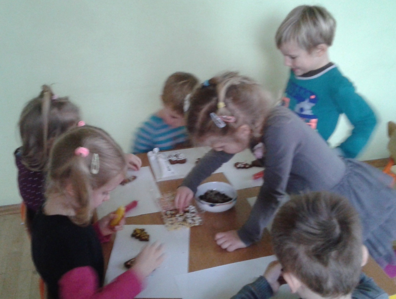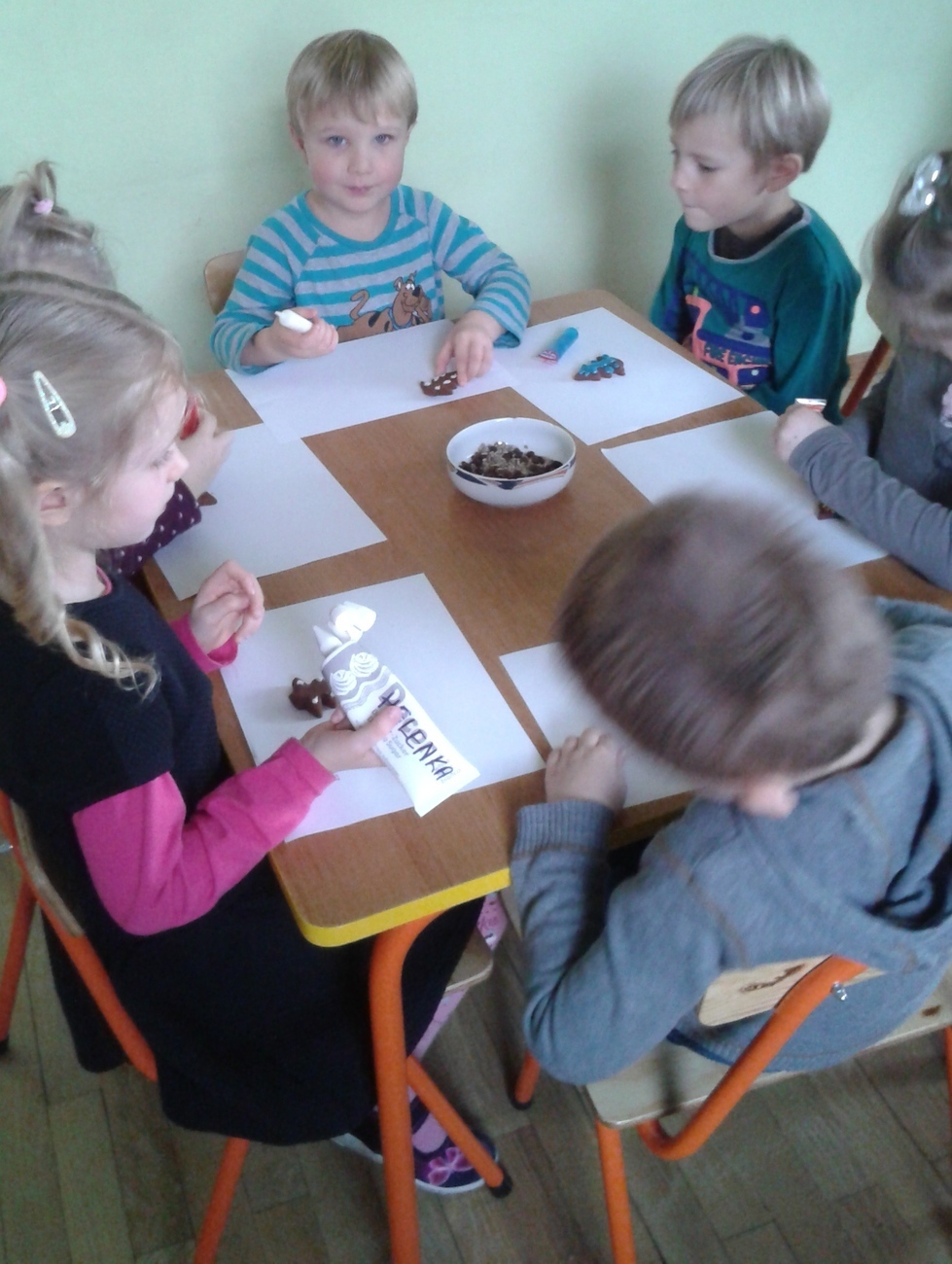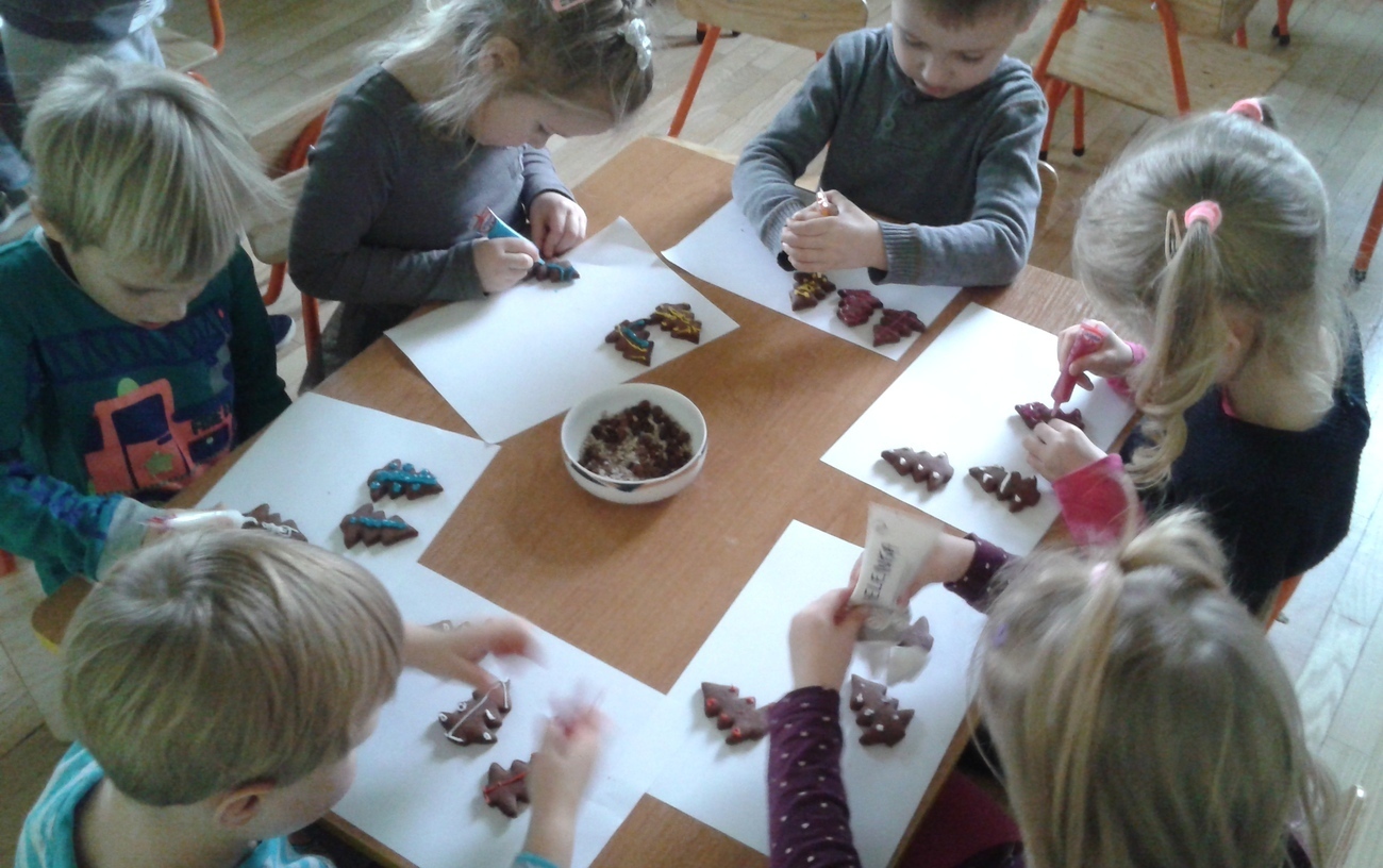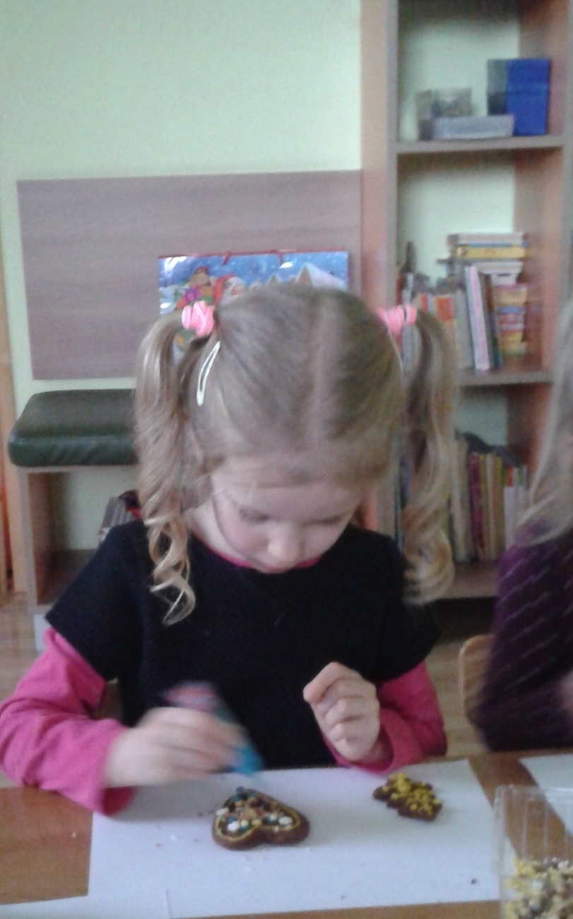 Tygryski uwielbiają słodycze a najbardziej słodkie pierniczki. Wyjątowo smakują także własnoręcznie zrobione. Rodzice Tygrysków przynieśli słodkie pisaki i posypki, aby dzieci mogły przystroić pierniczki. Najlepszym momentem dekorowania był fakt, kiedy pierniczki do malowania się skończyły, a pisaki i posypka została. Wtedy co zrobiły Tygryski ? ...... zapytały, czy mogą zjeść resztę?. Oczywiście, że mogły i to była największa frajda.
