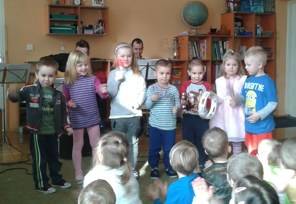 Dziś w naszym przedszkolu gościli muzycy z Filharmonii Dolnośląskiej, którzy przenieśli nas do słonecznej Hiszpanii. A pomagały im w tym instrumenty: obój, gitara, akordeon. Podczas wspólnej zabawy towarzyszył nam sympatyczny byczek Fernando. Razem z nim mieliśmy okazję poznać tańce, muzykę, które królują w Hiszpanii. Z takim towarzyszem czas tak szybko nam upłynął i koncert dobiegł końca, z wypiekami na twarzach wróciliśmy do naszych sal.