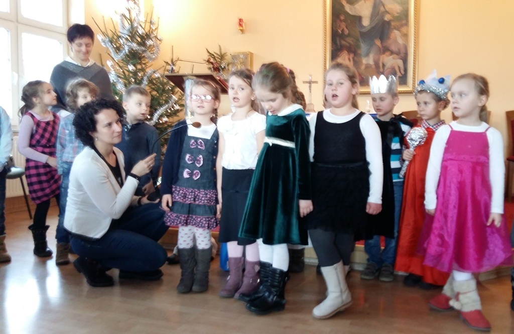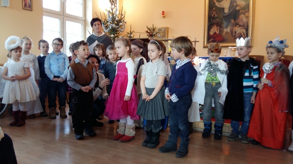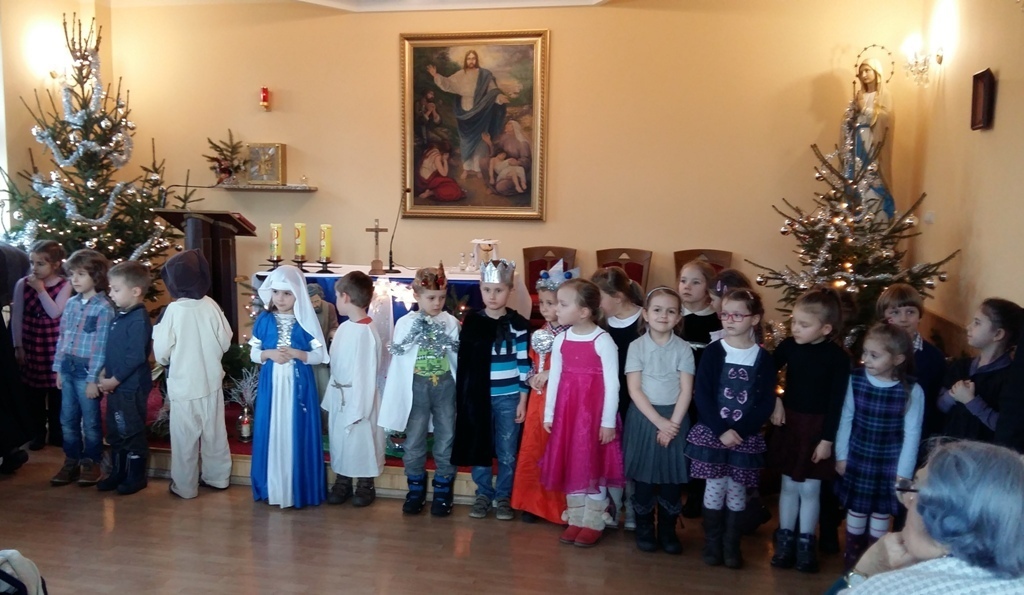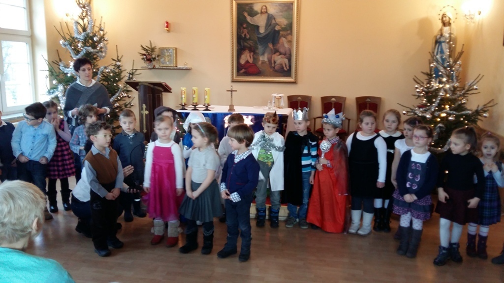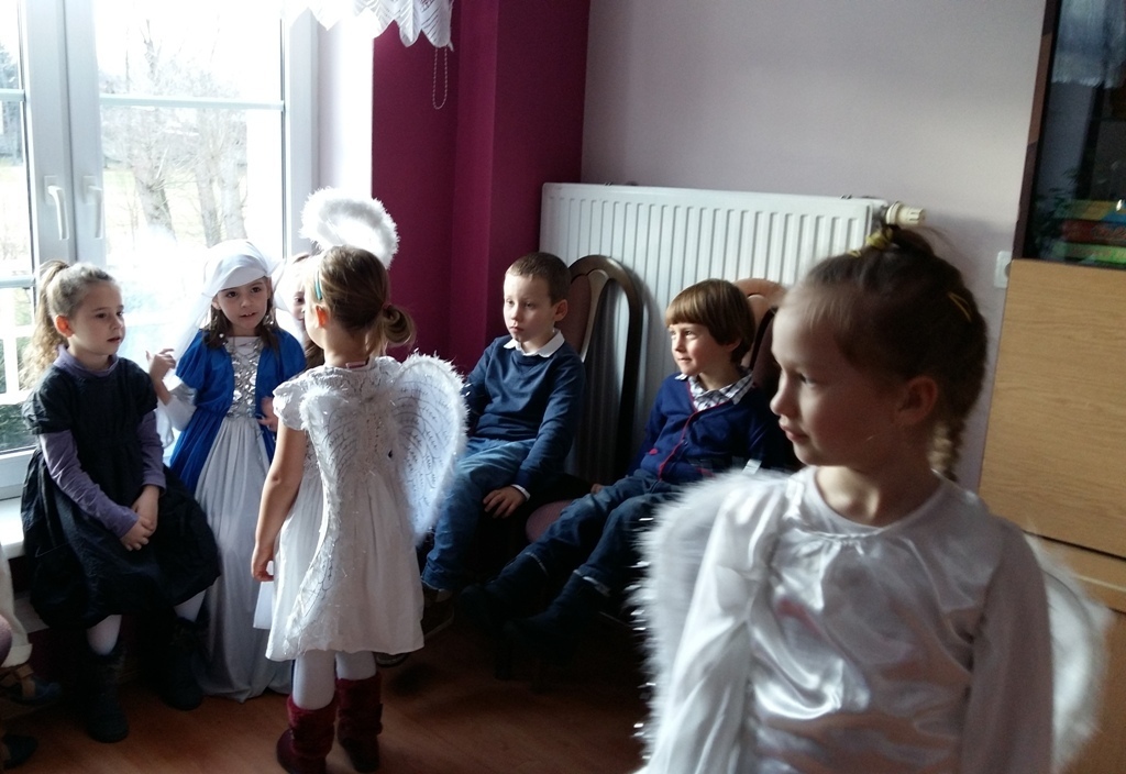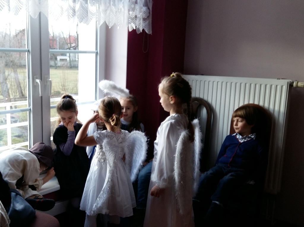 Dziś postanowiliśmy zrobić niespodziankę osobom chorym mieszkającym w Zakładzie Opiekuńczo-Leczniczym przy ul. Żeromskiego. Zabraliśmy stroje jasełkowe i poszliśmy zaprezentować nasze bardzo długo przygotowywane przedstawienie. Pięknie przebrani z uroczystą miną i lekko zdenerwowani stanęliśmy przed licznie zgromadzoną publicznością.Gdy zaczęliśmy śpiewać kolędy i recytować role, niektórym słuchaczom zakręciła się łezka w oku. Po zakończeniu występu otrzymaliśmy gromkie brawa.