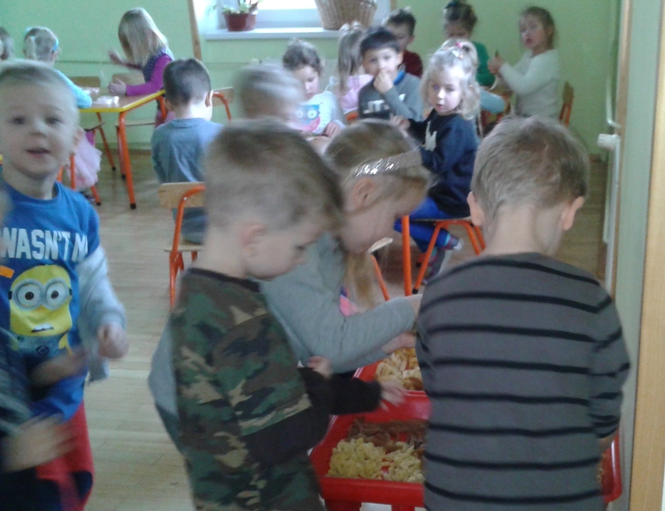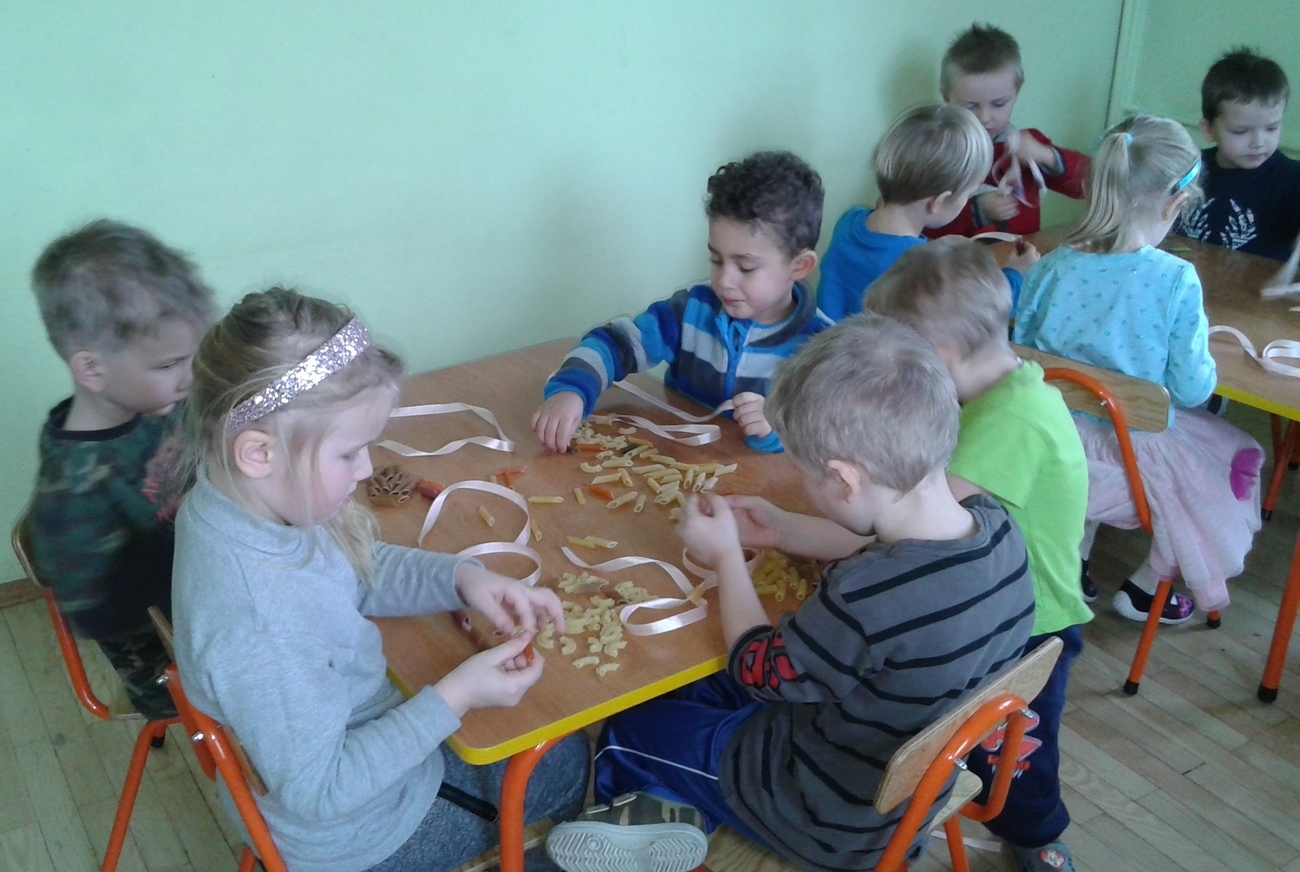 Tygryski na samym początku stycznia dowiedziały się, że w tym miesiącu jest bardzo ważne święto - Dzień Babci i Dziadka. Organizując dla dziadków specjalne przedstawienie postanowiliśmy zrobić dla nich również małe niespodzianki. A wszystkie przedmioty miały być wykonane z makaronu. Przedszkolaki postanowiły stworzyć makaronowy naszyjnik dla babci, a dla dziadka obrazek również z makaronu. Praca była bardzo trudna i wymagała od dzieci dużo cierpliwoś. Ale Tygryski zawsze dają radę i wykonały wspaniałą robotę.