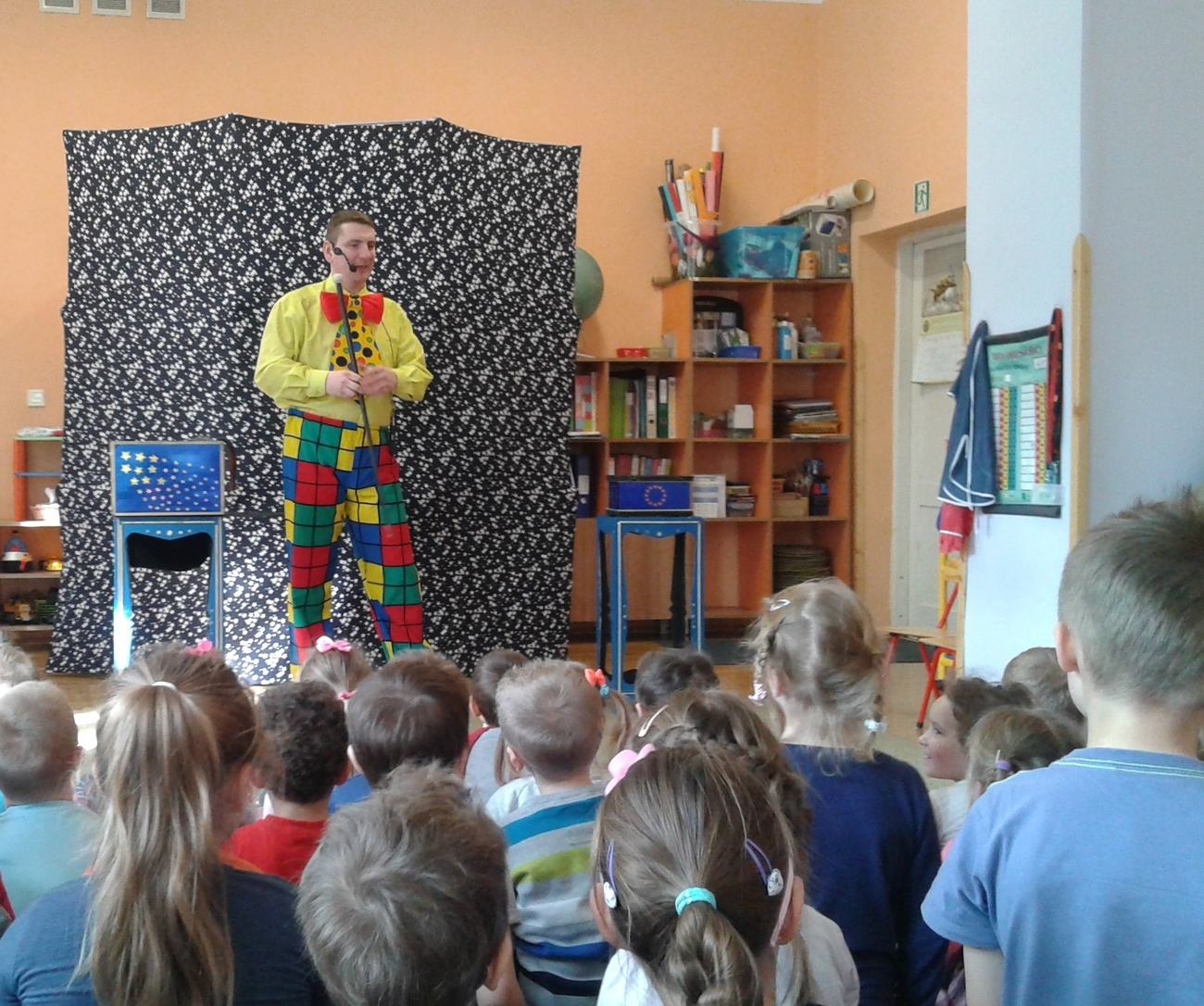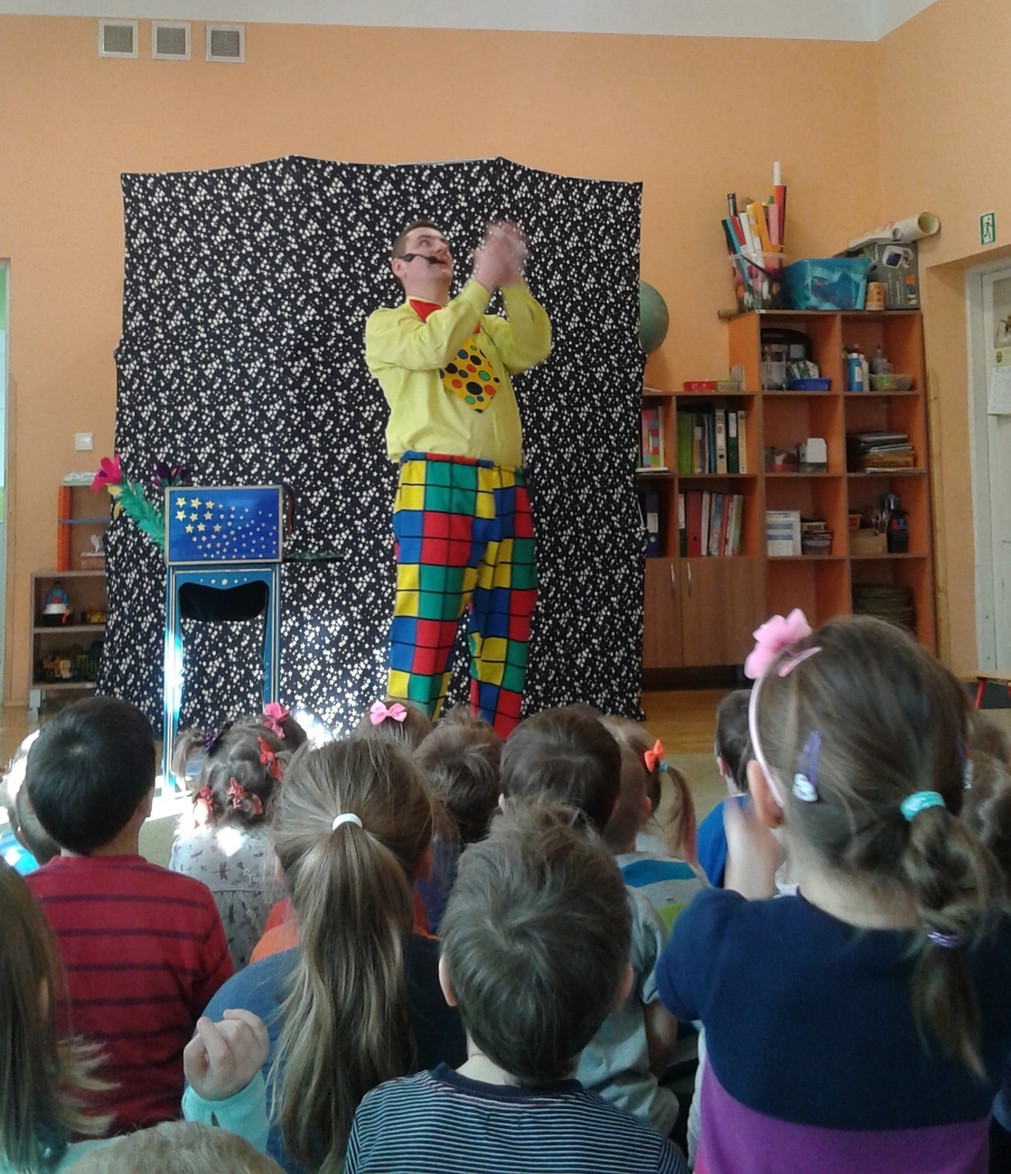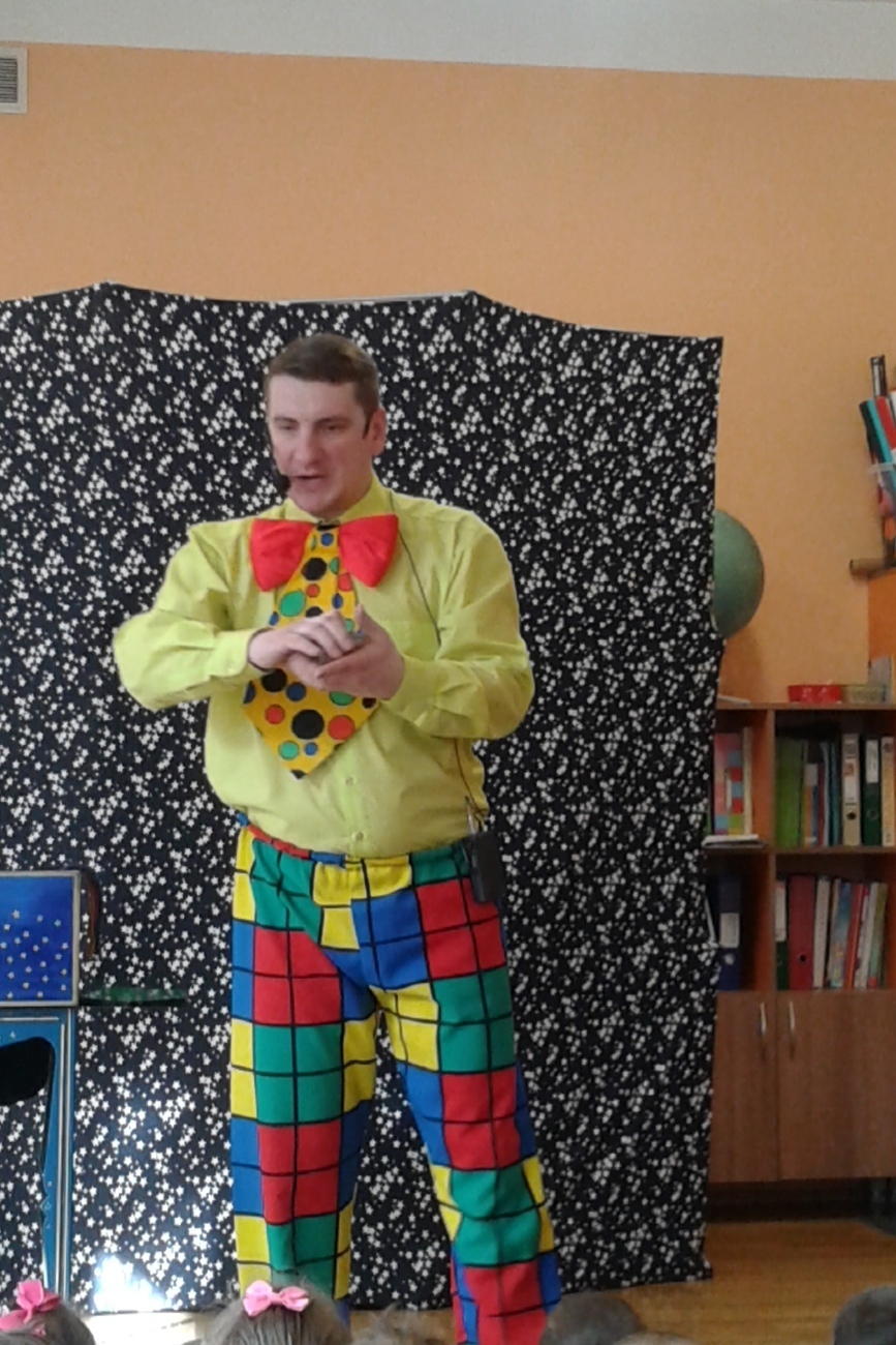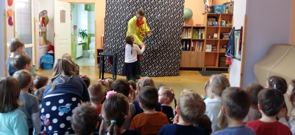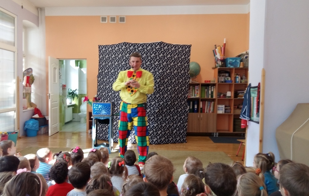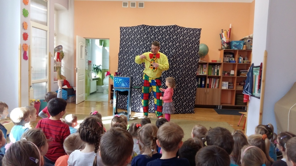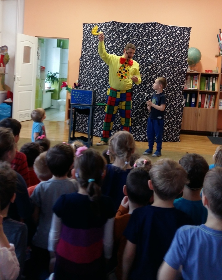 Dziś odwiedził nas nietypowy gość. Okazało się, że jest magikiem. Najpierw naszym oczom ukazał się gołąb Tomek, potem wyczarował nam kwiaty i kolorowe chustki.
