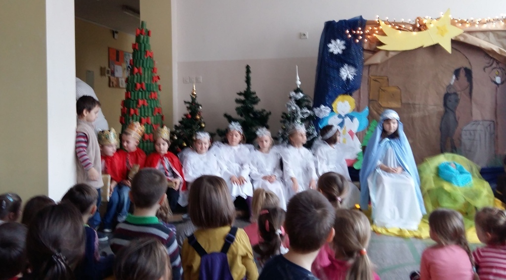 Uczniowie Szkoły Podstawowej nr 10 zaprosili nas na jasełka, które przygotowali. Widać było ich ciężka pracę, ponieważ wszyscy pięknie recytowali swoje role i mieli przepięknie wykonane stroje. Na zakończenia jedna z pierwszoklasistek zagrała dla nas kolędę na skrzypcach. Wszyscy uważnie słuchaliśmy przedstawienia i muzyki bo sami dobrze wiemy jakie to stresujące występować przed publicznością.