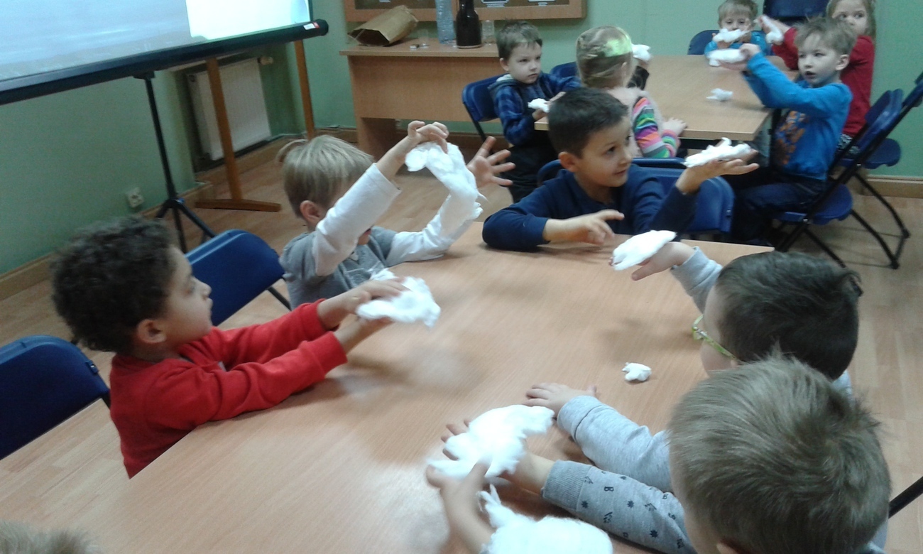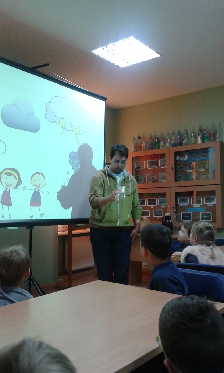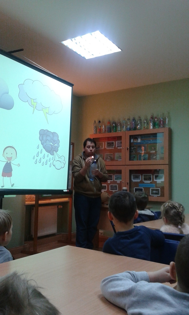 Byliśmy bardzo ciekawi co dzisiaj nas czeka. Najpierw przyglądaliśmy się jak pan Wiktor tworzy chmurę, a co najważniejsze taki eksperyment można zrobić też z rodzicami.