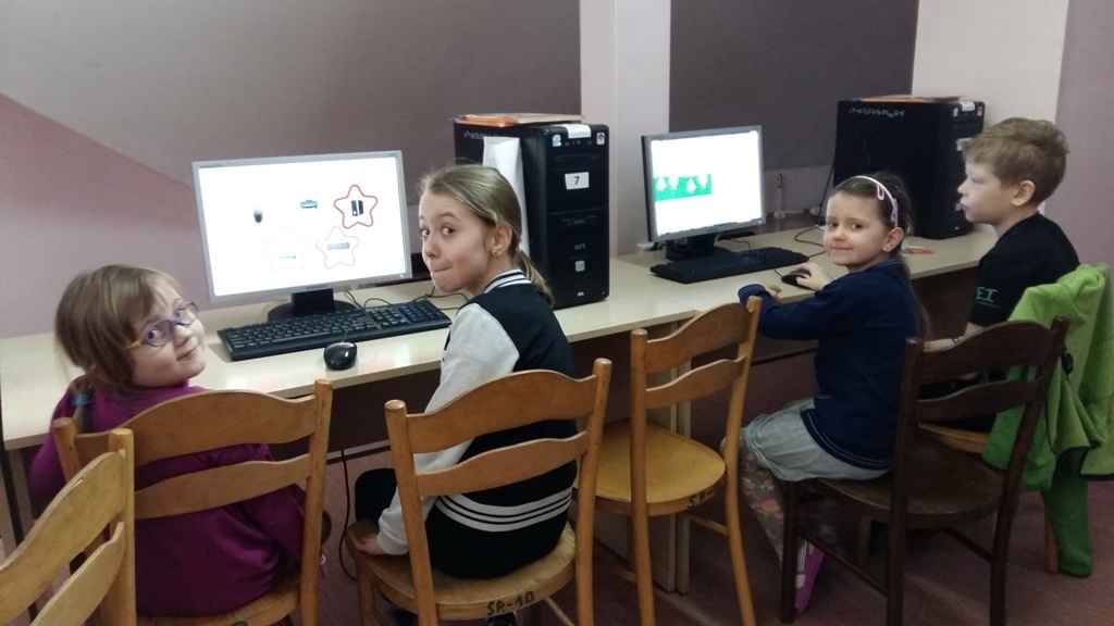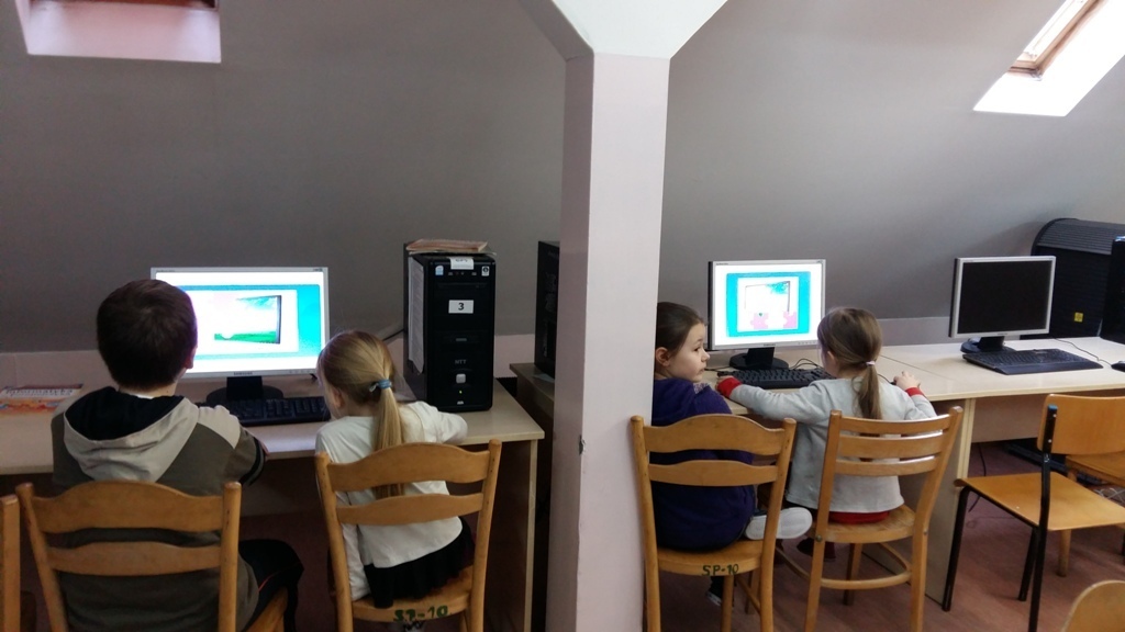 Dzieci z grupy starszaków odwiedziły dziś Szkołę Podstawową nr 10. Celem naszej wizyty było nie tylko zwiedzanie szkoły, ale przekonanie się jak wygląda prawdziwa szkoła. Wzięliśmy udział w lekcji w-f oraz zajęć z informatyki. Jedne i drugie zajęcia bardzo nam się podobały i zrozumieliśmy, że szkoła nie jest taka straszna jak mówią niektórzy, a wręcz przeciwnie – niektórzy już nie mogą się doczekać kiedy staną się uczniami.