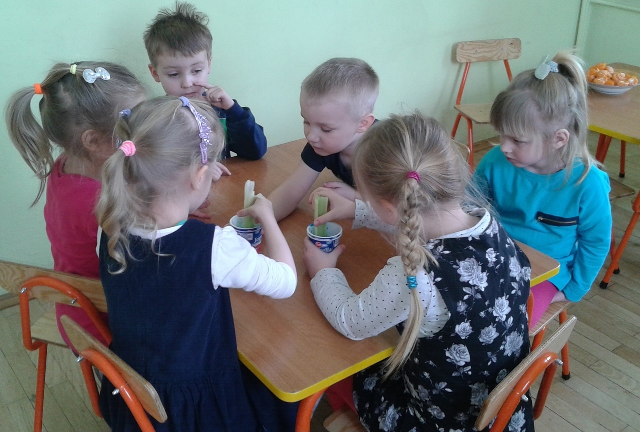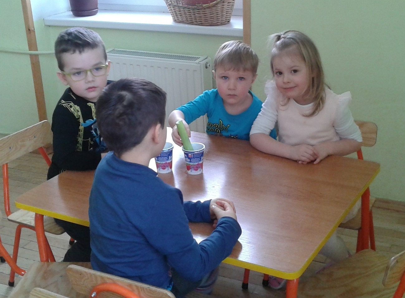 Tygryski wszystko widziały - zabarwiły wodę, potem włożyły kawałki selera i musiały czekać .....
