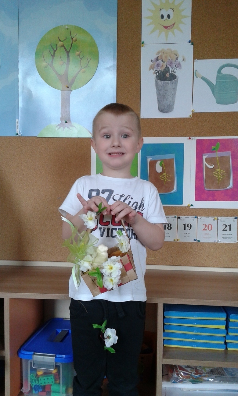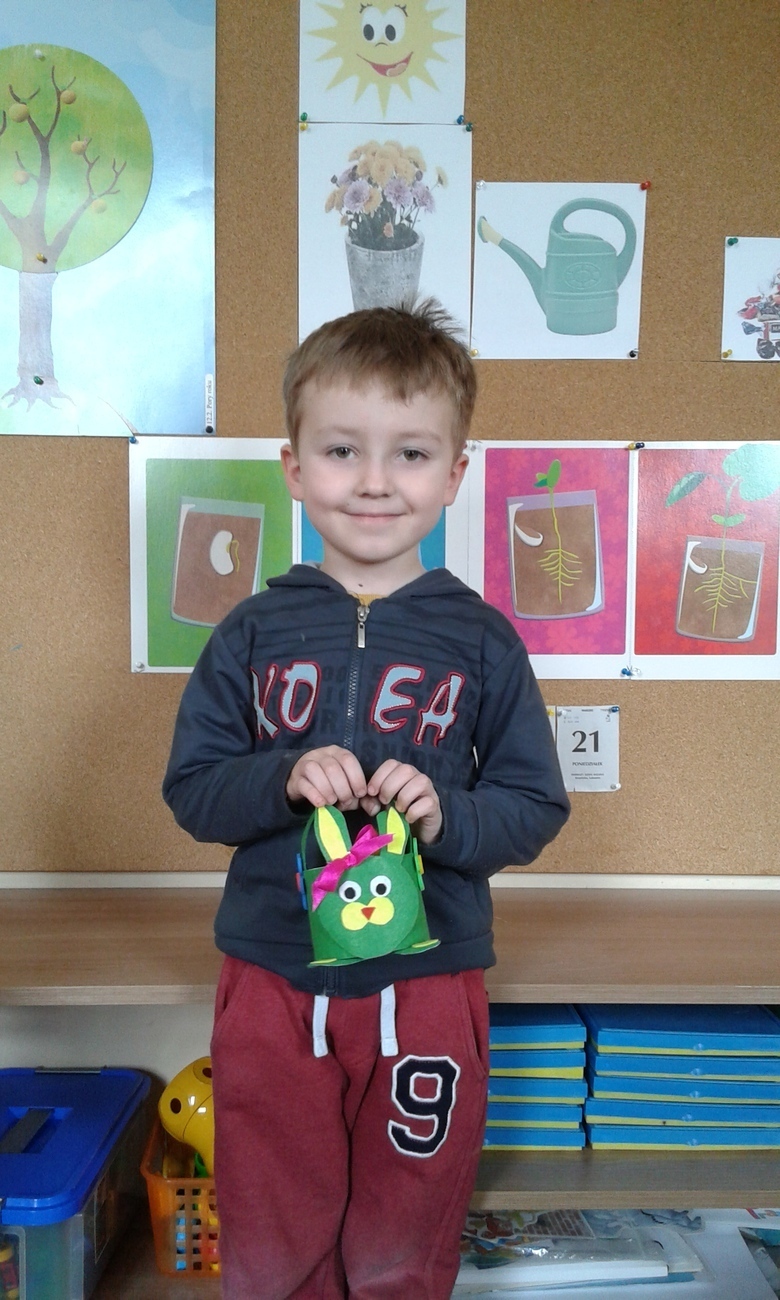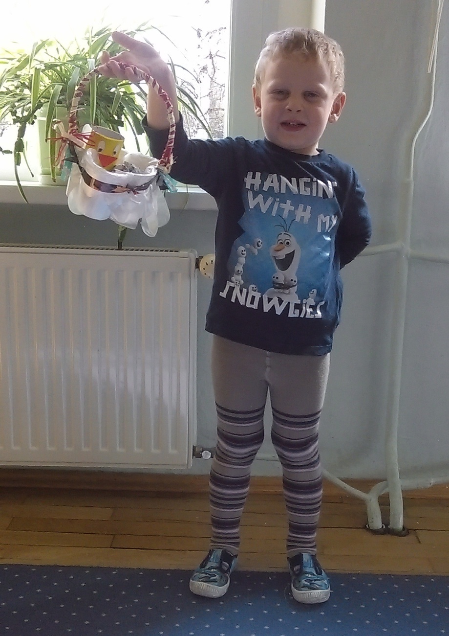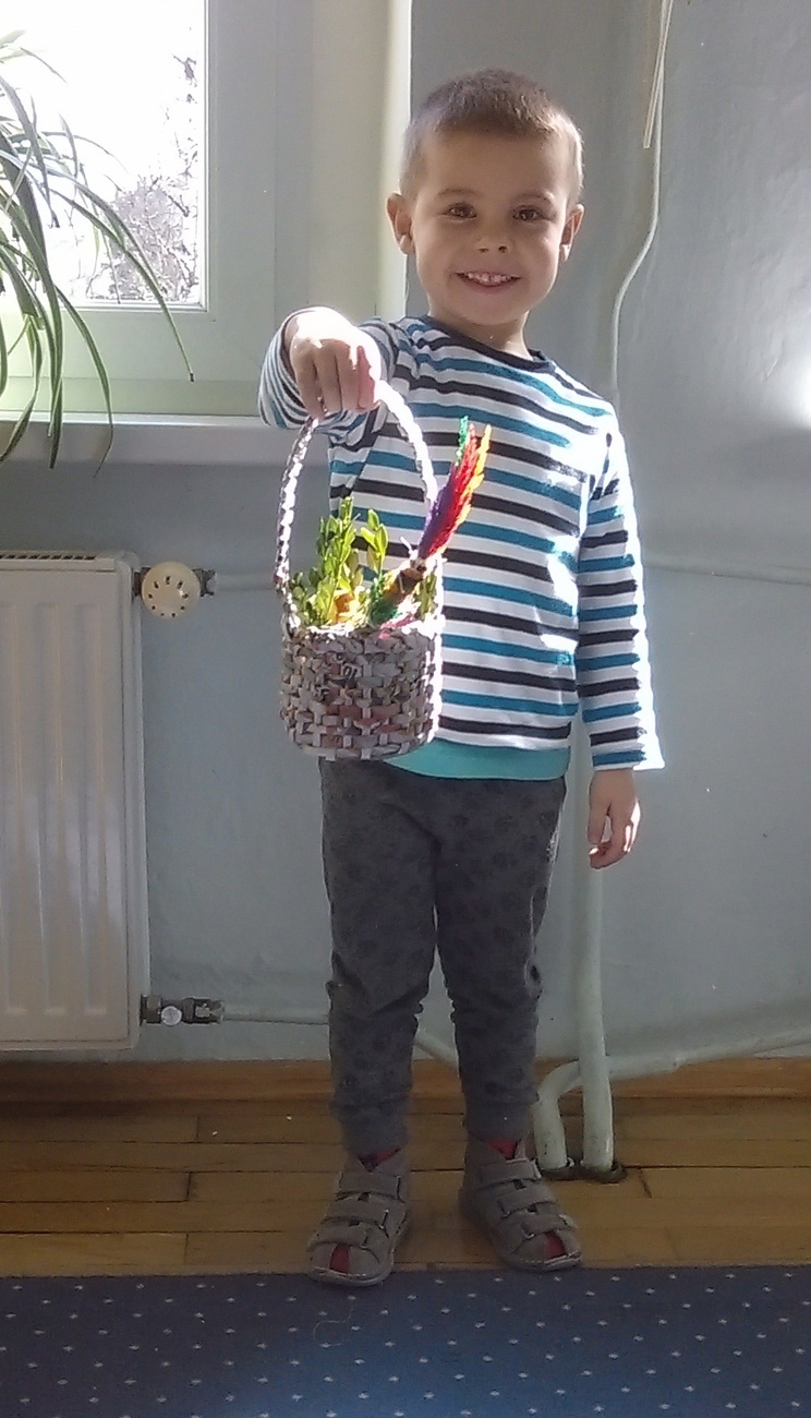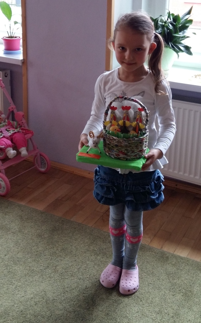 Dnia 22.03.2016r. zakończył się kolejny przedszkolny już V, Konkurs Wielkanocny pt. „Recyklingowy koszyczek wielkanocny". Dzieci w raz z rodzicami tak jak co roku prześcigają się w wymyślaniu najwspanialszych ozdób świątecznych. Ten rok obfitował w przeróżne pomysły powtórnego wykorzystania przedmiotów, które mogliśmy znaleźć w domu. Tak więc mogliśmy zobaczyć koszyczki wykonane z kolorowych gazet, plastikowych kubeczków oraz butelek po wodzie mineralnej. Niekonwencjonalnymi pomysłami było również wykonanie koszyczka z abażuru po starej lampie, tudzież styropianu potrzebnego do bezpiecznego transportu komputera. Dzieci wykazały się ogromną wyobraźnią tworząc pisanki, które wyczarowywane były z różnych produktów m.in. jajek niespodzianek oraz wielkanocnego baranka i zająca z rolek po papierze toaletowym. Wszystkie Tuptusie długo opowiadały historie powstawania wszystkich koszyczków i daję słowo każdy był oszałamiająco piękny. Wszyscy z niecierpliwością nie możemy się już doczekać następnego konkursu.
