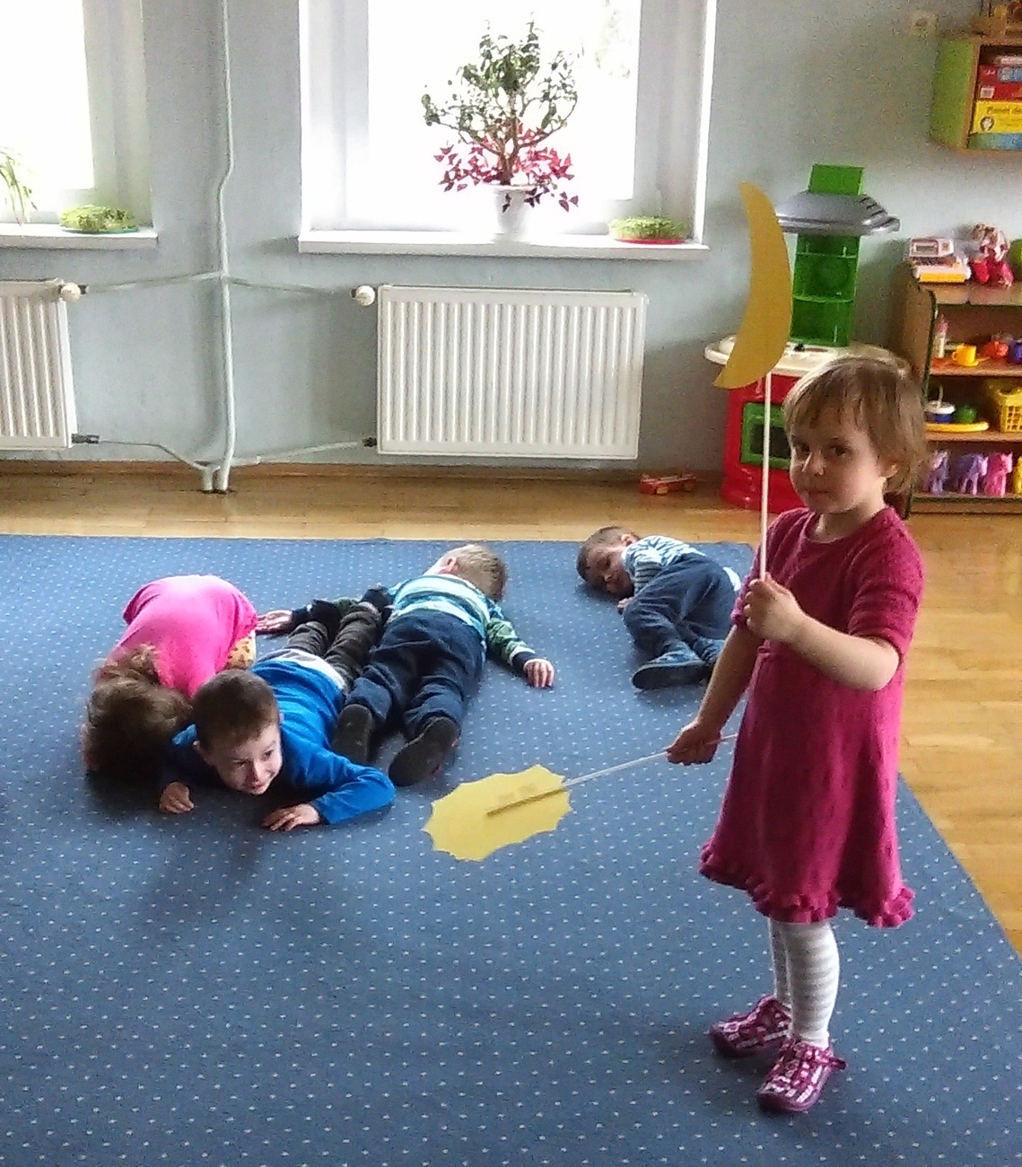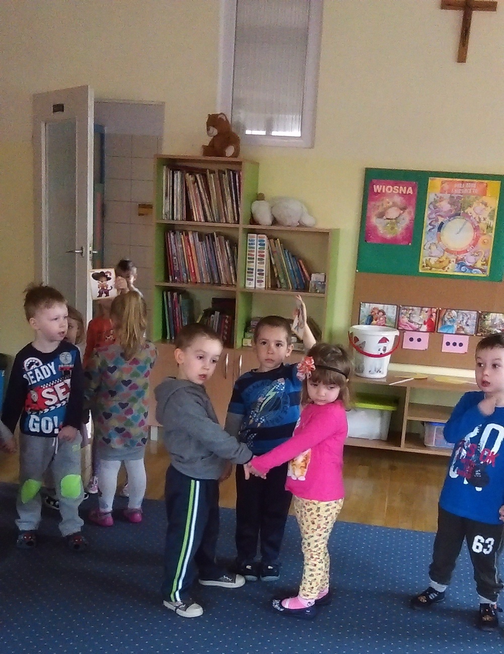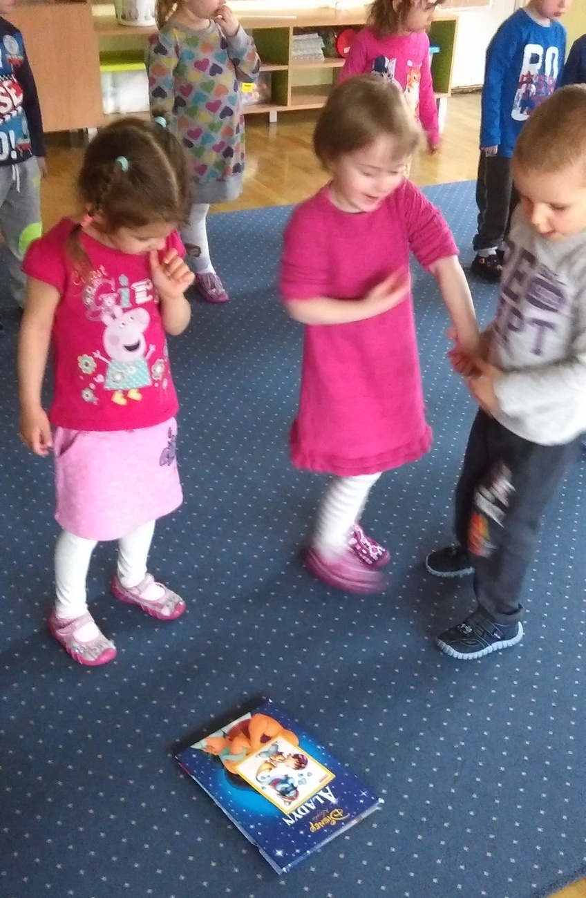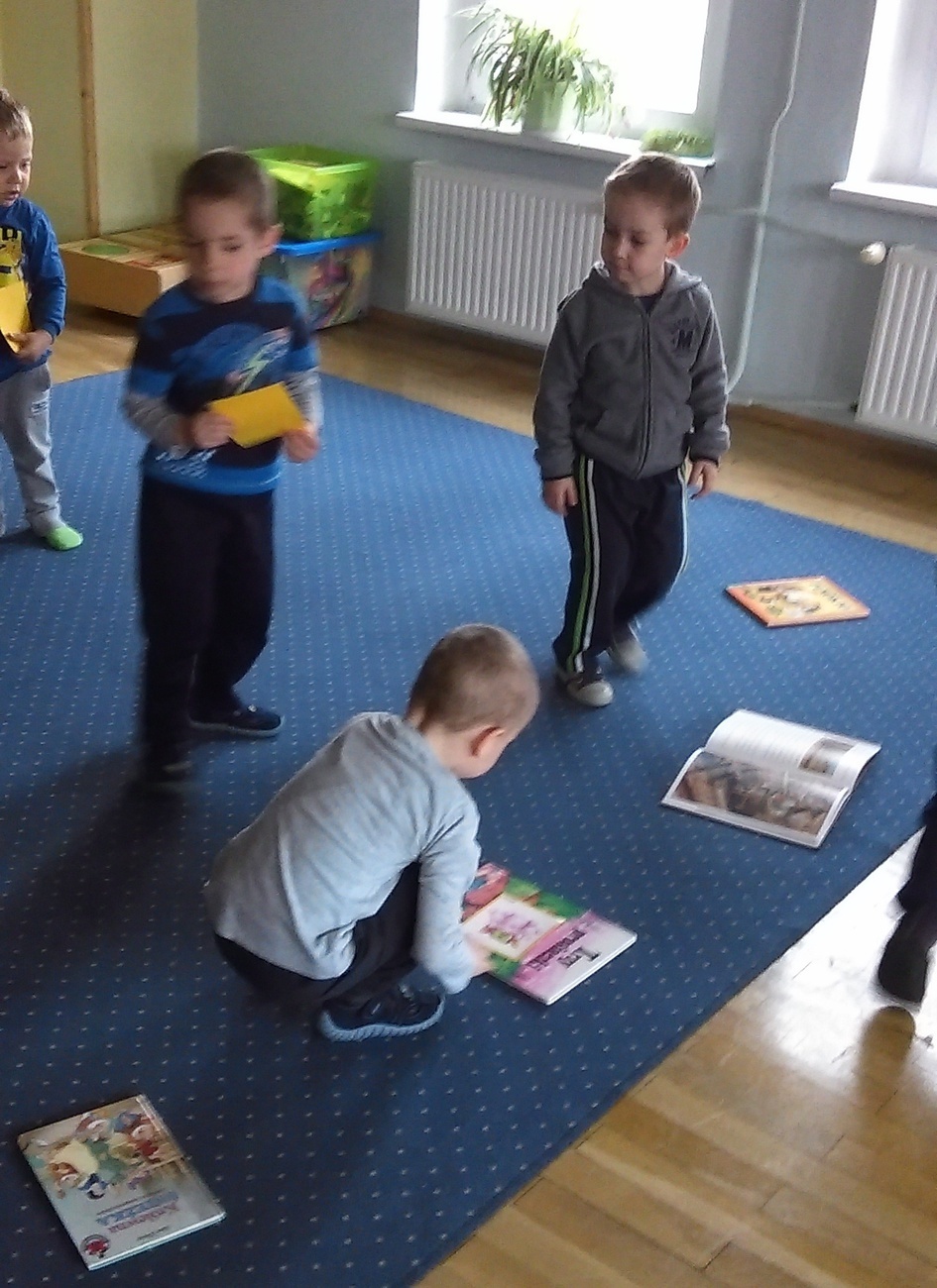 W poniedziałek, kiedy przyszliśmy do naszej sali, czekała już na nas książeczka. Była bardzo smutna. Jak się okazało, dlatego, że była cała poniszczona. Wysłuchaliśmy i postanowiliśmy spełnić prośby książeczki. Następnego dnia wybraliśmy się do księgarni. Zobaczyliśmy tam jak posegregowane i poukładane są książki na półkach. Po powrocie do przedszkola posprzątaliśmy w naszym kąciku z książkami. Kolejnego dnia spełniliśmy prośbę książeczki o nie zaginanie kartek. Wykonywaliśmy za kładki do książek. Jednak najbrudniejsze zadanie czekało na nas ostatniego dnia. Musieliśmy pomóc wrócić bohaterom do ich bajek i takim sposobem szukaliśmy lasu, w którym jest ścieżka, którą szedł: Czerwony Kapturek, szukaliśmy bajki kota w butach a nawet warsztatu Geppetta, aby Pinokio mógł wrócić do swojego domu. Na szczęście udało nam się wrócić do swojego domu. Na szczęście udało się nam odnaleźć wszystkie bajki dla naszych bohaterów.