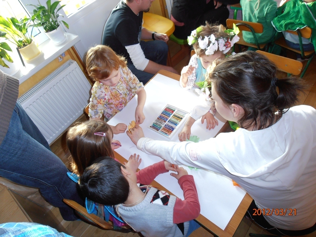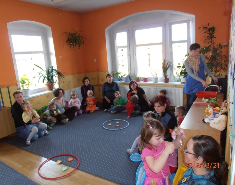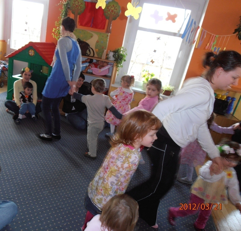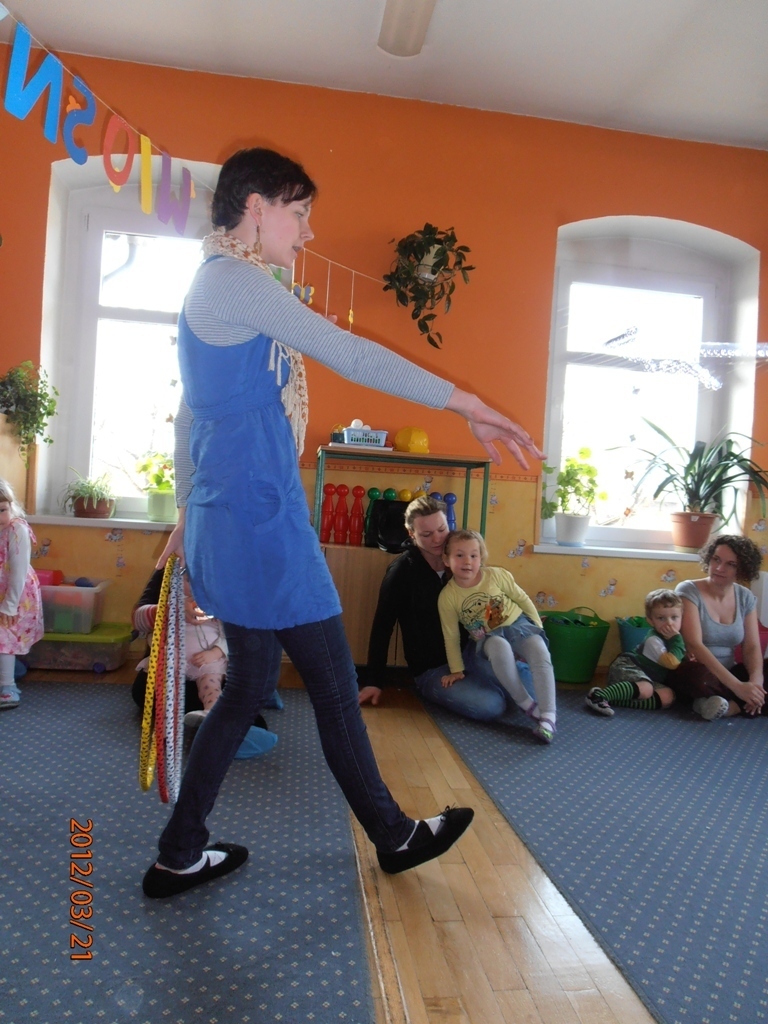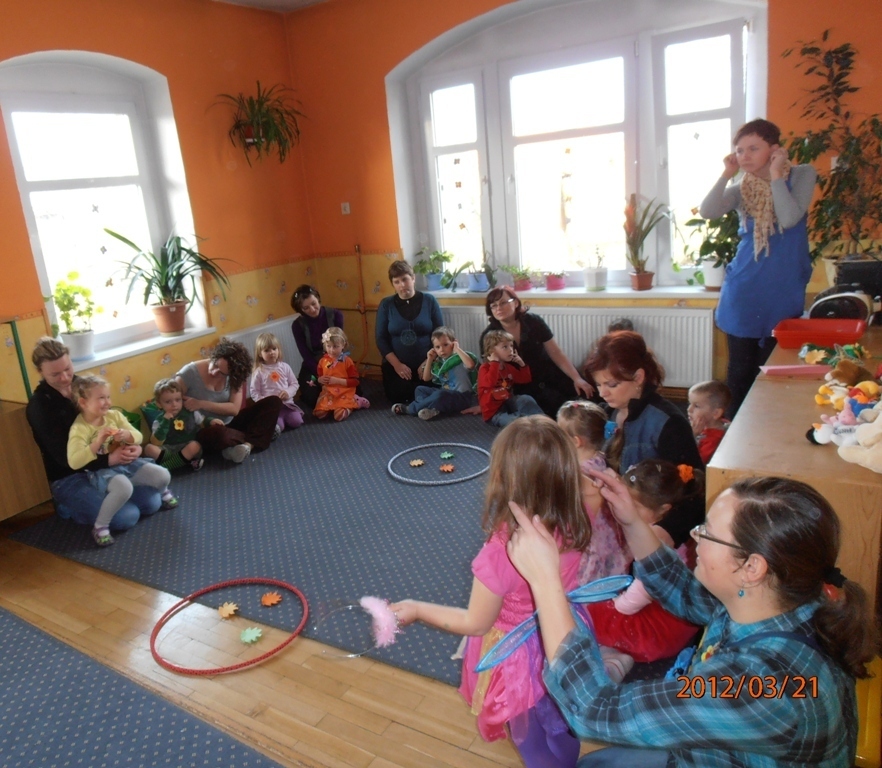 W naszej sali zebrały sie dzieci z rodzicami. Wspólnie pokonywaliśmy zadania postawione przed nami. Dużą dawkę humoru dostarczyły nam zagadki słuchowe pani Wiosny (komar zaskoczył wszystkich). Wiele zaangażowania wymagało od nas ostatnie zadanie: przygotowanie w grupach flag wiosennych, jednak wszyscy poradzili sobie z pracą. Tym wiosennym akcentem zakończyliśmy bal. Teraz z niecierpliwością oczekujemy lata.