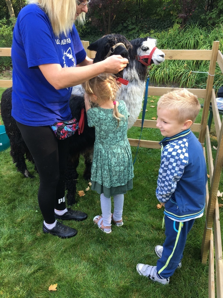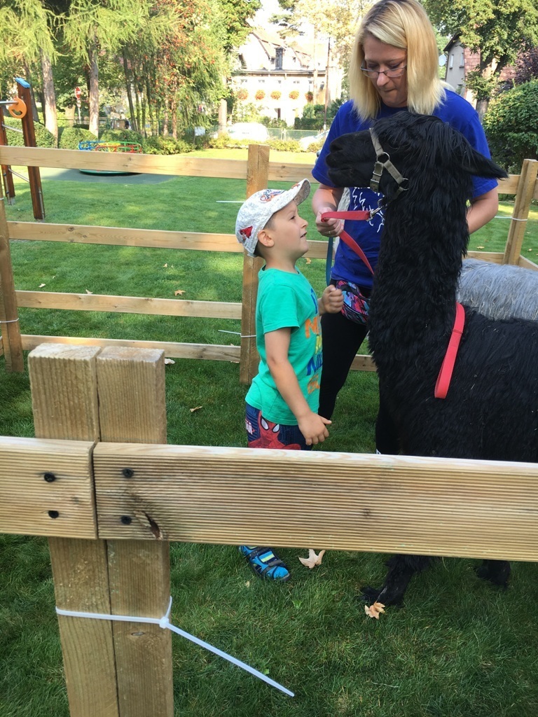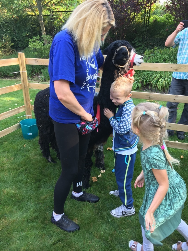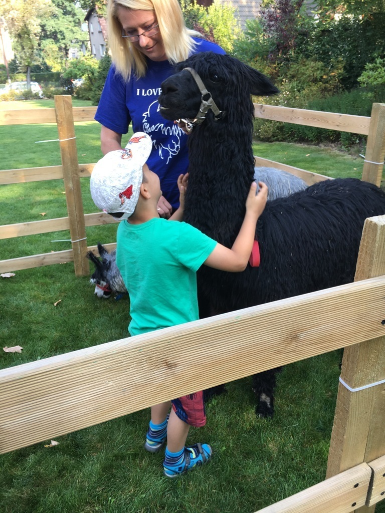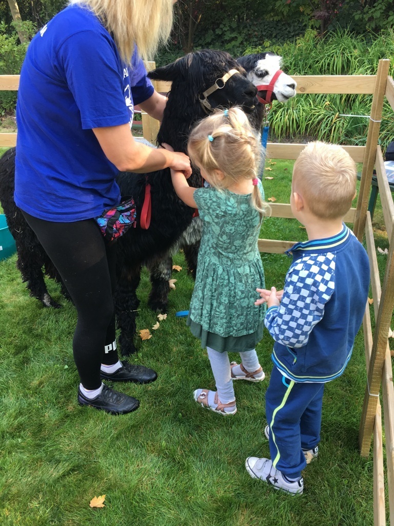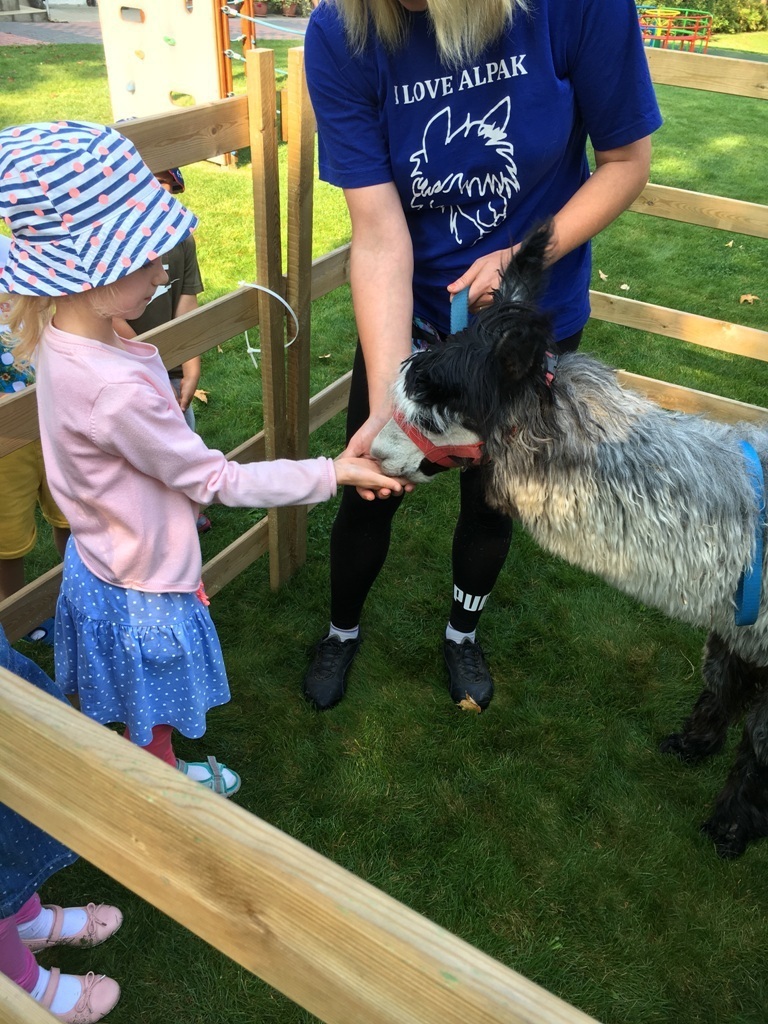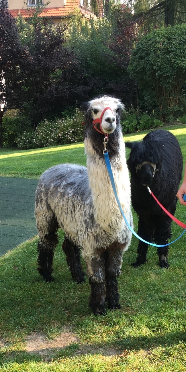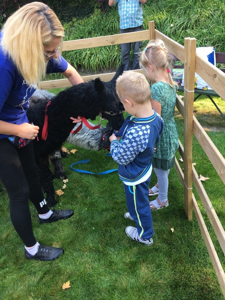 W dniu dzisiejszym nasze przedszkole odwiedziły żywe alpaki. Przed spotkaniem ich opiekunka opowiedziała nam w jaki sposób bezpiecznie powinniśmy się zachować w kontakcie z tymi zwierzętami. Szafirek i Klakson zrobiły na dzieciach ogromne wrażenie. Każdy przedszkolaka miał możliwość krótkiej zabawy i nakarmienia zwierząt. Okazało się , ze alpaki są ogromnymi fanami marchewek i trawy. Ze smakiem zajadały przygotowane przekąski z rak dzieci, a nawet "czapek". Była to dla nas wspaniała zabawa.