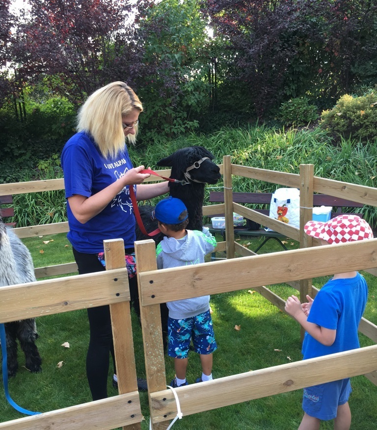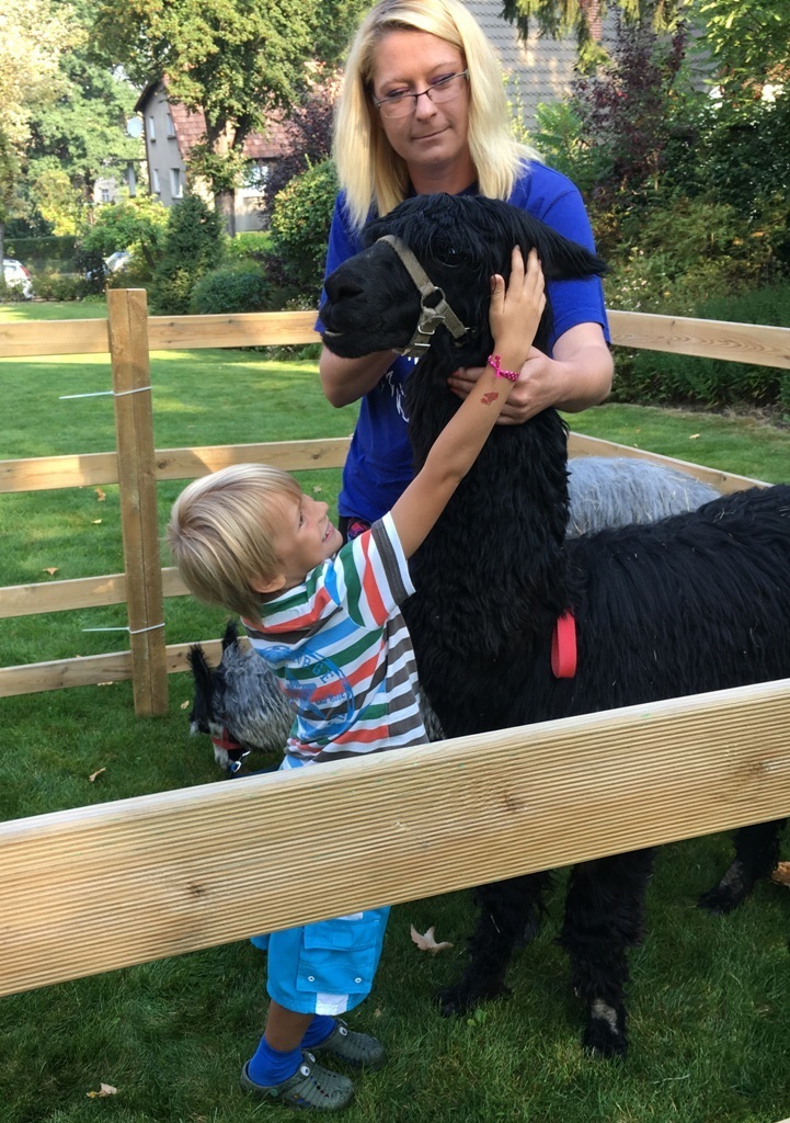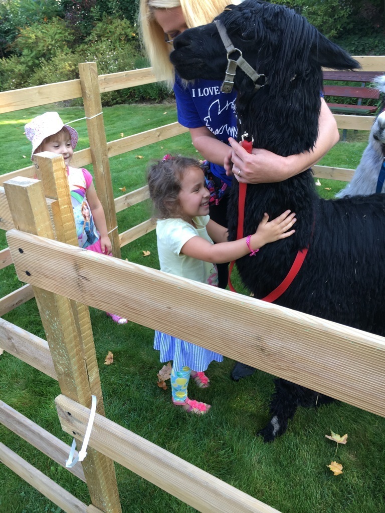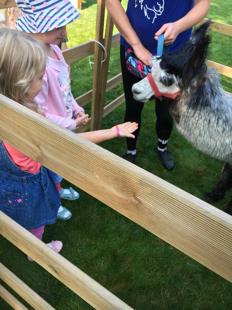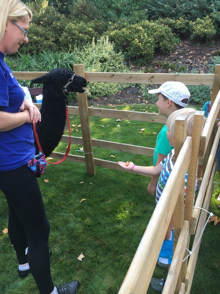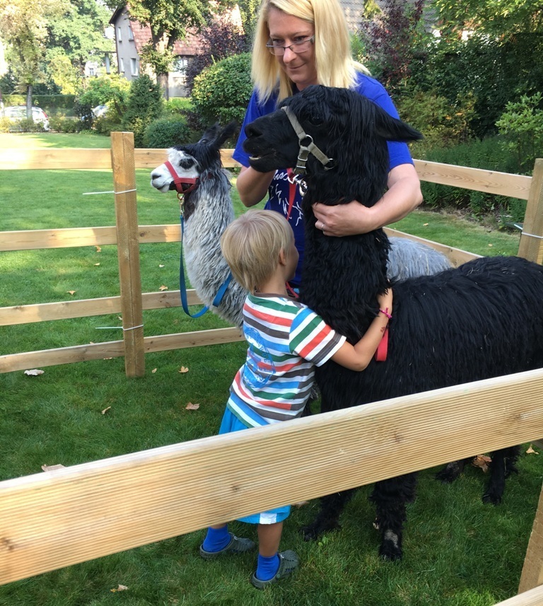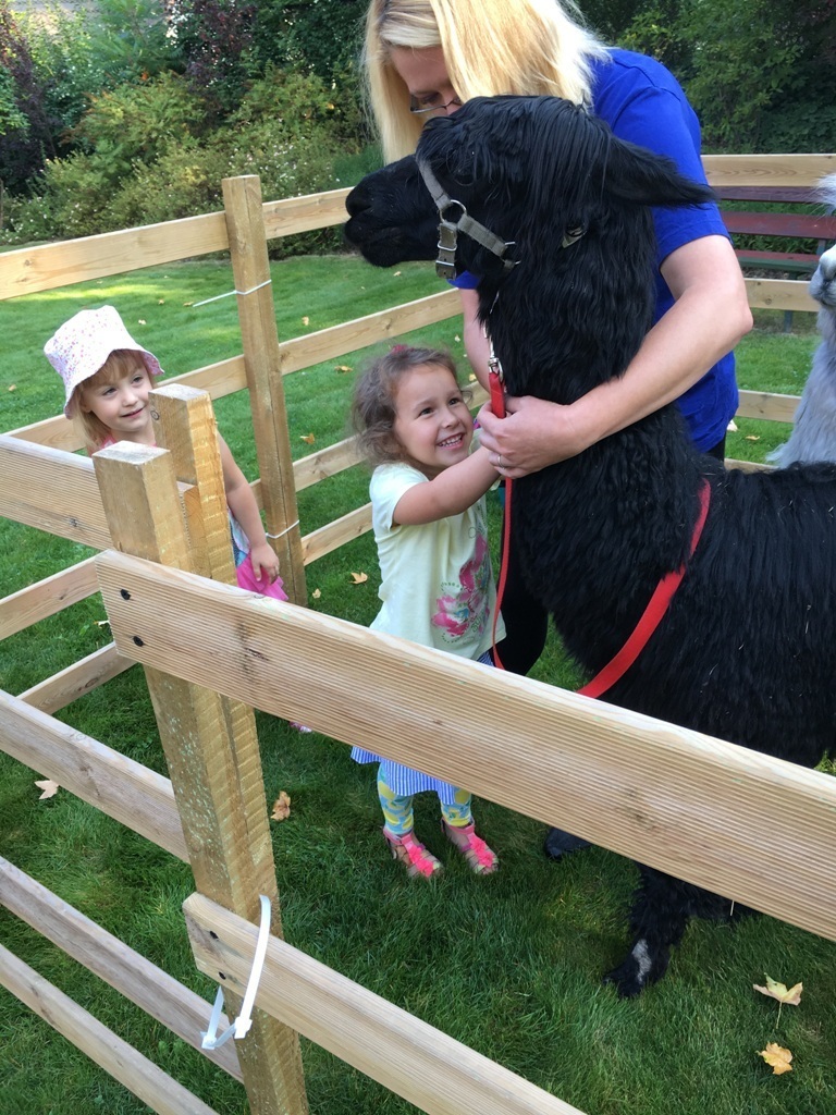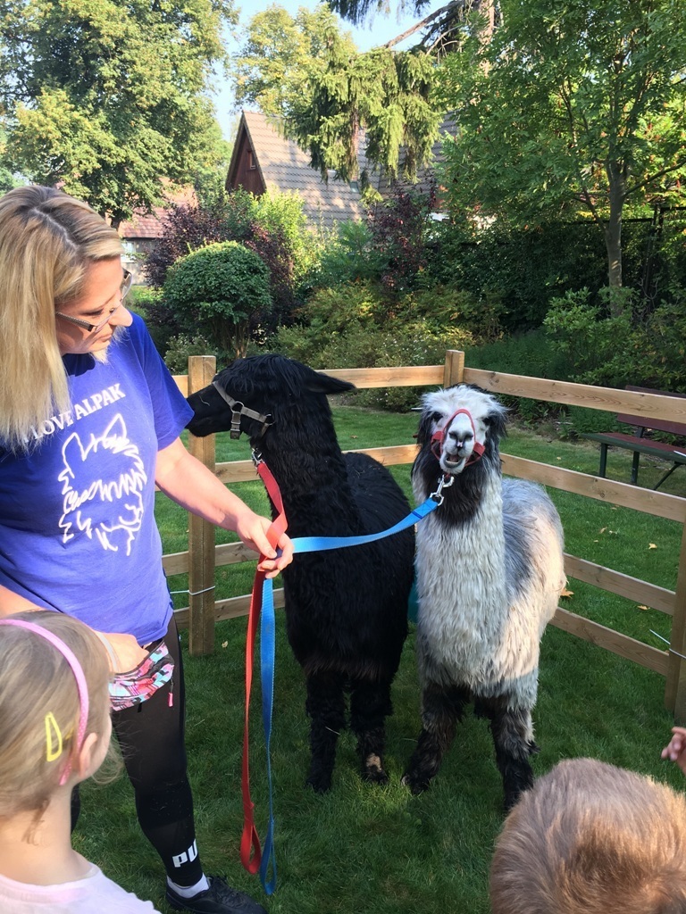 W dniu dzisiejszym nasze przedszkole odwiedziły żywe alpaki. Przed spotkaniem ich opiekunka opowiedziała nam w jaki sposób bezpiecznie powinniśmy się zachować w kontakcie z tymi zwierzętami. Szafirek i Klakson zrobiły na dzieciach ogromne wrażenie. Każdy przedszkolaka miał możliwość krótkiej zabawy i nakarmienia zwierząt. Okazało się , ze alpaki są ogromnymi fanami marchewek i trawy. Ze smakiem zajadały przygotowane przekąski z rak dzieci, a nawet "czapek". Była to dla nas wspaniała zabawa.