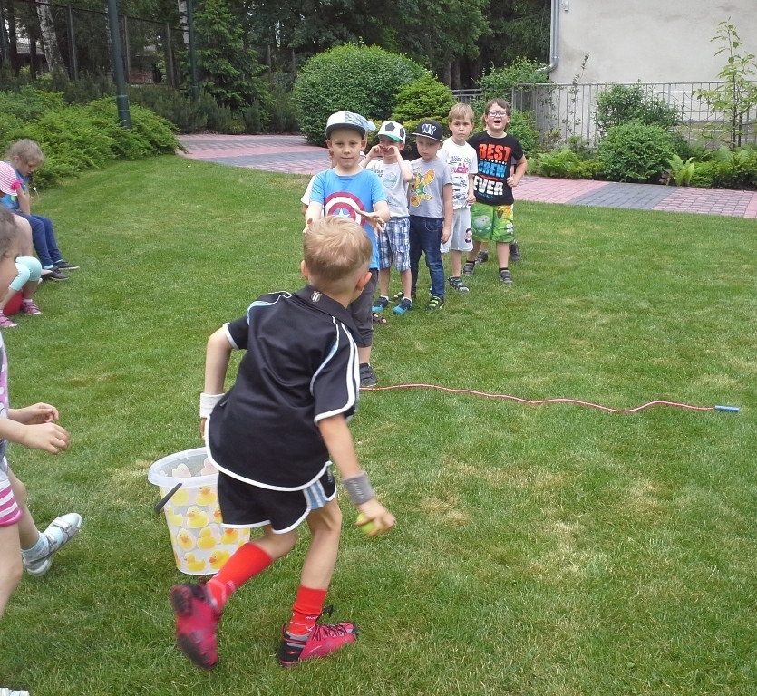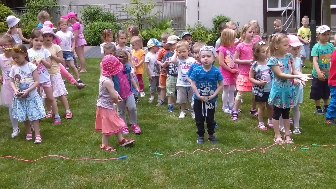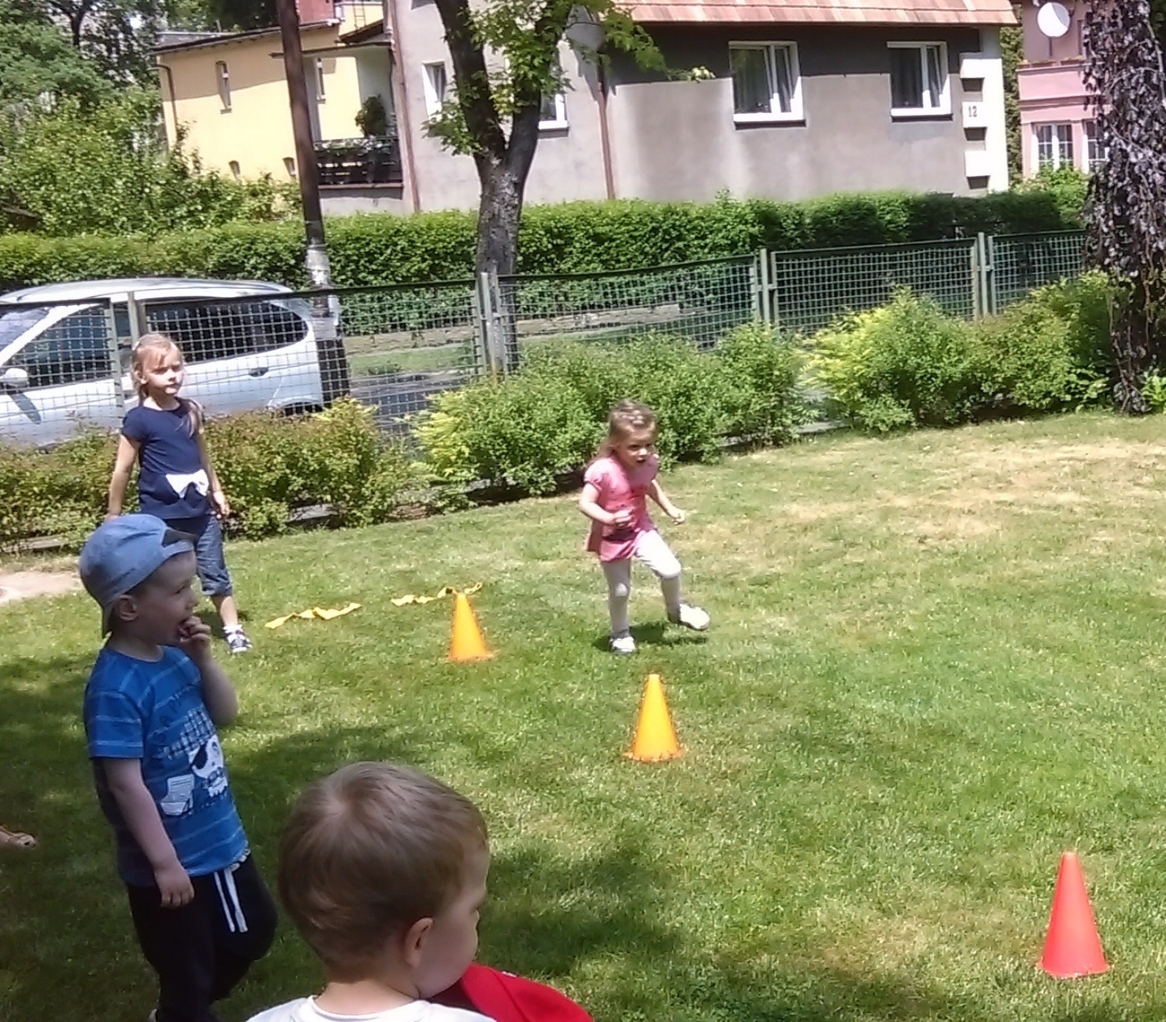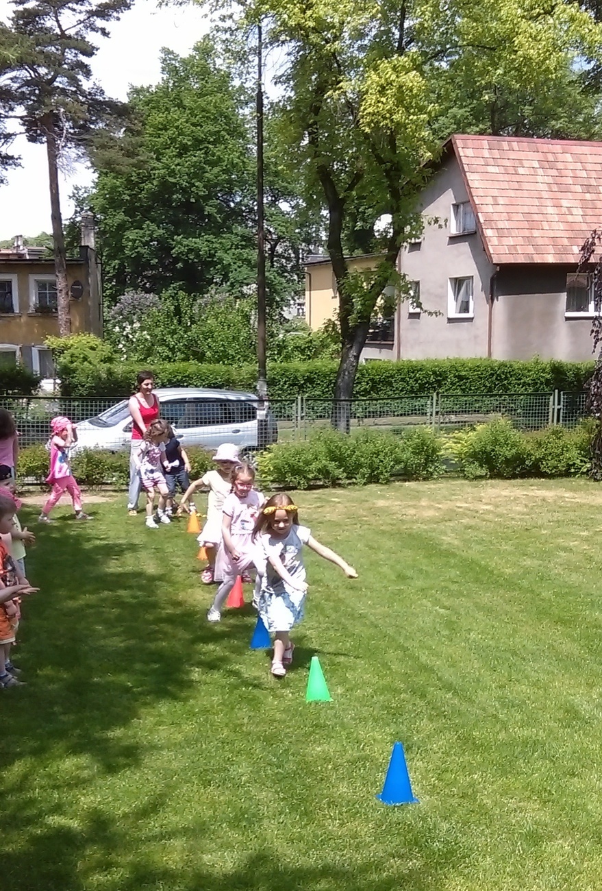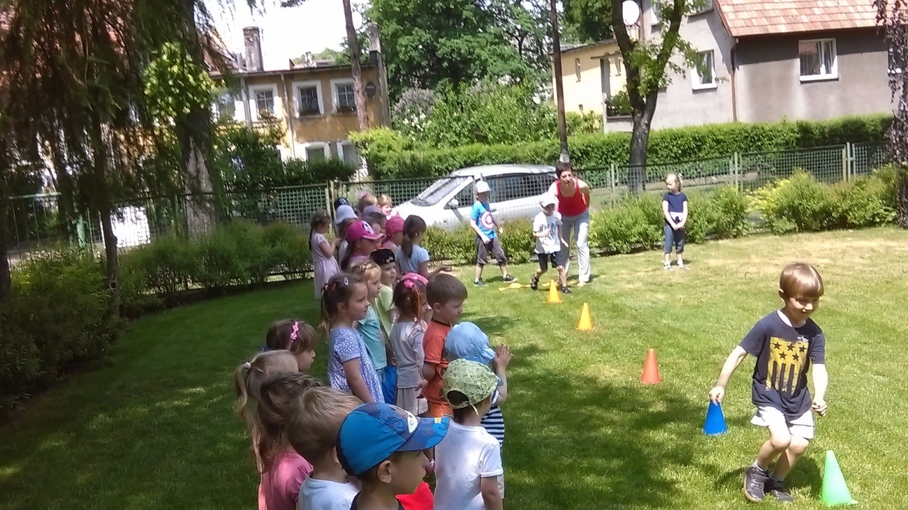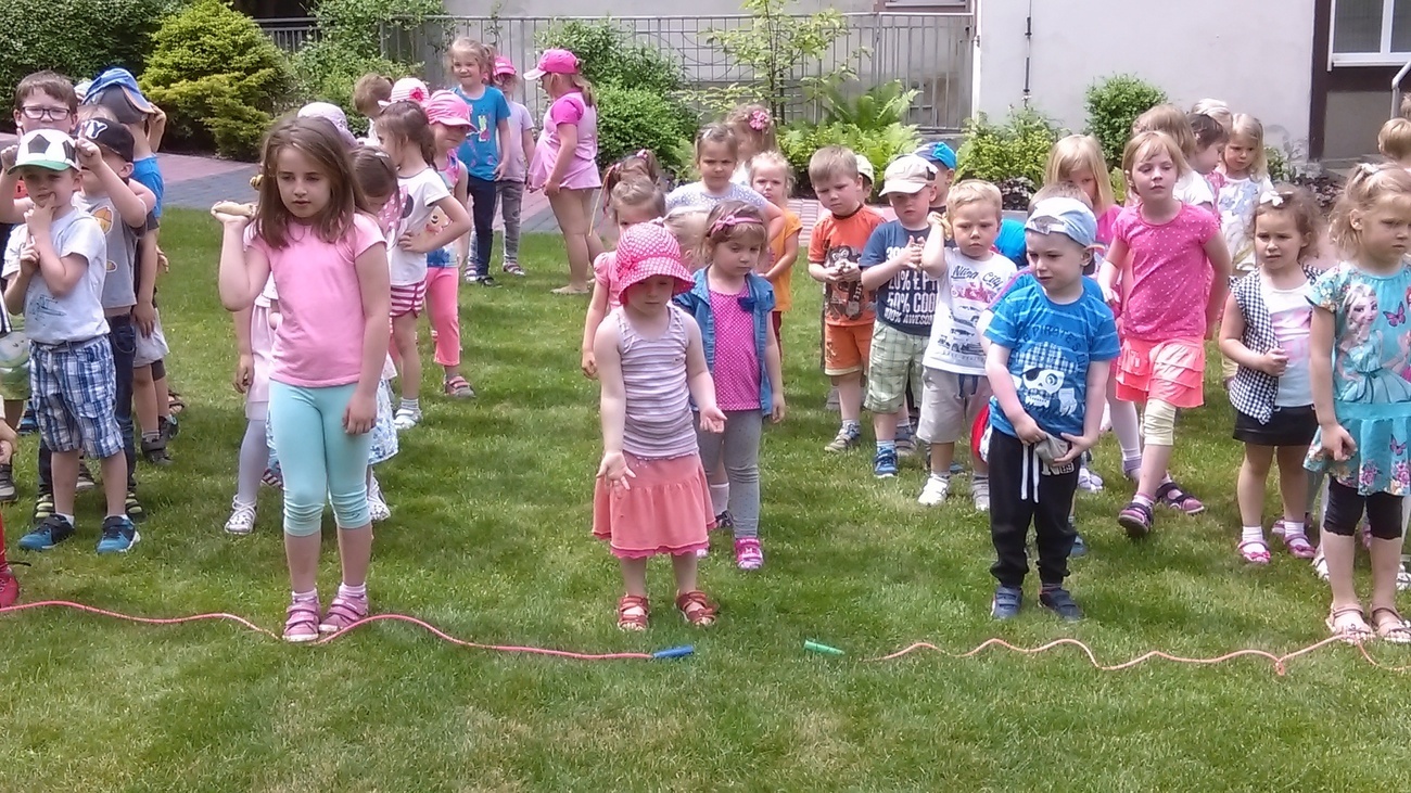W dniu 31.05.2016 w ramach Tygodnia Dziecka odbył się Dzień Sportu, który jest stałym punktem naszych obchodów.Przygotowania rozpoczęliśmy w naszej sali, krótką rozgrzewką. Następnie udaliśmy się do ogrodu przedszkolnego, by razem ze starszakami i średniakami wziąć udział w zawodach, było rzucanie do celu, wyścigi, bieg z przeszkodami. A na zakończenie rozegraliśmy mecz piłki nożnej.