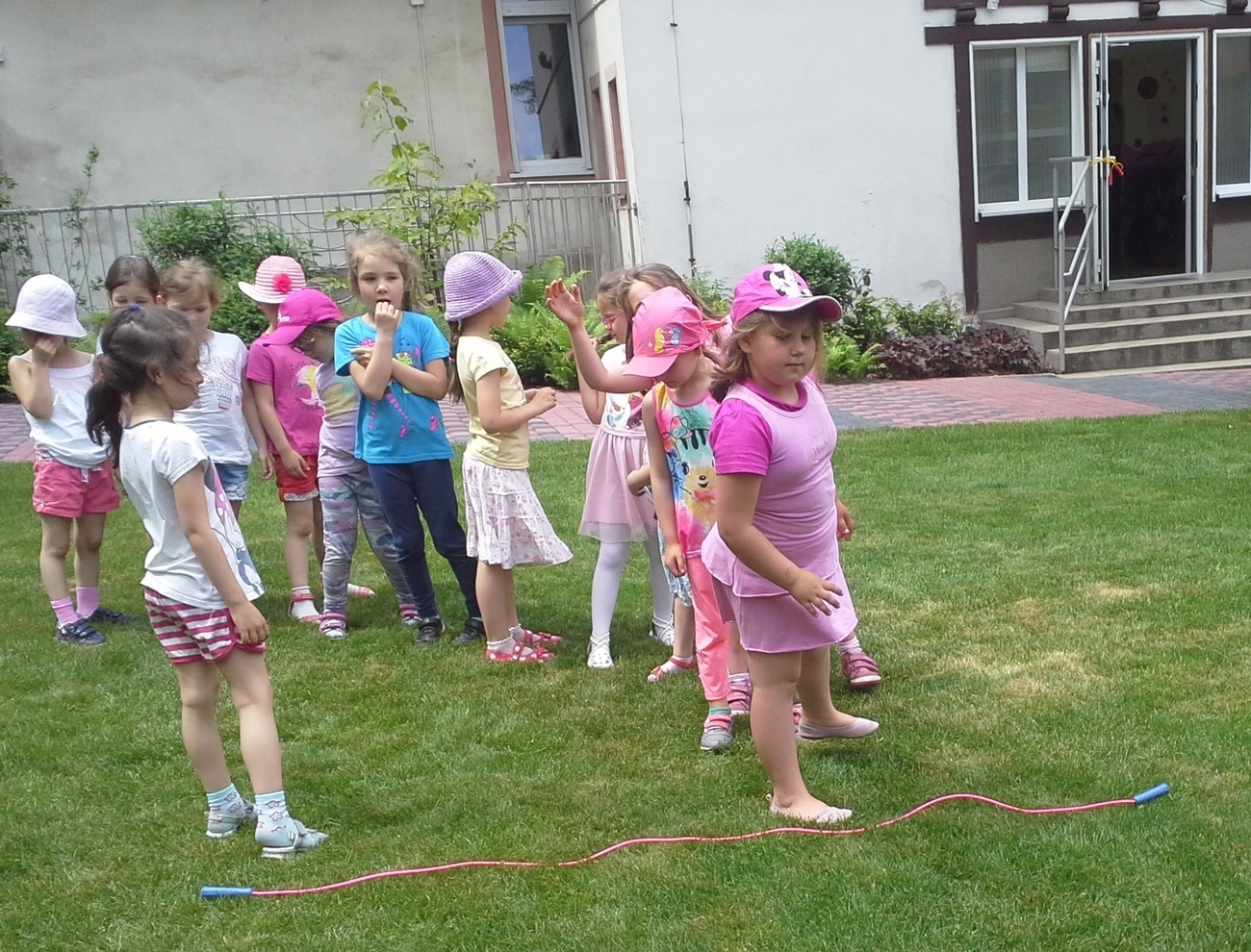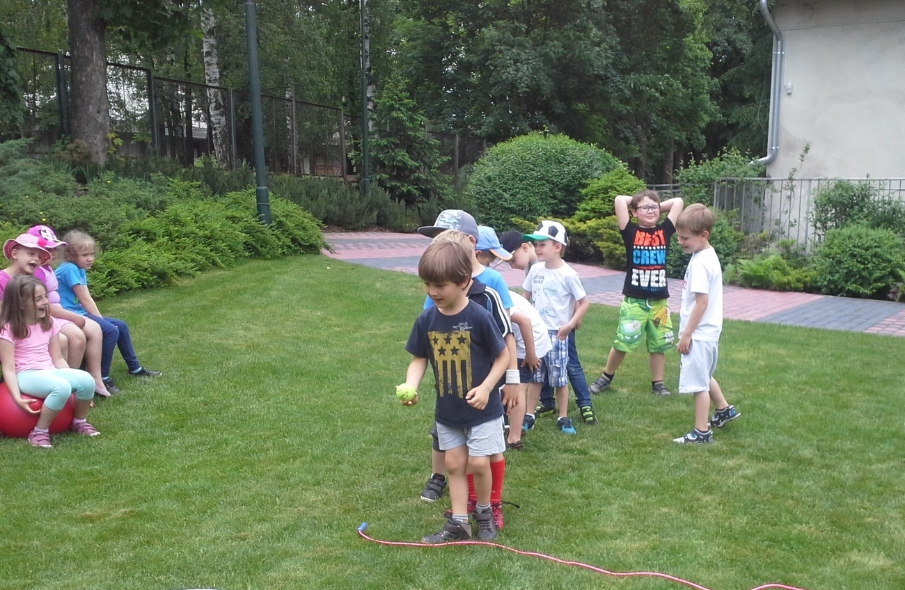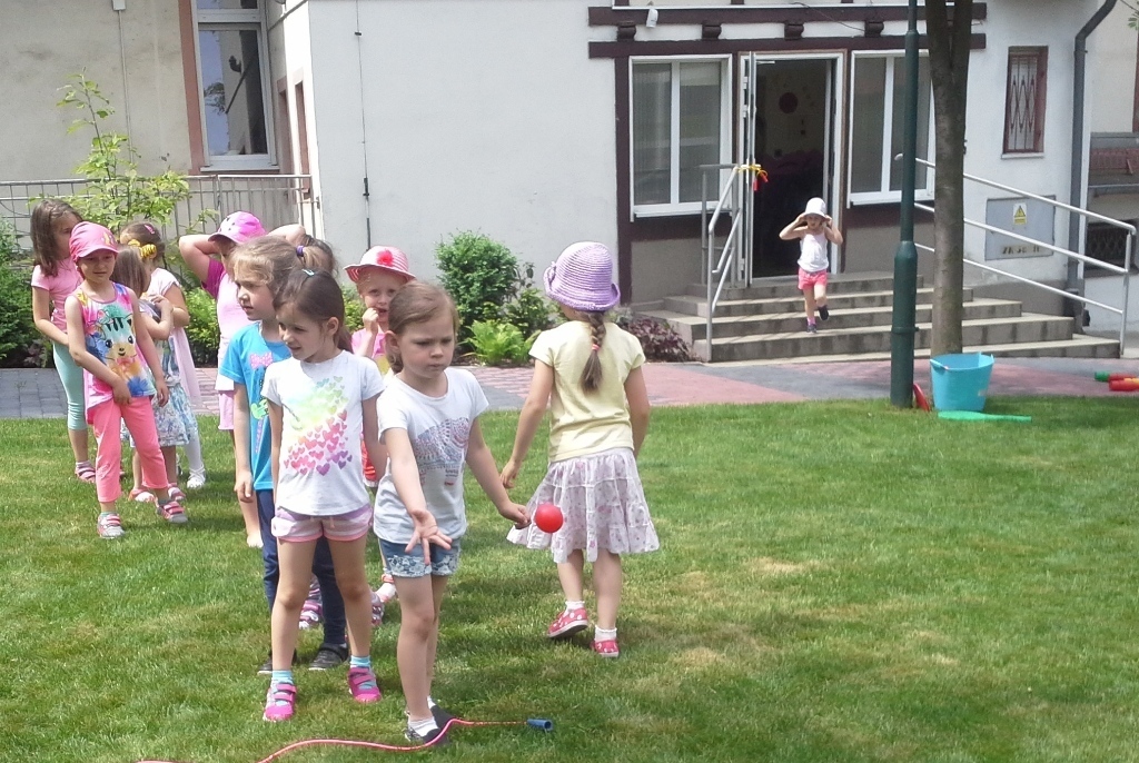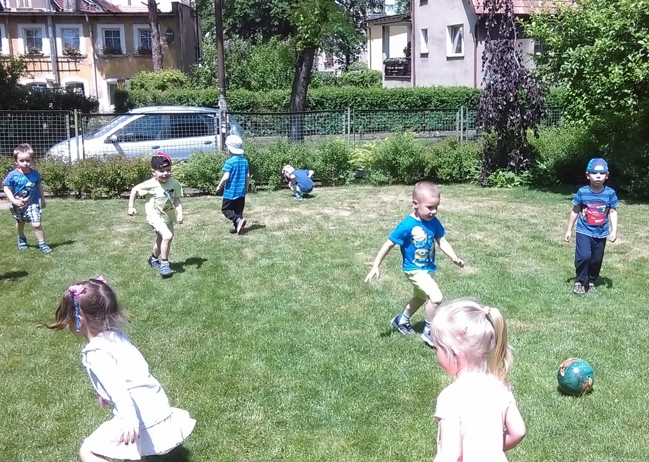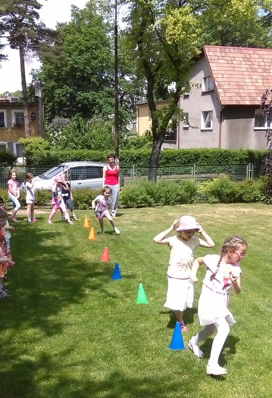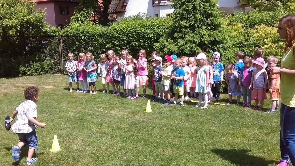 W dniu 31.05.2016 w ramach Tygodnia Dziecka odbył się Dzień Sportu, który jest stałym punktem naszych obchodów.Przygotowania rozpoczęliśmy w naszej sali, krótką rozgrzewką. Następnie udaliśmy się do ogrodu przedszkolnego, by razem ze starszakami i średniakami wziąć udział w zawodach, było rzucanie do celu, wyścigi, bieg z przeszkodami. A na zakończenie rozegraliśmy mecz piłki nożnej.