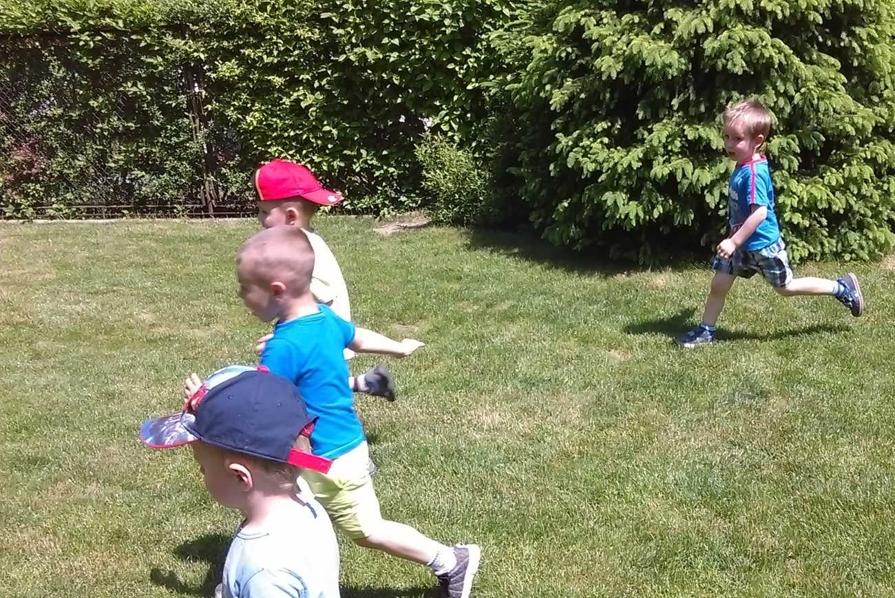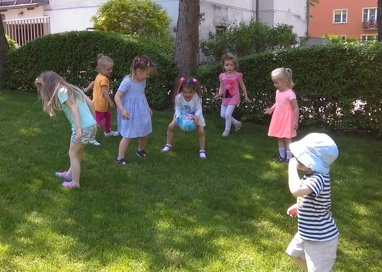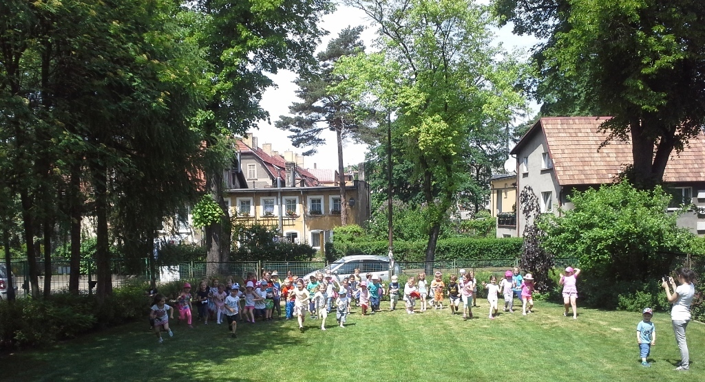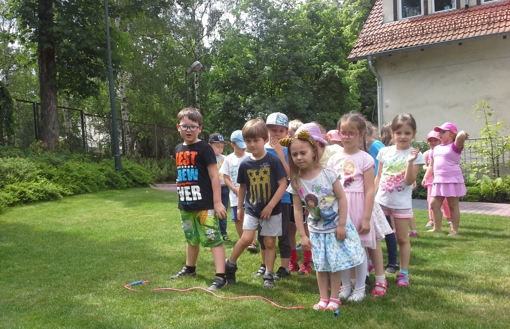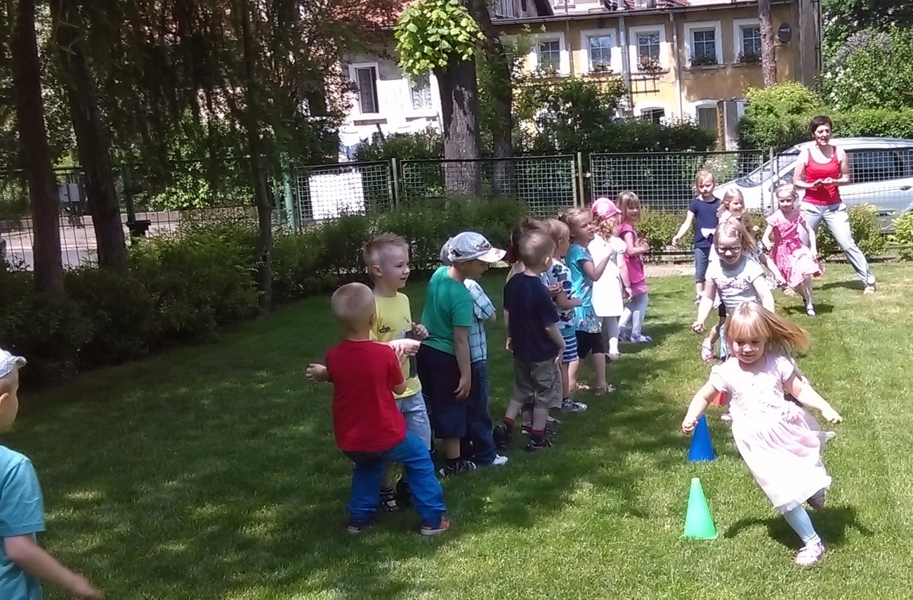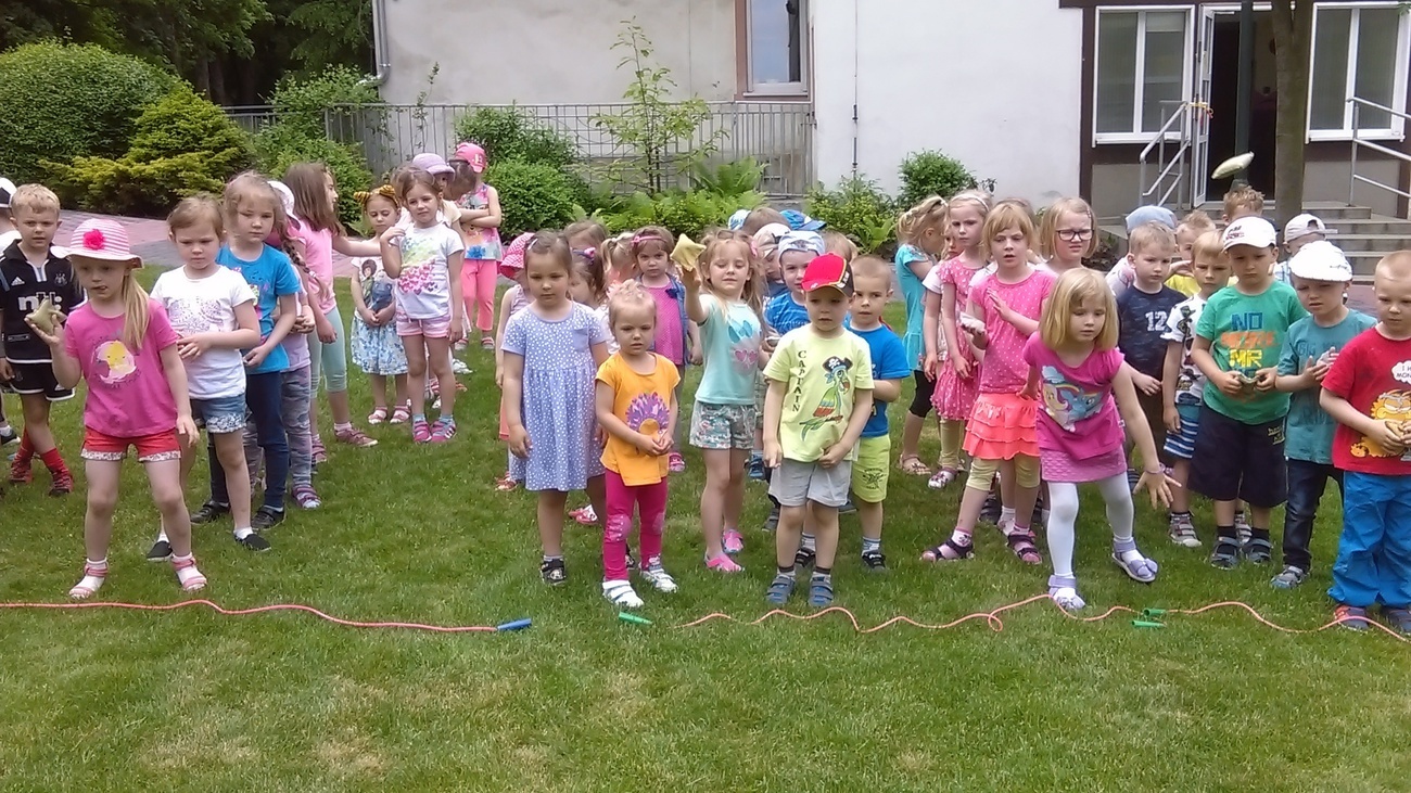 W dniu 31.05.2016 w ramach Tygodnia Dziecka odbył się Dzień Sportu, który jest stałym punktem naszych obchodów.Przygotowania rozpoczęliśmy w naszej sali, krótką rozgrzewką. Następnie udaliśmy się do ogrodu przedszkolnego, by razem ze starszakami i średniakami wziąć udział w zawodach, było rzucanie do celu, wyścigi, bieg z przeszkodami. A na zakończenie rozegraliśmy mecz piłki nożnej.