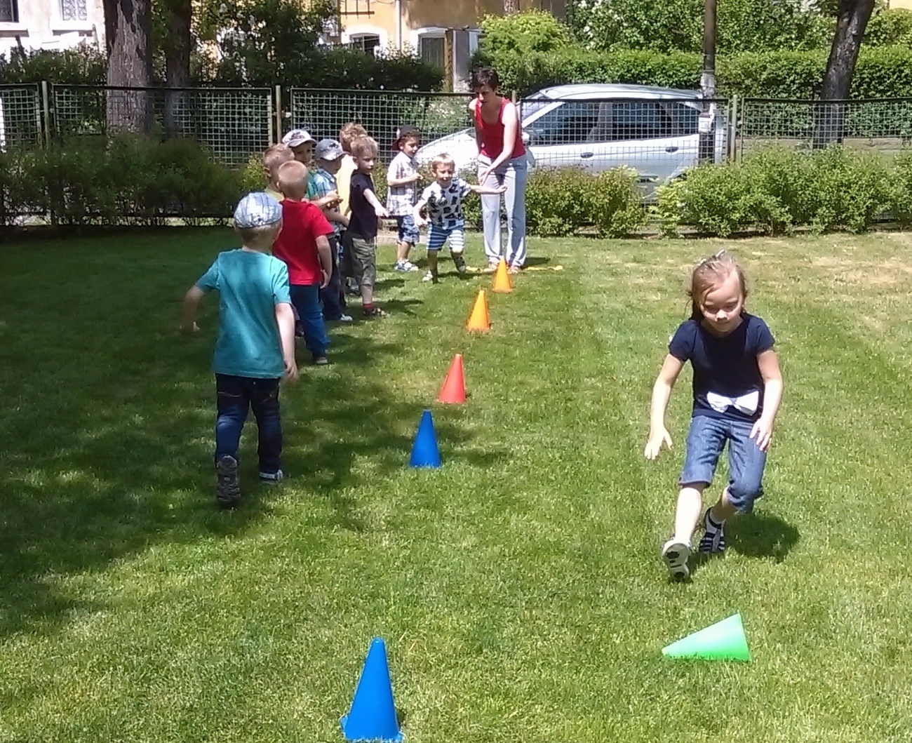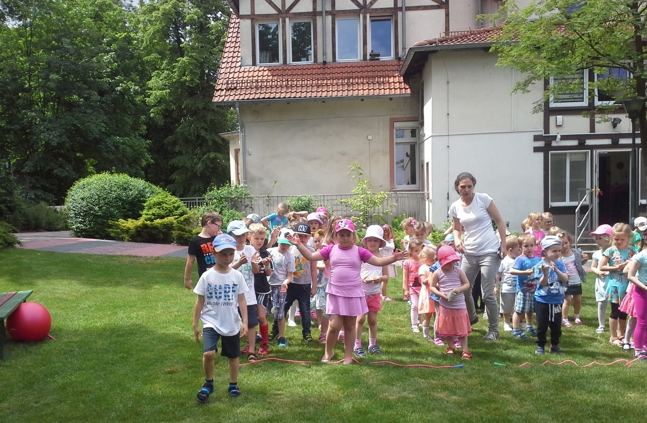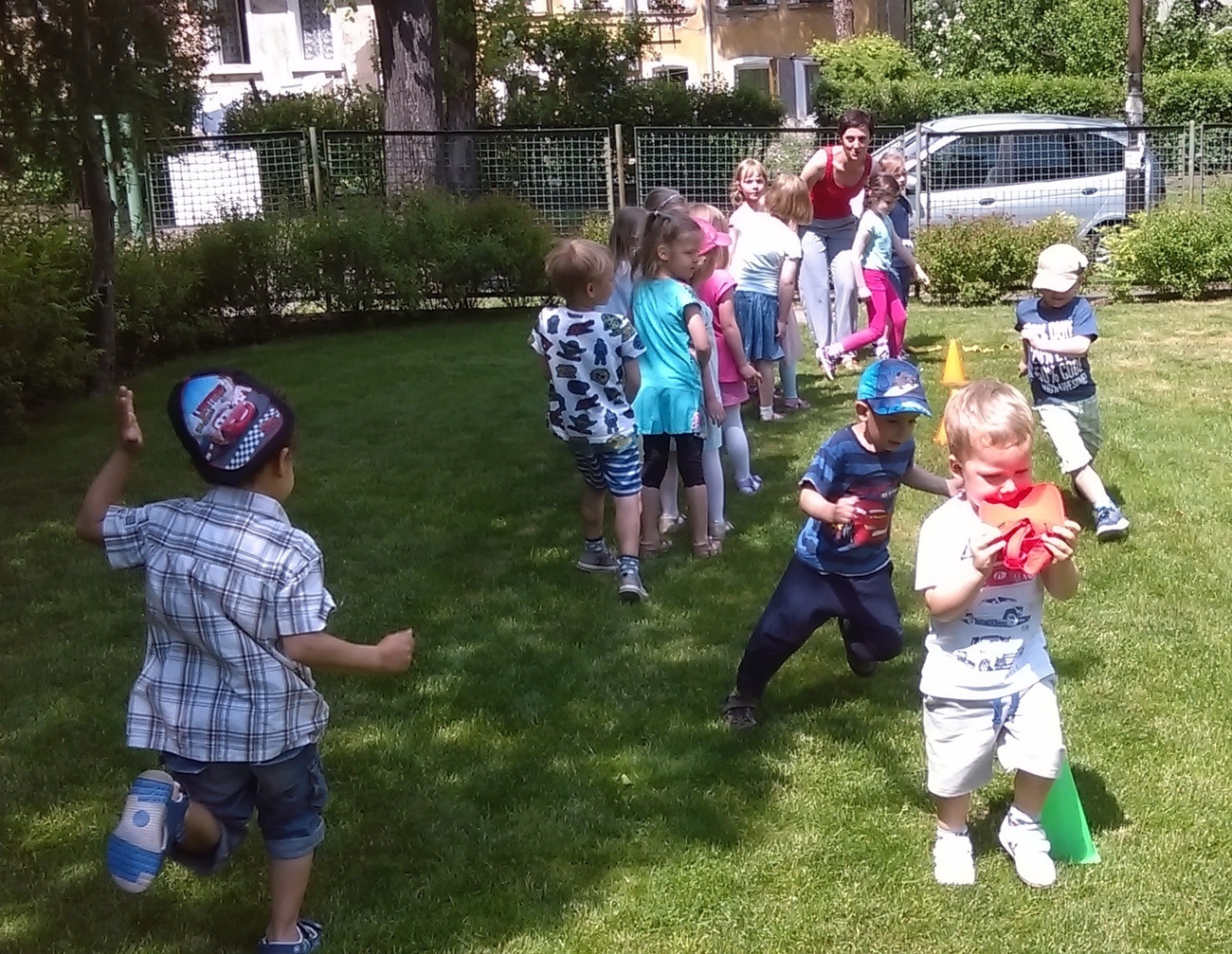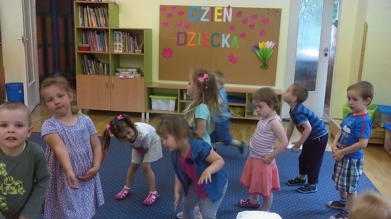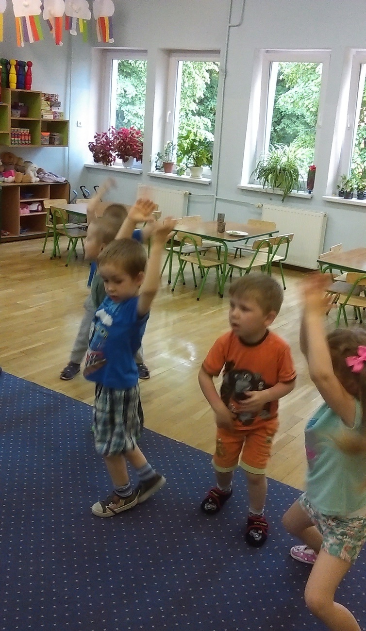 W dniu 31.05.2016 w ramach Tygodnia Dziecka odbył się Dzień Sportu, który jest stałym punktem naszych obchodów.Przygotowania rozpoczęliśmy w naszej sali, krótką rozgrzewką. Następnie udaliśmy się do ogrodu przedszkolnego, by razem ze starszakami i średniakami wziąć udział w zawodach, było rzucanie do celu, wyścigi, bieg z przeszkodami. A na zakończenie rozegraliśmy mecz piłki nożnej.