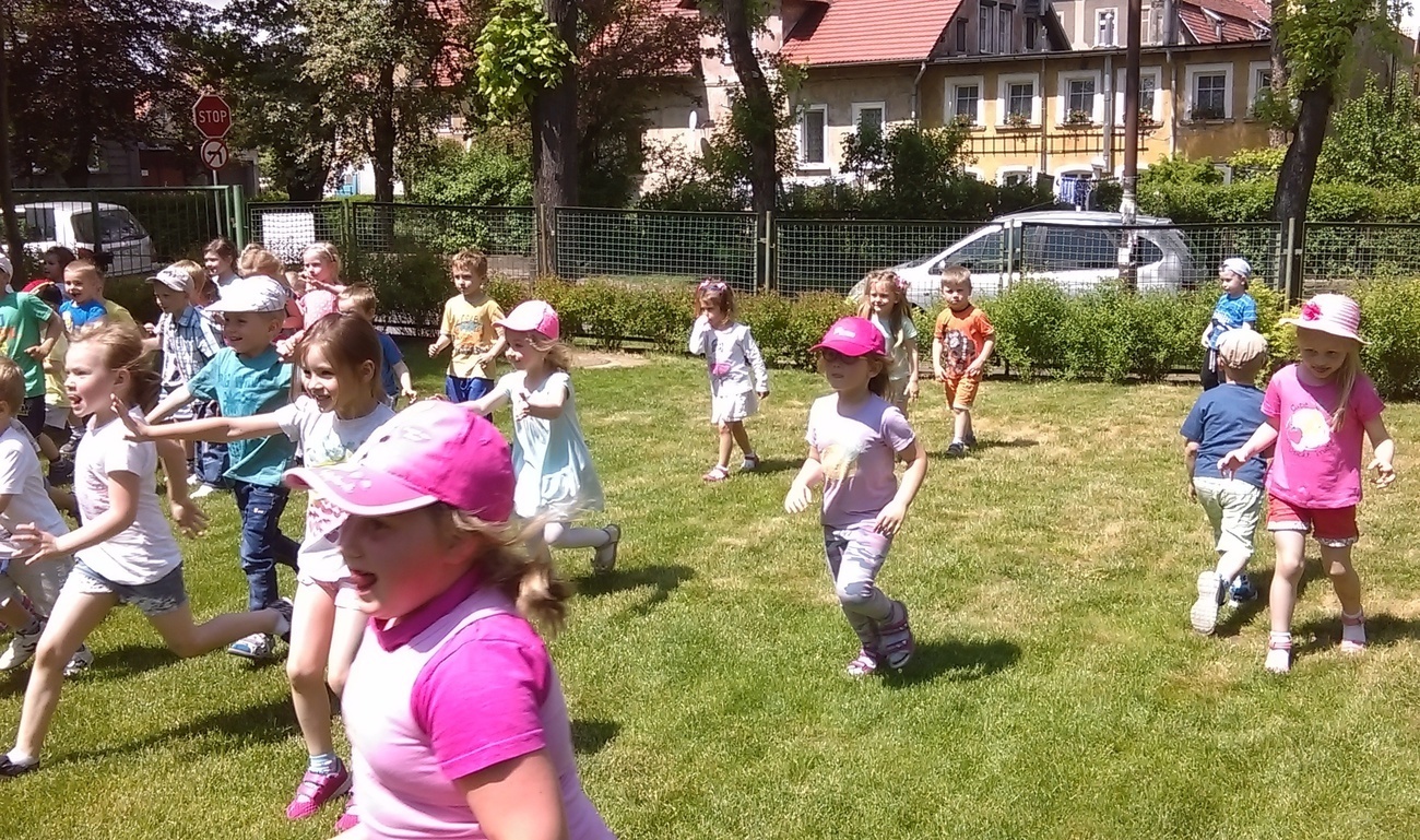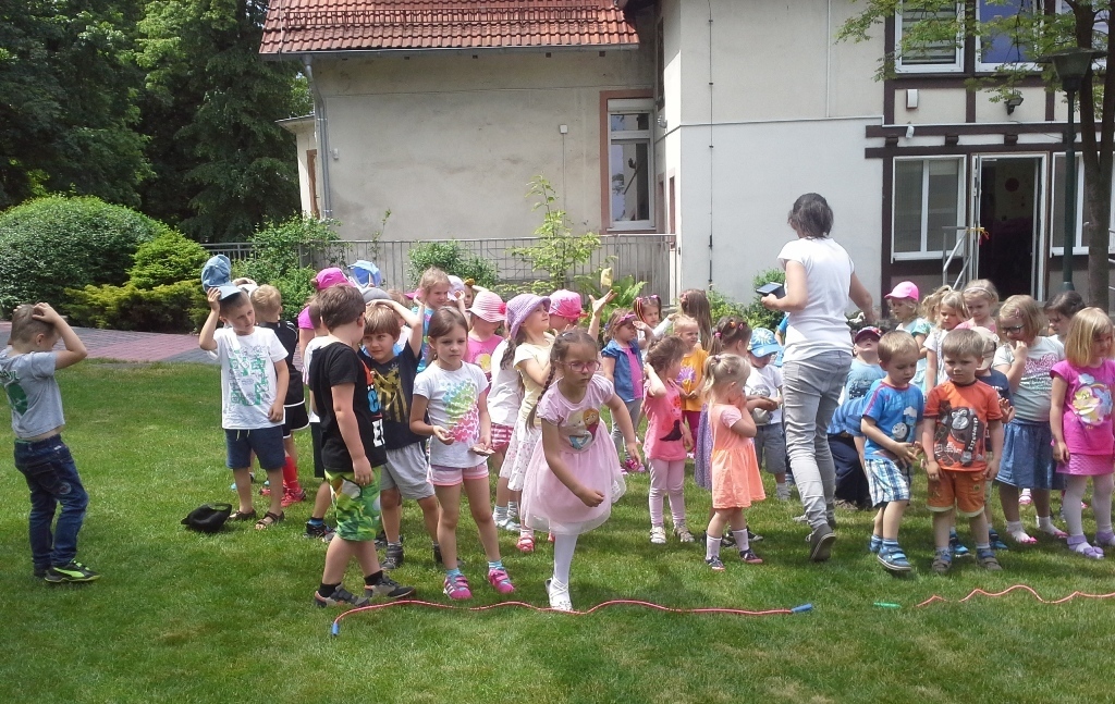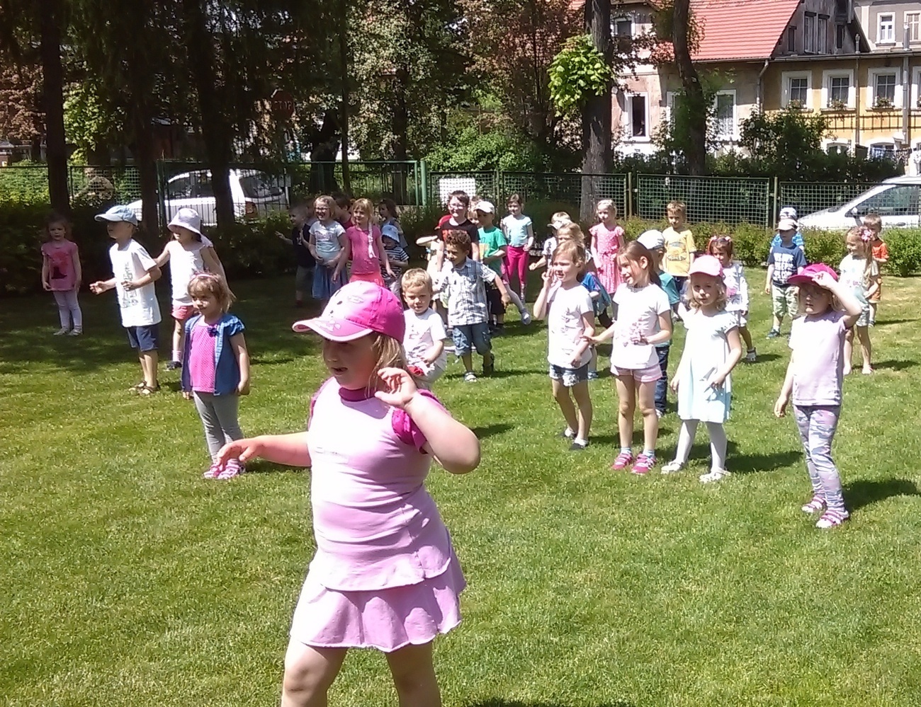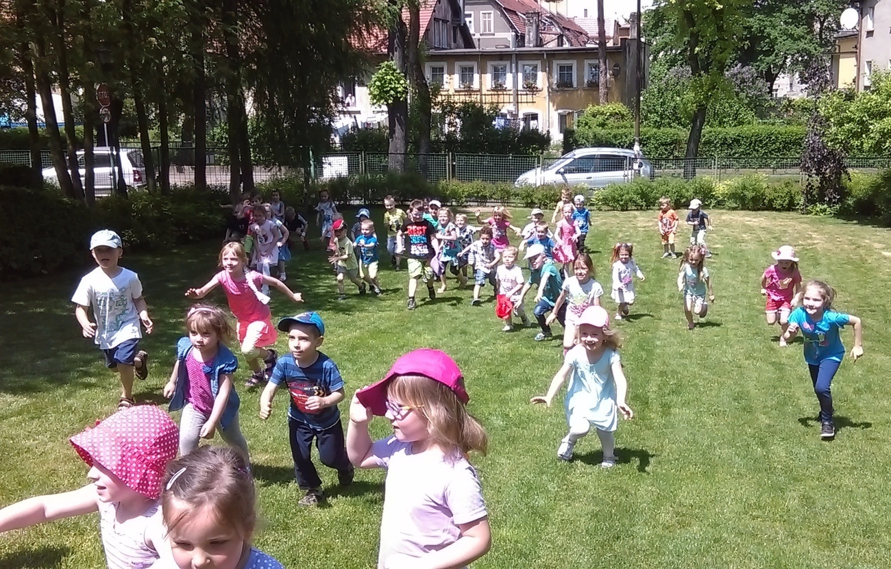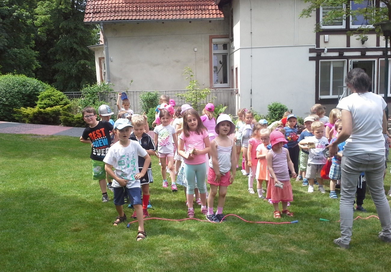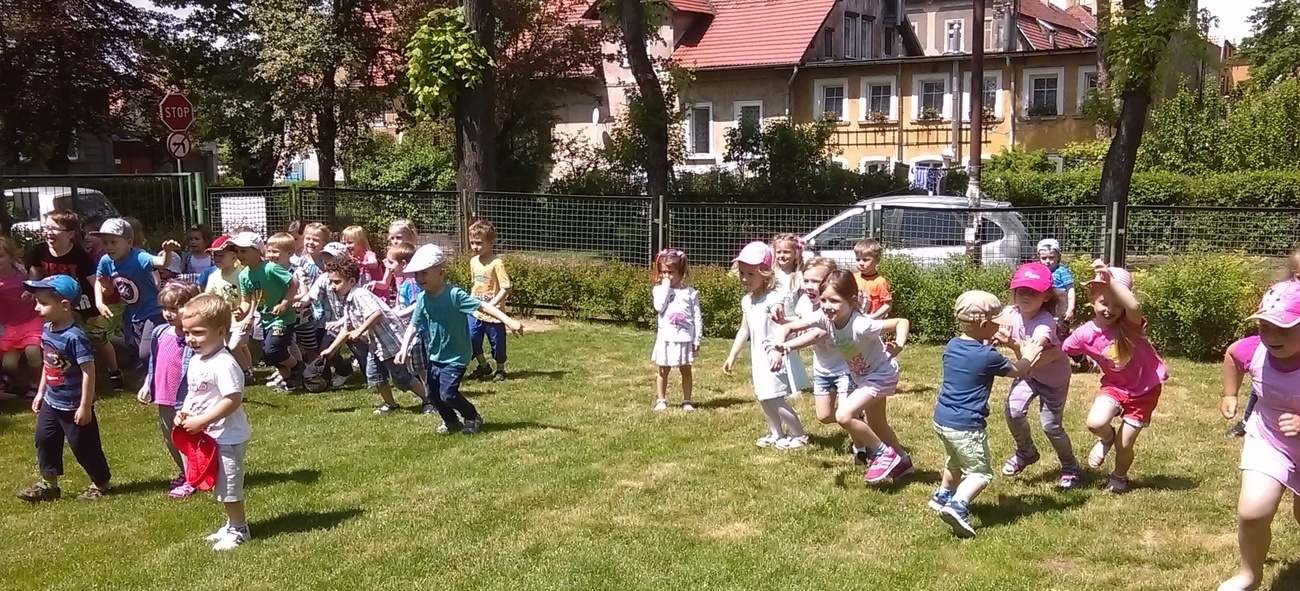 W dniu 31.05.2016 w ramach Tygodnia Dziecka odbył się Dzień Sportu, który jest stałym punktem naszych obchodów.Przygotowania rozpoczęliśmy w naszej sali, krótką rozgrzewką. Następnie udaliśmy się do ogrodu przedszkolnego, by razem ze starszakami i średniakami wziąć udział w zawodach, było rzucanie do celu, wyścigi, bieg z przeszkodami. A na zakończenie rozegraliśmy mecz piłki nożnej.