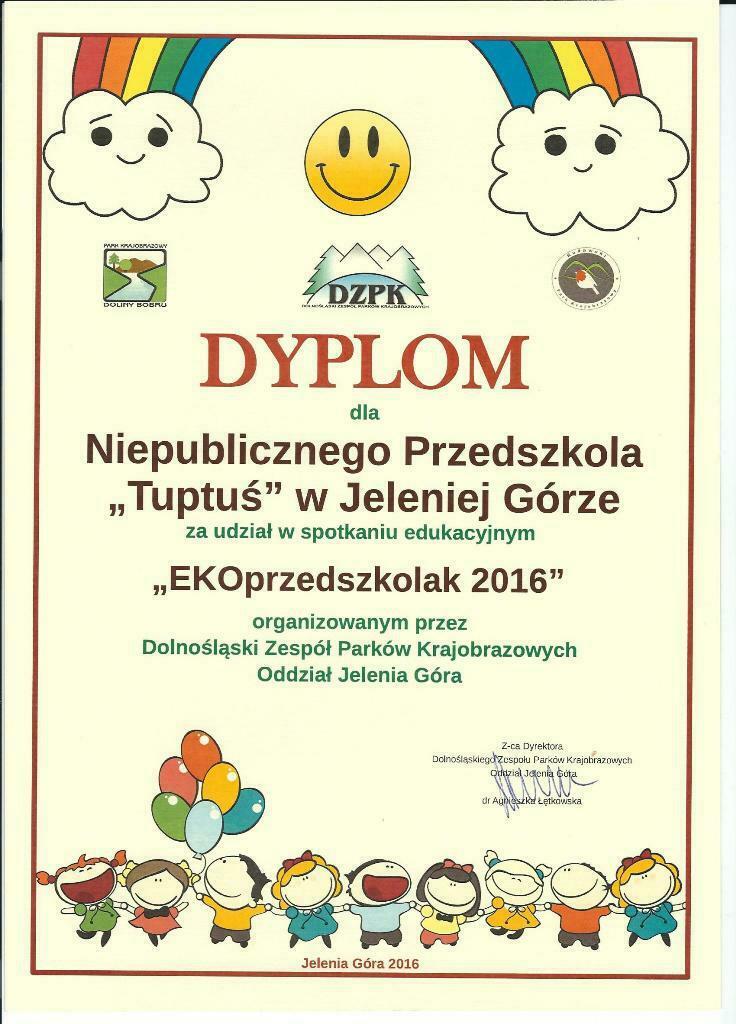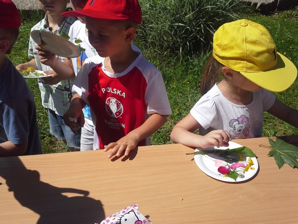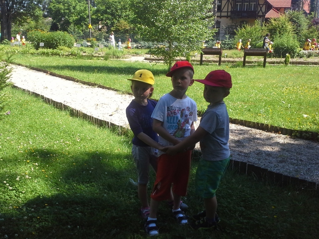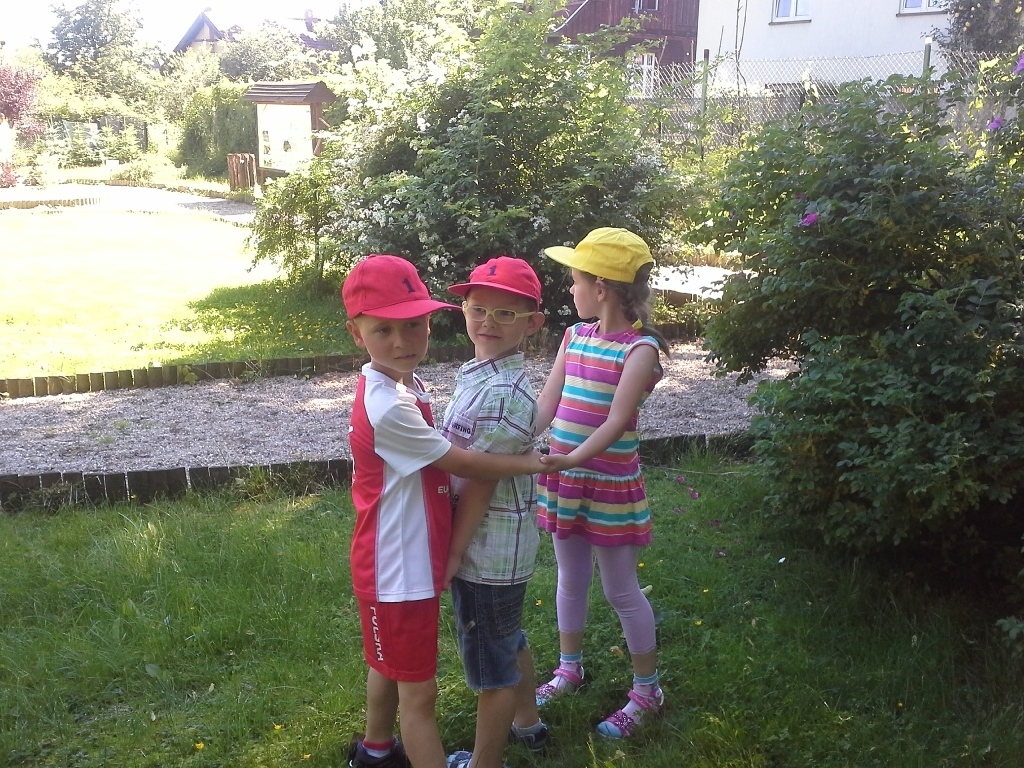 Dziś starszaki z grupy III brały udział w festynie edukacyjnym „Eko-przedszkolak” organizowanym przez Dolnośląski Zespół Parków Krajobrazowych w Sobieszowie. Atrakcji było mnóstwo! Najpierw każde przedszkole prezentowało krótki program artystyczny, następnie dzieci zostały podzielone na grupy i każdy podążył za edukatorem, który przygotował zadanie dla dzieci. Najpierw były zabawy ruchowe na łące, potem tworzyliśmy kompozycje z polnych kwiatów i roślin, a na koniec każdy przygotował ekologiczny kwiat. Gdy już bardzo się zmęczyliśmy w cieniu drzewa zjedliśmy śniadanie, dzięki któremu nabraliśmy sił do dalszej zabawy. Były bańki mydlane, zabawy z chustą animacyjną, a na koniec wręczanie nagród i dyplomów laureatom konkursu pt. „Przyrodę szanuję-śmieci segreguję”. Możemy być dumni z naszych przedszkolaków ponieważ Łucja P. zajęła II miejsce, a Kaja M. zajęła III miejsce. Laureatów wyodrębniono