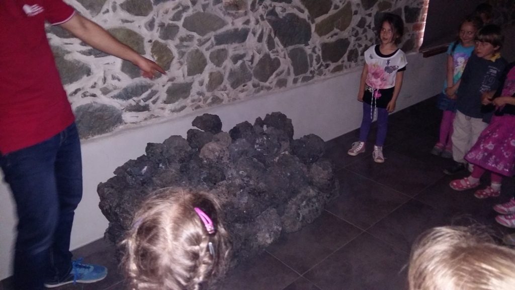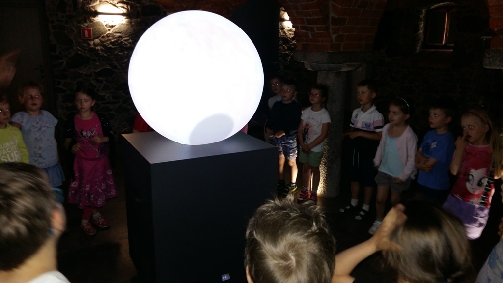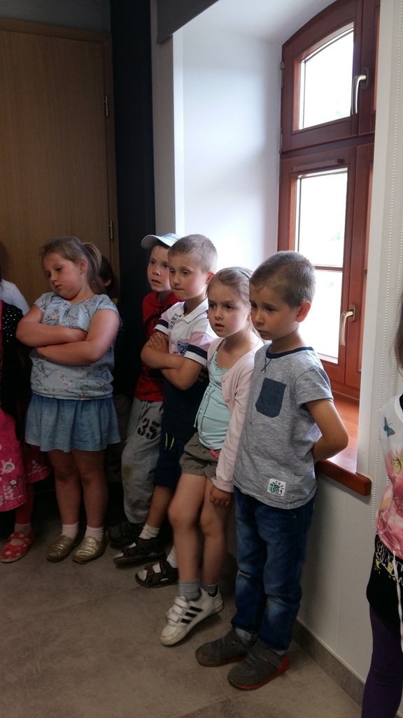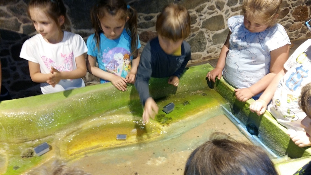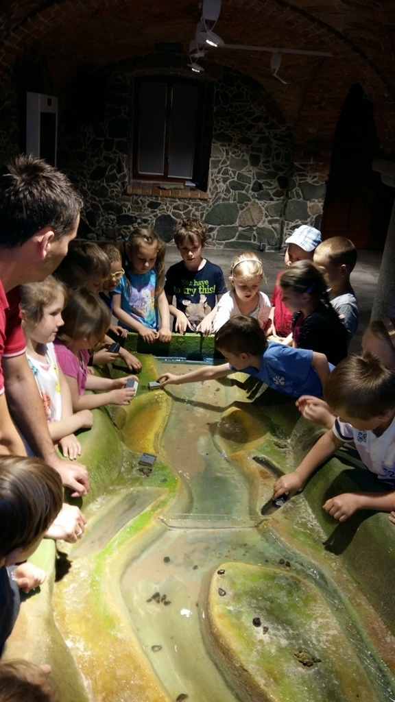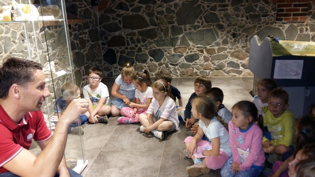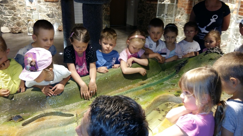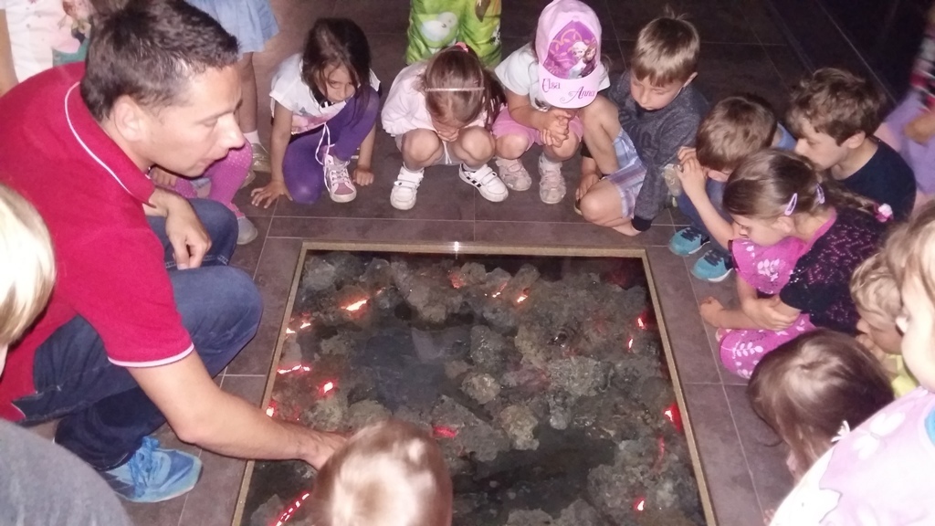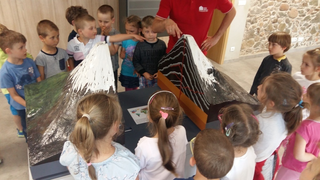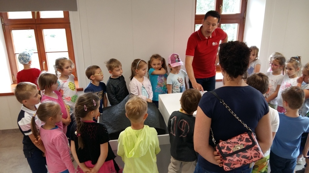 Około godziny 14.00 dotarliśmy do drugiego miejsca naszej wycieczki czyli do Zagrody Edukacyjnej w Dobkowie. Naturalnie wszyscy już na nas czekali, żeby przybliżyć nam tajniki naszej Planety Ziemi. Dowiedzieliśmy się w jaki sposób powstała, nauczyliśmy się rozpoznawać agat i kalcyt. Dowiedzieliśmy się co to są tereny zalewowe i na jakiej zasadzie działa tama wodna. Następnie przeszliśmy do sali z wulkanami i gejzerami, gdzie dzieci mogły zrozumieć czym jest zjawisko wybuchu wulkanu i gejzerów. Jednakże najlepsze zostało na koniec mogliśmy doświadczyć na własnej skórze jak to jest podczas trzęsienia ziemi. Pełni pozytywnych doświadczeń i radości z pięknej pogody wróciliśmy do przedszkola, przed którym czekał szpaler rodziców, którzy przyszli po swoje pociechy. Dzień wszyscy jednomyślnie uznali za udany. Oby było takich jak najwięcej.
