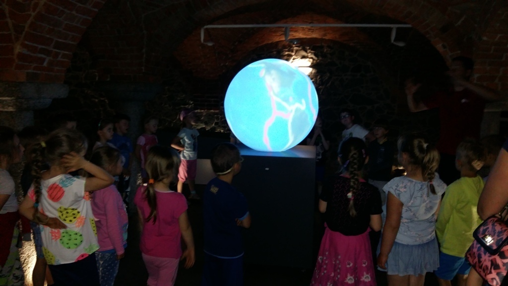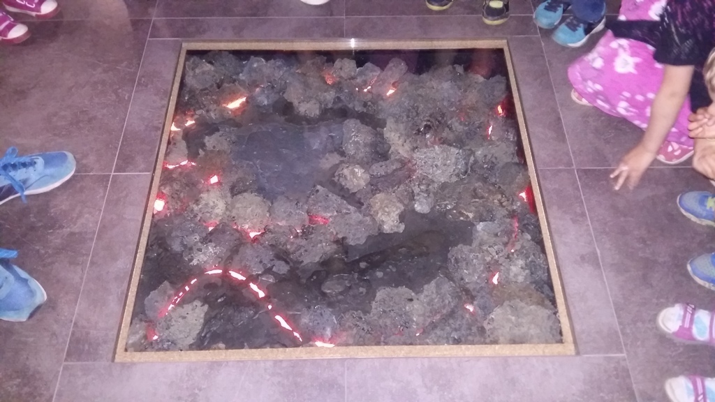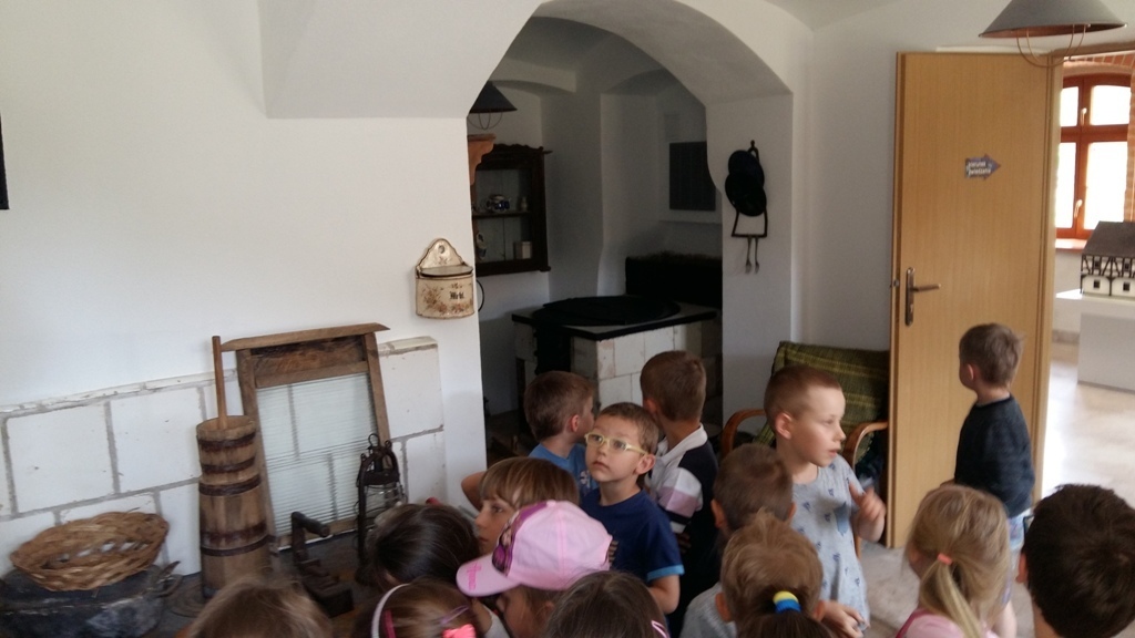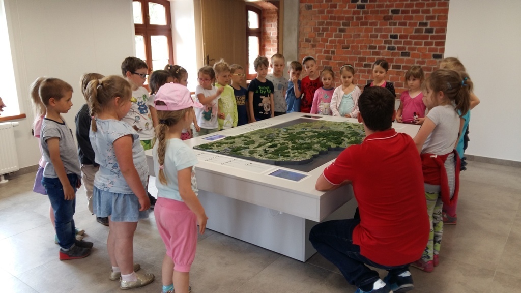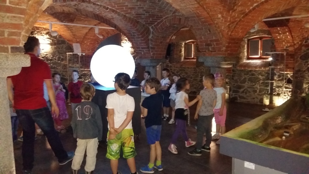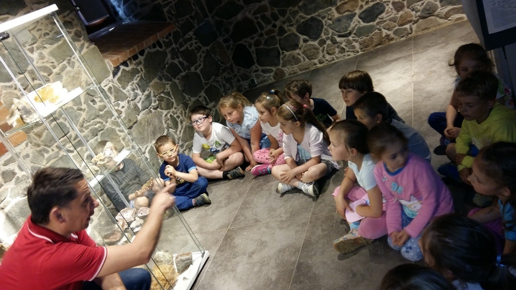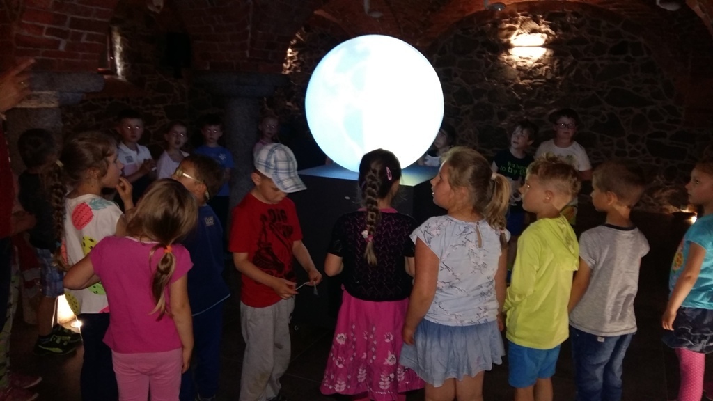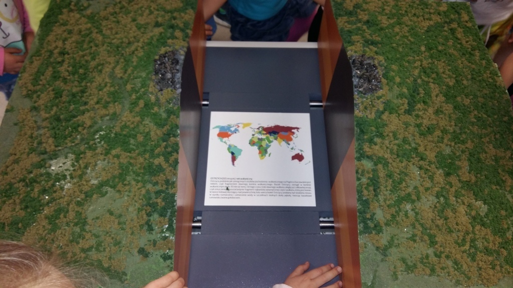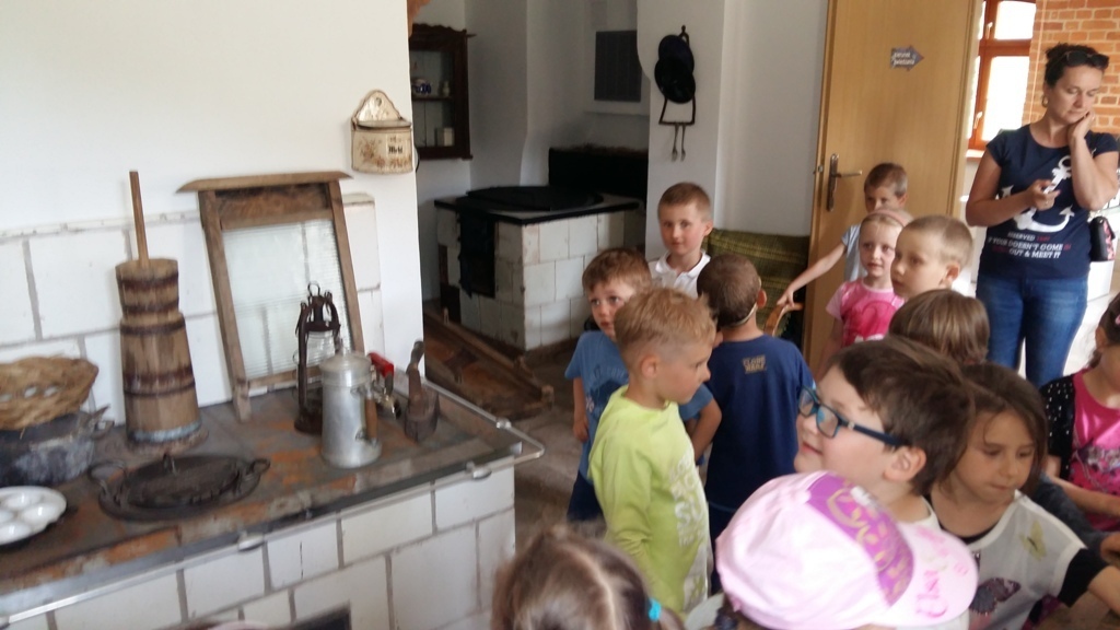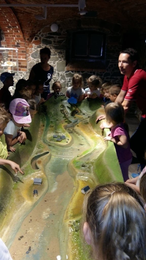 Około godziny 14.00 dotarliśmy do drugiego miejsca naszej wycieczki czyli do Zagrody Edukacyjnej w Dobkowie. Naturalnie wszyscy już na nas czekali, żeby przybliżyć nam tajniki naszej Planety Ziemi. Dowiedzieliśmy się w jaki sposób powstała, nauczyliśmy się rozpoznawać agat i kalcyt. Dowiedzieliśmy się co to są tereny zalewowe i na jakiej zasadzie działa tama wodna. Następnie przeszliśmy do sali z wulkanami i gejzerami, gdzie dzieci mogły zrozumieć czym jest zjawisko wybuchu wulkanu i gejzerów. Jednakże najlepsze zostało na koniec mogliśmy doświadczyć na własnej skórze jak to jest podczas trzęsienia ziemi. Pełni pozytywnych doświadczeń i radości z pięknej pogody wróciliśmy do przedszkola, przed którym czekał szpaler rodziców, którzy przyszli po swoje pociechy. Dzień wszyscy jednomyślnie uznali za udany. Oby było takich jak najwięcej.
