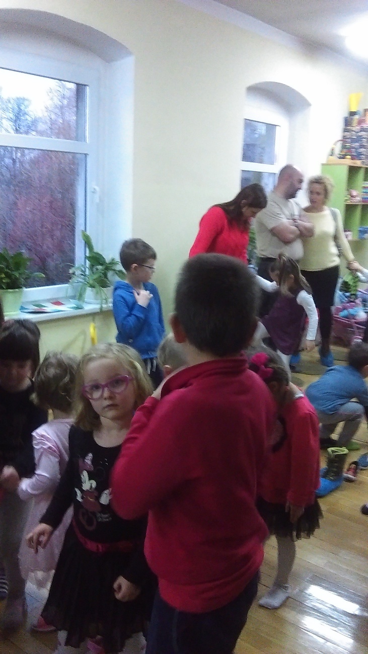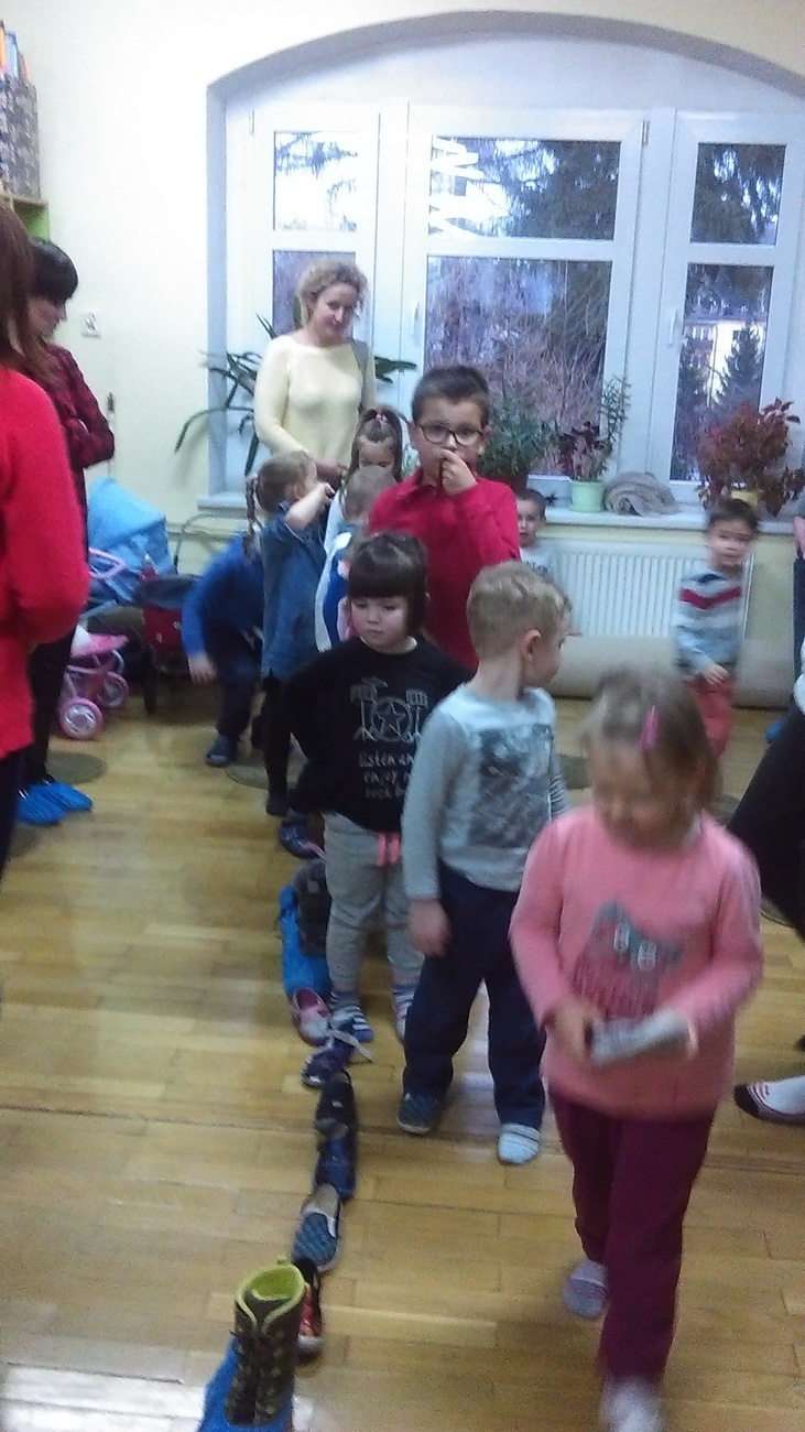 Dzień 29 listopada 2016 był wyjątkowym dniem. Zaprosiliśmy naszych rodziców do przedszkola na wspólną zabawę andrzejkową, którą zaczęliśmy „kleksową wróżbą”. Po niej przyszedł czas na kolorowe wróżby, z których dowiedzieliśmy się co powinno się zmienić w nadchodzącym roku.Następna wróżba dotyczyła niespodzianek jakie nas spotkają. Urządziliśmy nawet wyścigi butów. Ostatnia wróżba była dla nas chyba najważniejsza bo dotyczyła prezentów jakie znajdziemy pod choinką. Na wspólnej zabawie czas szybko minął, nim się spostrzegliśmy trzeba było wracać do domu.