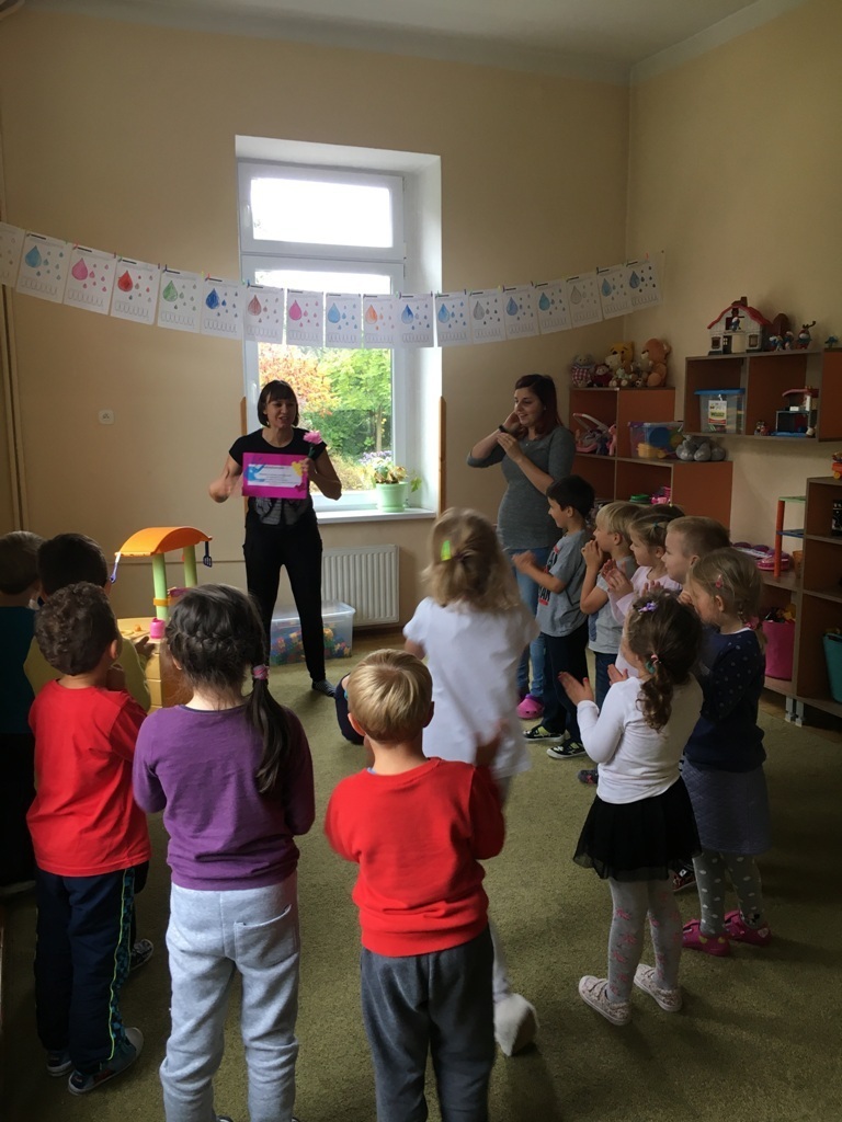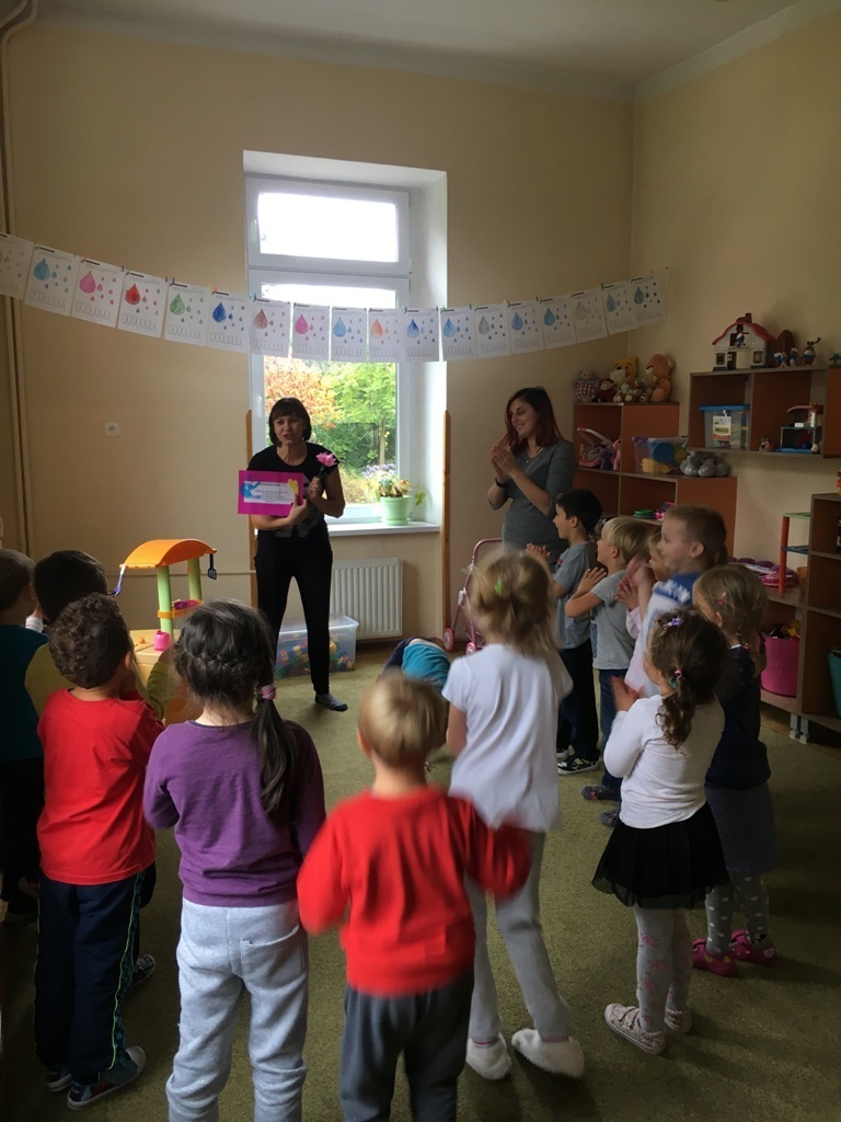 Pani Anna opowiedziała dzieciom z czym wiąże się zawód aktora i nie jest to wcale łatwa praca. Dowiedzieliśmy się, że trzeba bardzo dużo pracować nad swoim głosem oraz uczyć się nowych ról by móc je bezbłędnie powtórzyć na scenie.