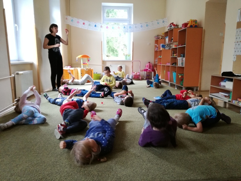 Pani Ania pokazała Tygryskom kilka sposobów na ćwiczenie dykcji, ogólną sprawność organizmu, które muszą wykonywać aktorzy. Przyznaję, że przedszkolaki świetnie sobie z tym poradziły. Wykonaliśmy też krótkie ćwiczenia głosu.