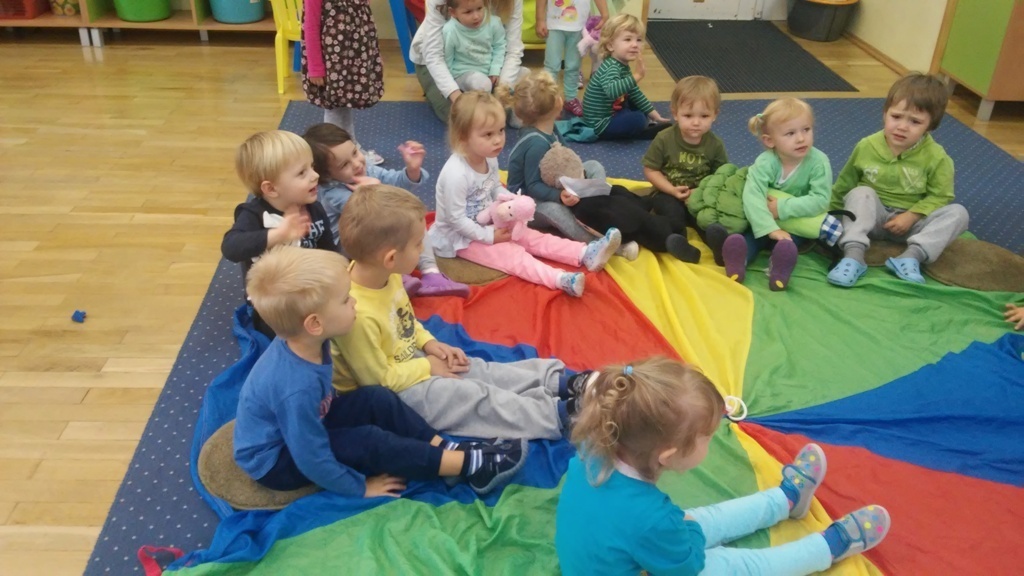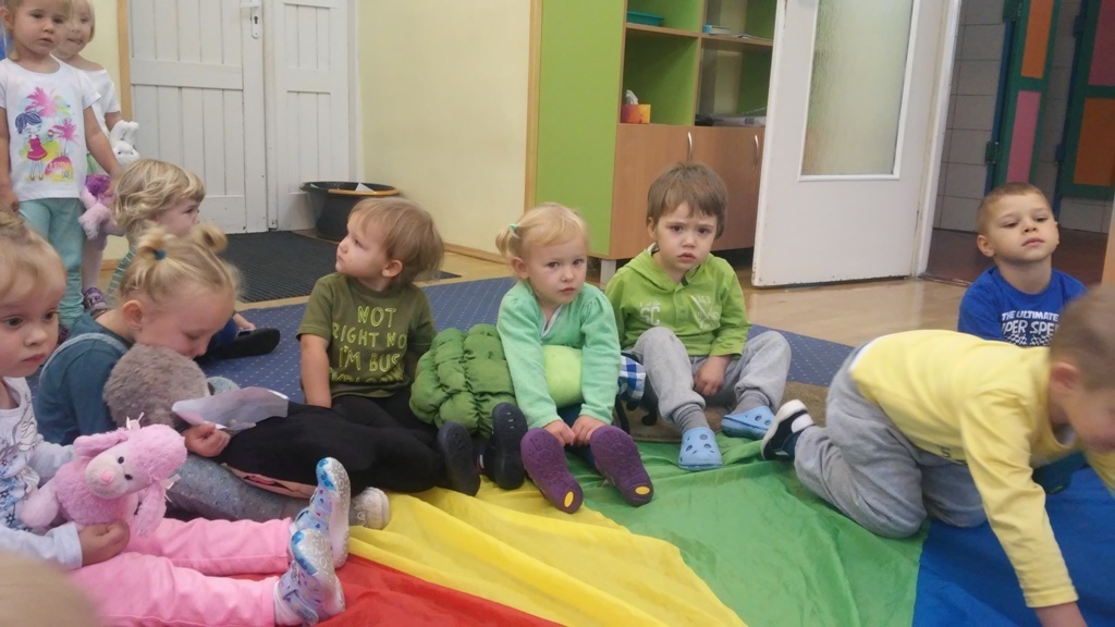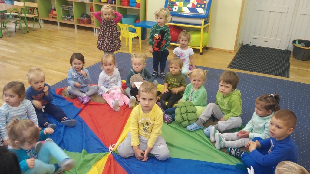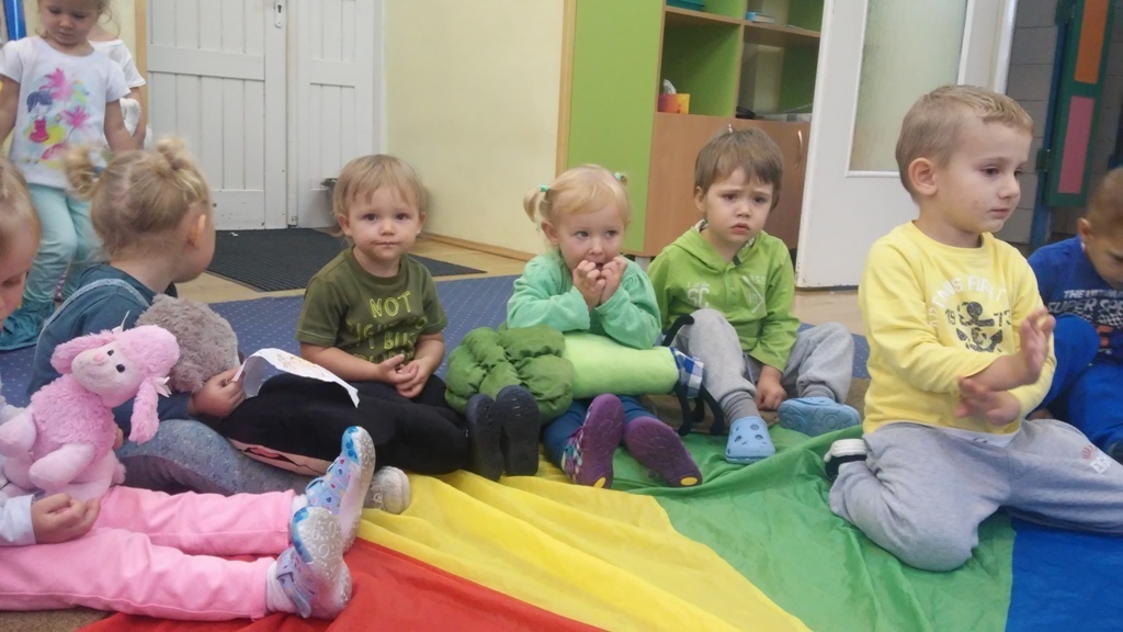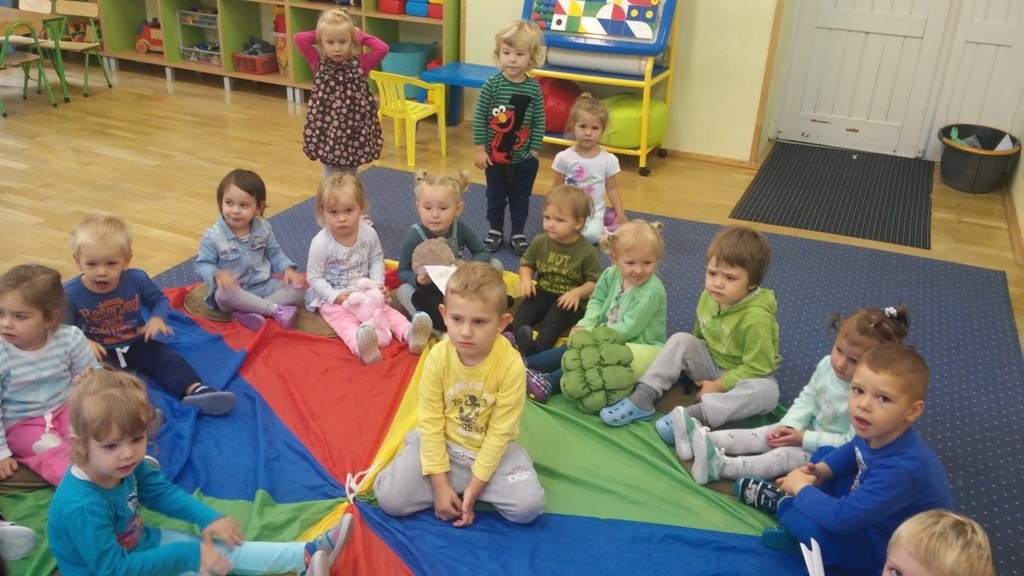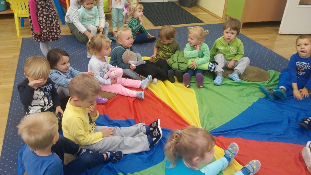 22 września, to bardzo wyjątkowy dzień dla wszystkich przedszkolaków a w szczególności dla naszych „Smyków”, które po raz pierwszy miały okazję obchodzić „Dzień przedszkolaka” . Zgodnie z wcześniejszymi ustaleniami ubraliśmy się na niebiesko. Do wspólnej zabawy zaprosiliśmy naszych kolegów i koleżanki z młodszej grupy. Zabawie i tańcom nie było końca, a kolory naszych grup - niebieski i zielony przeplatały się wśród bawiących się dzieci. Na zakończenie spotkania czekała nas jeszcze słodka niespodzianka. Po zabawie wspólnie ustaliliśmy, że takich „maluszkowych imprez” musi być więcej i na pewno już wkrótce zdamy z nich kolejne relacje.