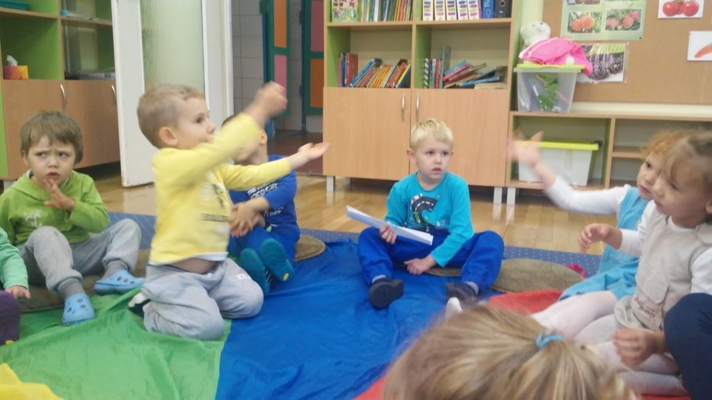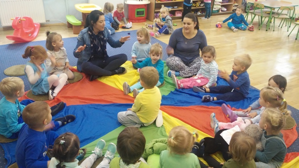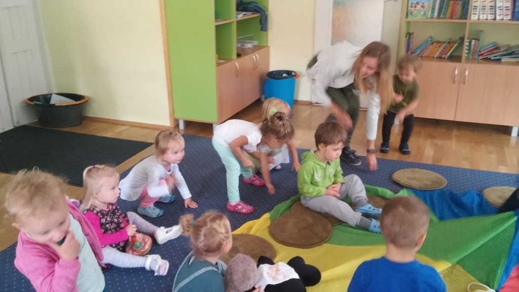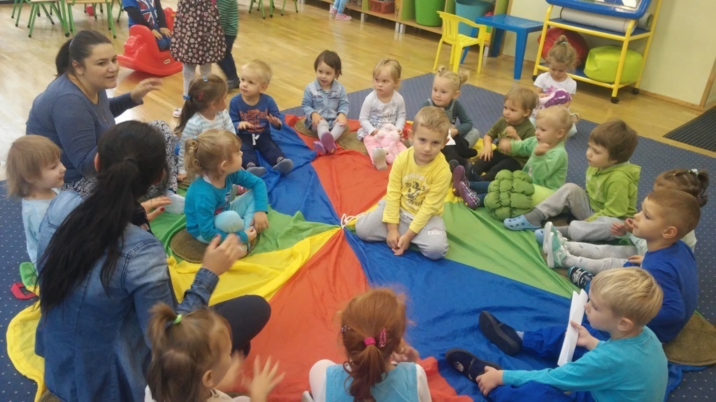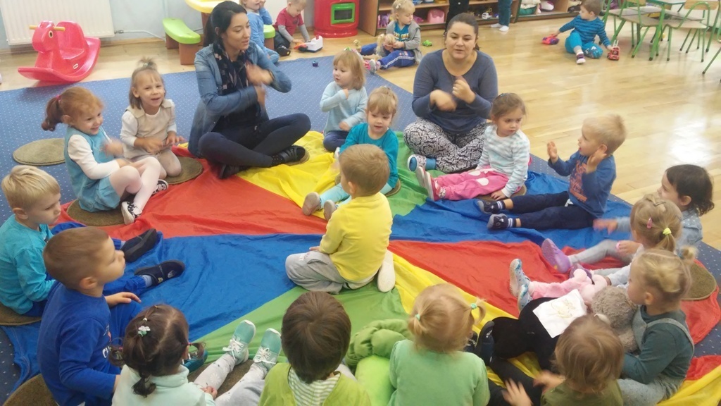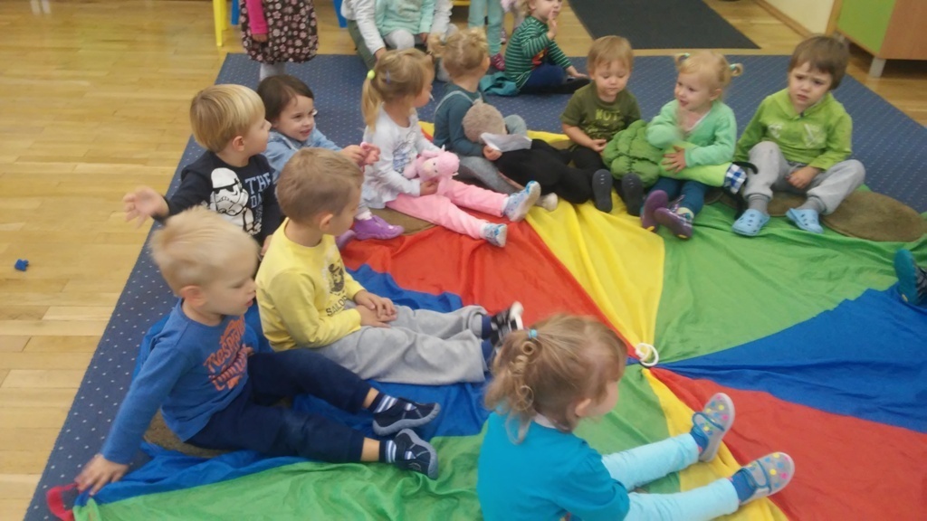 22 września, to bardzo wyjątkowy dzień dla wszystkich przedszkolaków a w szczególności dla naszych „Smyków”, które po raz pierwszy miały okazję obchodzić „Dzień przedszkolaka” . Zgodnie z wcześniejszymi ustaleniami ubraliśmy się na niebiesko. Do wspólnej zabawy zaprosiliśmy naszych kolegów i koleżanki z młodszej grupy. Zabawie i tańcom nie było końca, a kolory naszych grup - niebieski i zielony przeplatały się wśród bawiących się dzieci. Na zakończenie spotkania czekała nas jeszcze słodka niespodzianka. Po zabawie wspólnie ustaliliśmy, że takich „maluszkowych imprez” musi być więcej i na pewno już wkrótce zdamy z nich kolejne relacje.