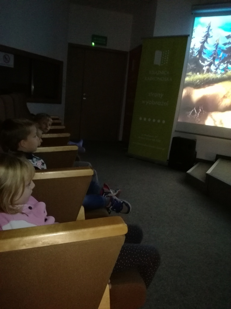 W dniu 11.10.2016 r grupa Tygrysków po raz kolejny odwiedziła Książnicę Karkonoską. Wizytę rozpoczęliśmy od przypomnienia sobie czynności podczas oddawania i wypożyczania książek. Po oddaniu książek wspólnie wybraliśmy, aż trzy nowe do przeczytania. Z nowymi książkami udaliśmy się do sali konferencyjnej, w której obejrzeliśmy bajkę pt. „Czerwony Kapturek - Prawdziwa historia”. Historia ta nawiązywała do całotygodniowego cyklu zajęć prowadzonych w przedszkolu, podczas których właśnie rozmawialiśmy o bajkach.