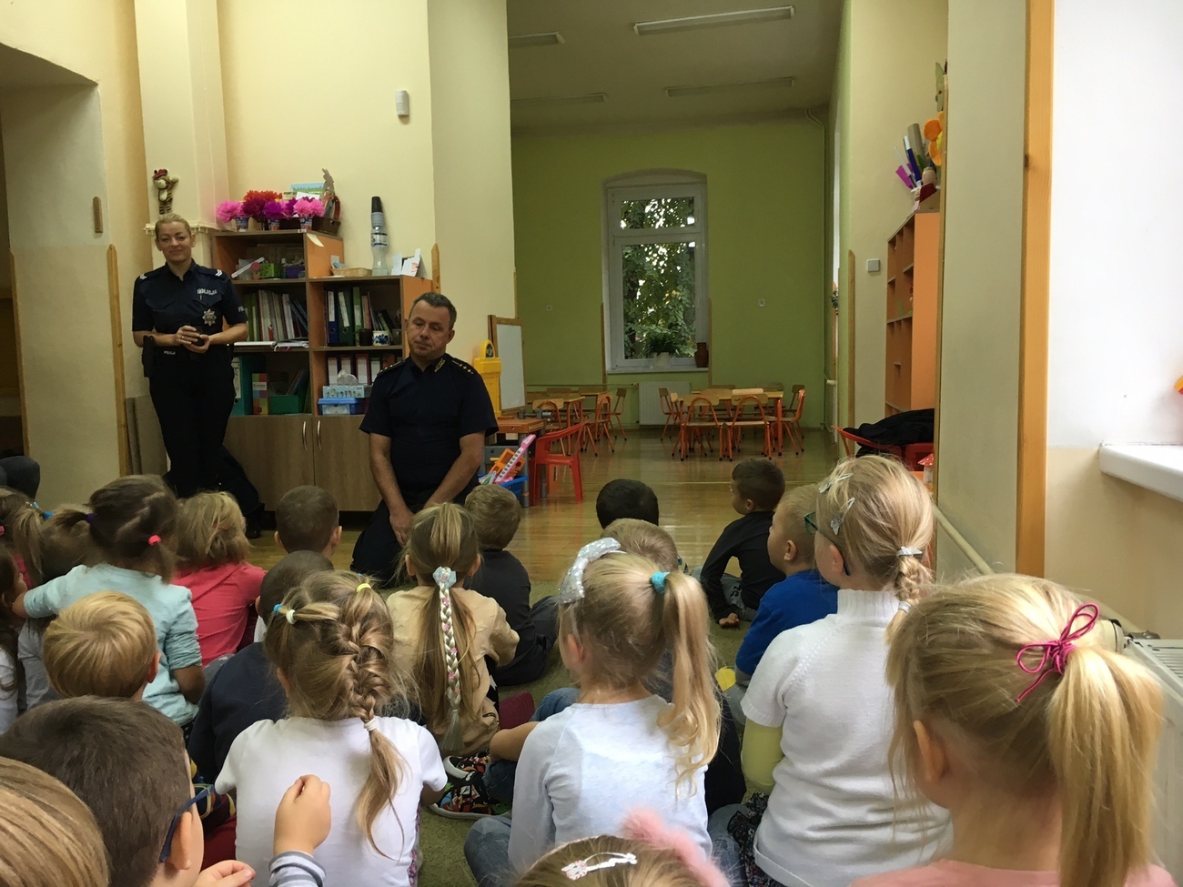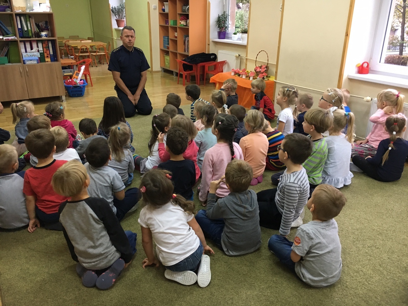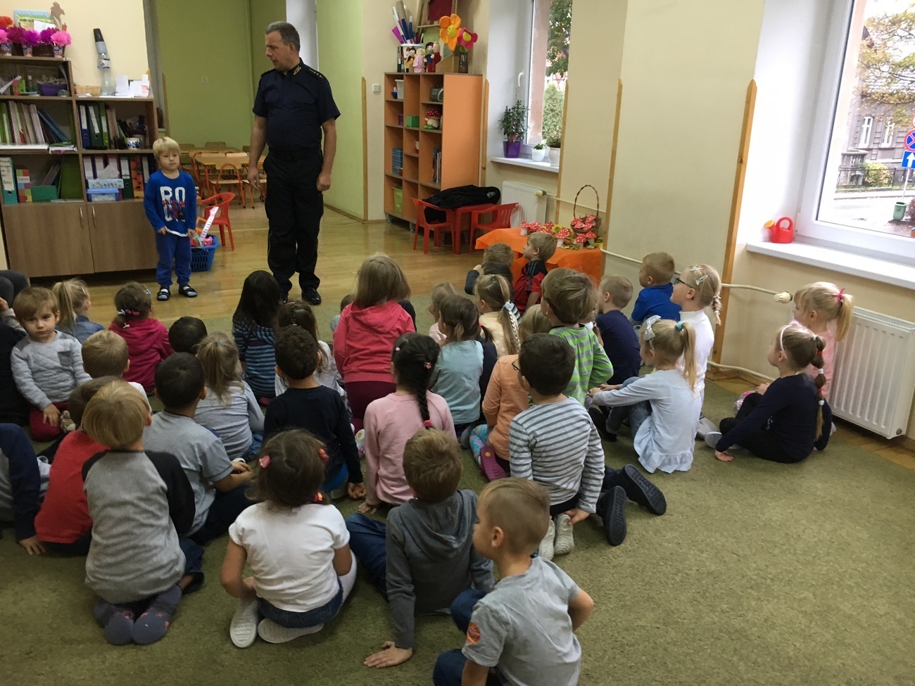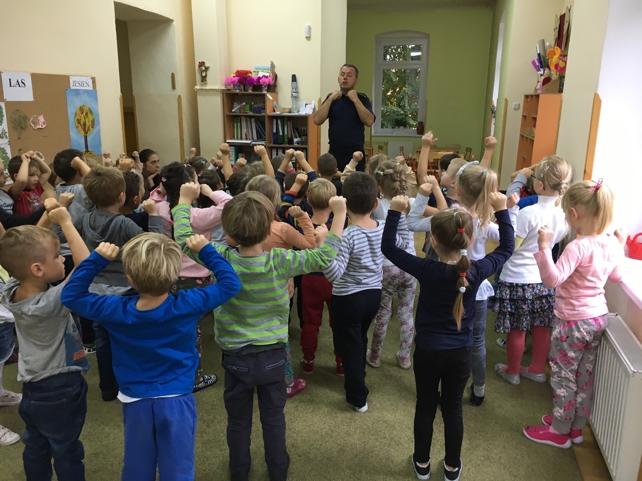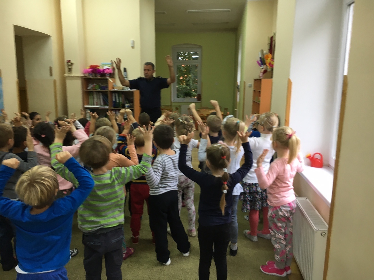 Dnia 13.10.2014r. Mieliśmy w przedszkolu specjalnych gości: pana Grzegorza i panią Beatę. Pan Grzegorz jest pracownikiem w Straży Miejskiej w Jeleniej Górze, a pani Beatka pracuje w Policji. Przyszli do nas rozmawiać o przyjaźni. Dowiedzieliśmy się jak mamy zachowywać się podczas spacerów, wycieczek, na przejściach dla pieszych oraz jak wspólnie dbać o bezpieczeństwo. Pan Grzesiu nauczył nas jak prawidłowo przyjąć postawę drzewa na wypadek spotkania z psem. Nasza rozmowa z panem Grzesiem zakończyła się wręczeniem certyfikatu przyjaźni. Już czekamy na następne spotkania.