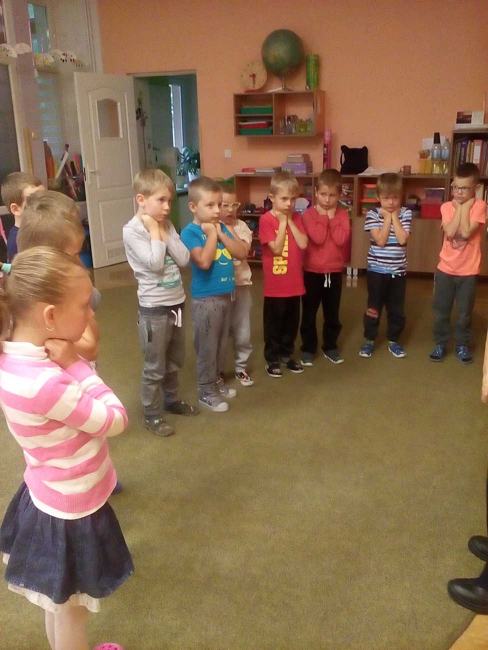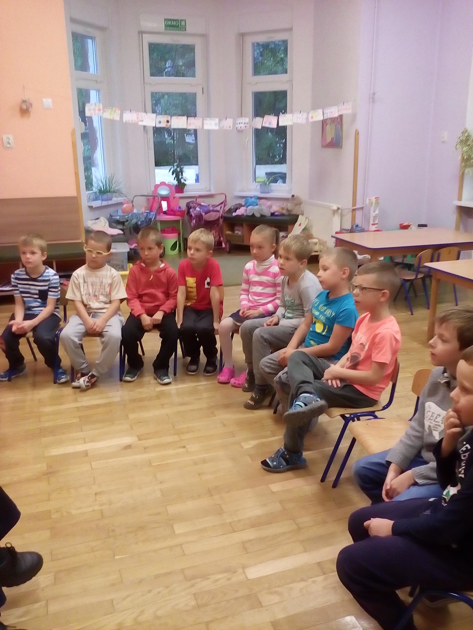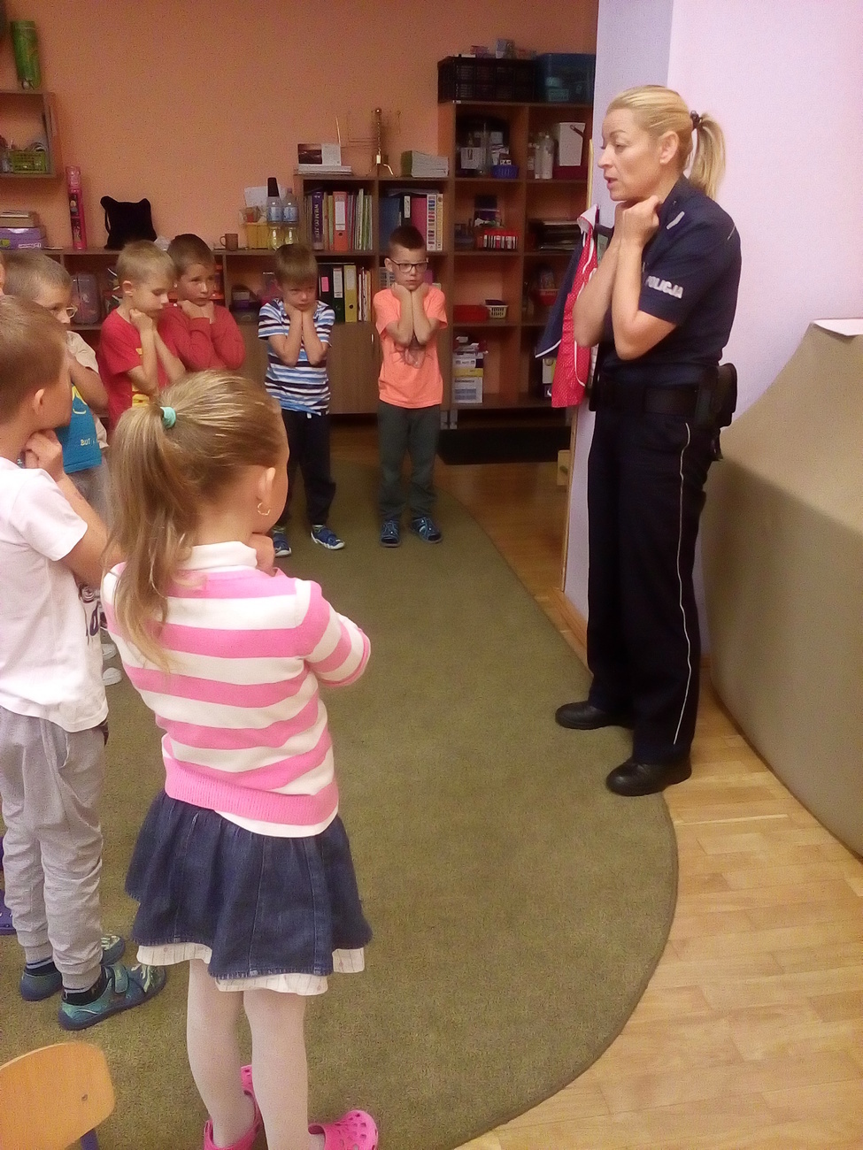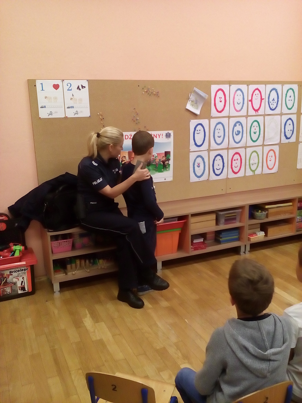 W dniu dzisiejszym wszystkie dzieci 6-letnie miały okazję uczestniczyć w spotkaniu z panią policjantką z Komendy Miejskiej Policji w Jeleniej Górze. Podczas zajęć dowiedzieliśmy się jak postępować w różnych sytuacjach niespodziewanych. Powtórzyliśmy zasady postępowania w przypadku bliskiego spotkania z dużym psem. Jak również dowiedzieliśmy się co to takiego jest terroryzm. Zdobyte wiadomości wyposażyły nas w ważną wiedzę, Wszystkim zajęcia bardzo się podobały.