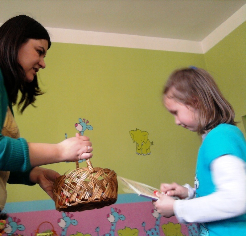 Wykonane zostały 23 ciekawe pisanki /każde dziecko dwie sztuki/ oraz osiem palm wielkanocnych. Grupy młodsze I,II,III - /2,5 - 4 lat/ wykonywały palmy. Grupy strasze IV,V - /5 - 6 latki/ wykonywały pisanki.