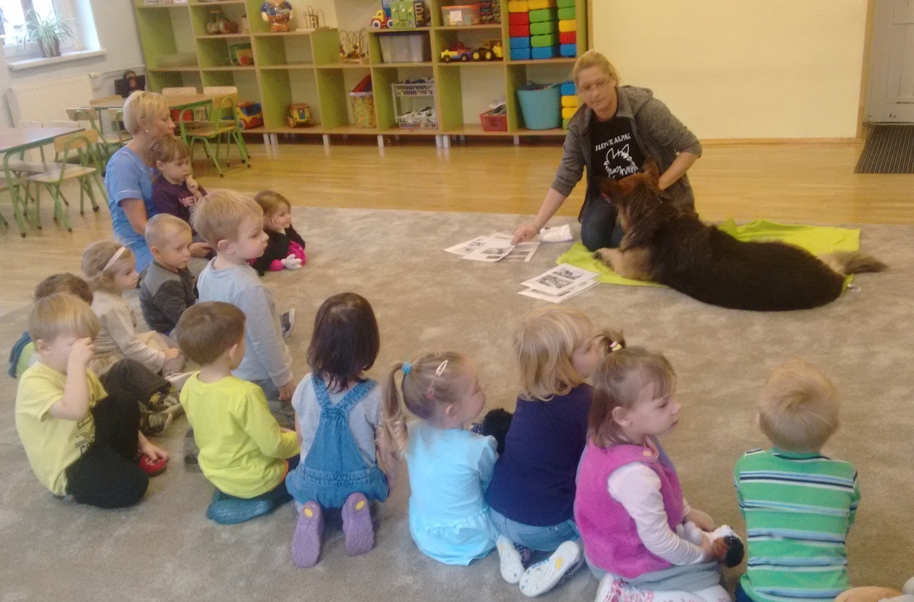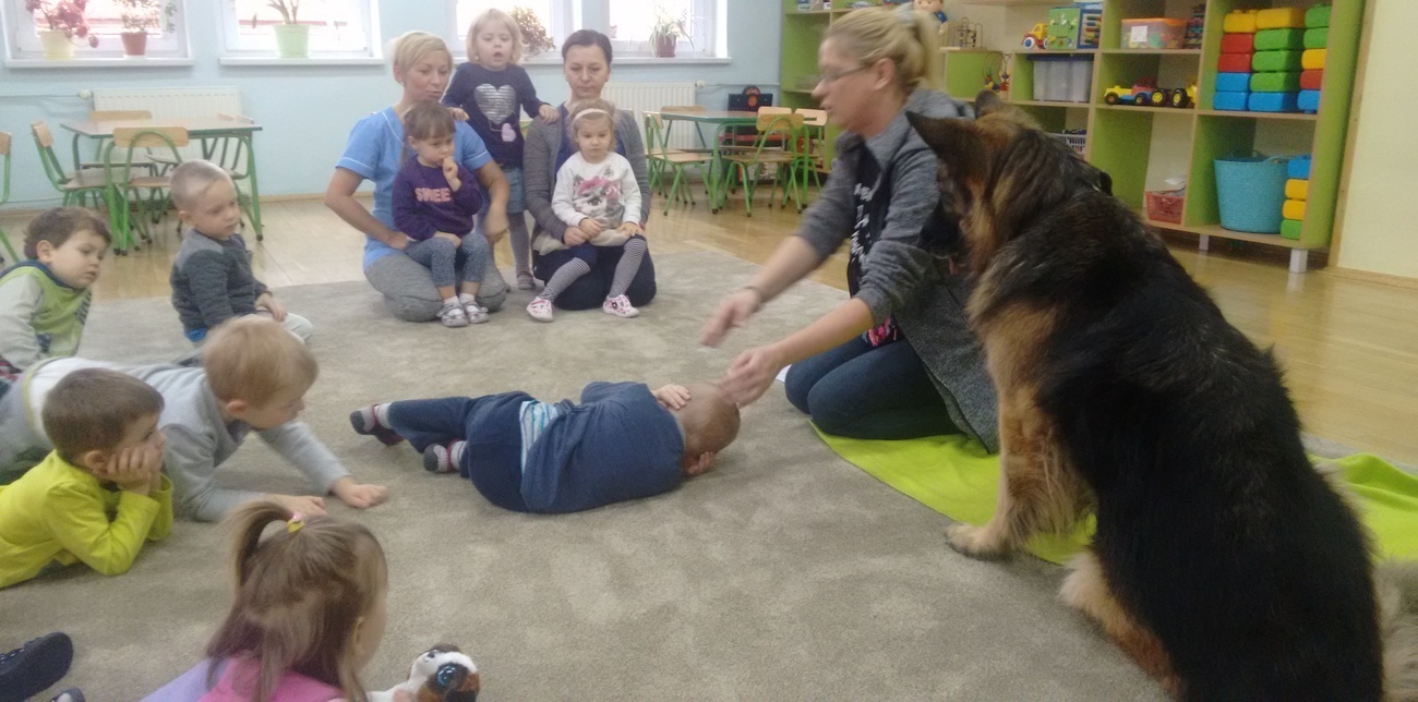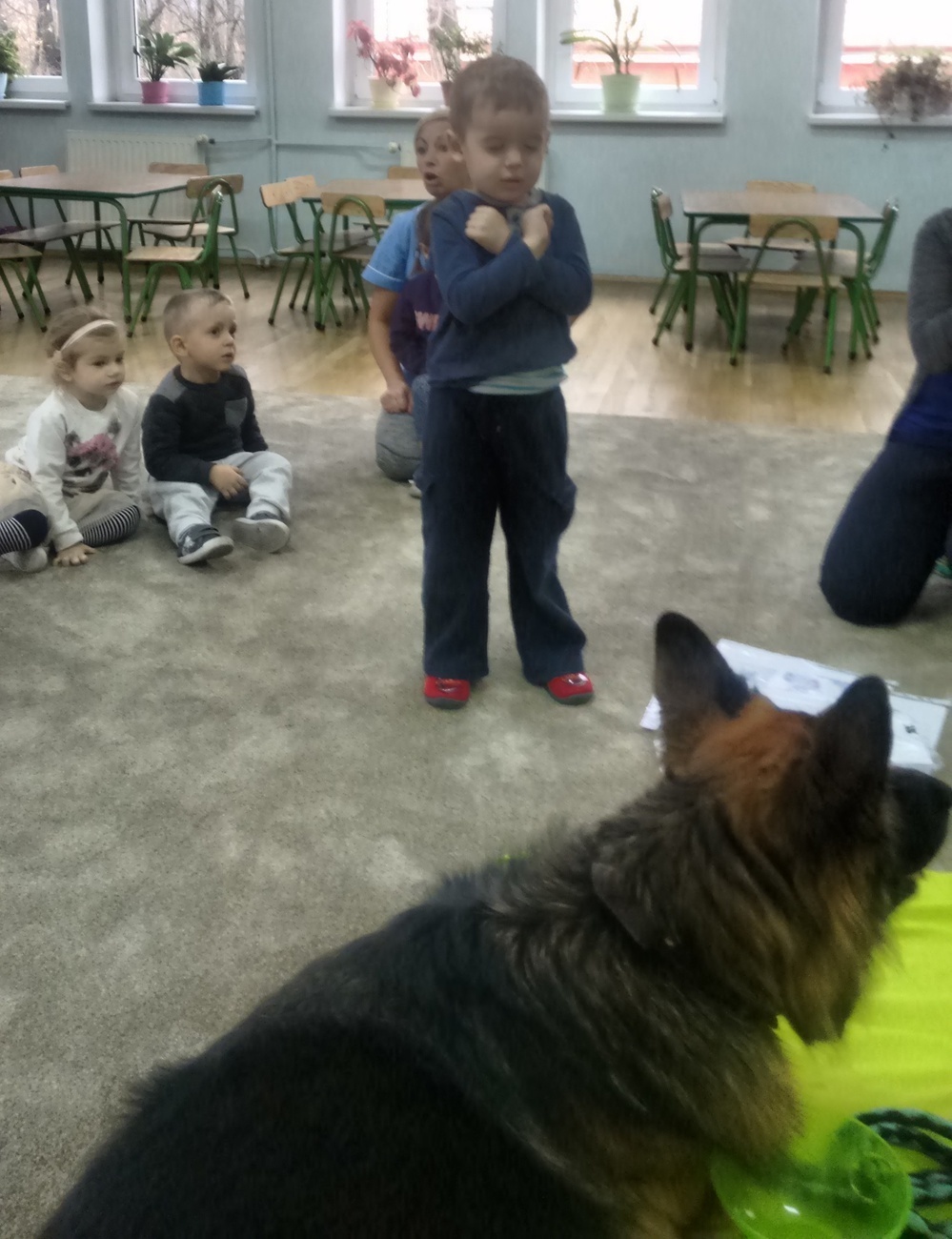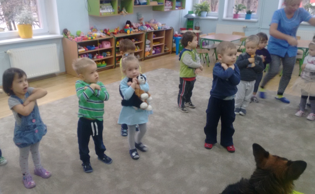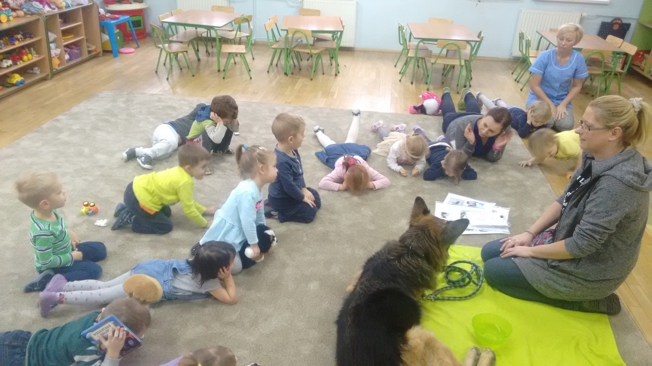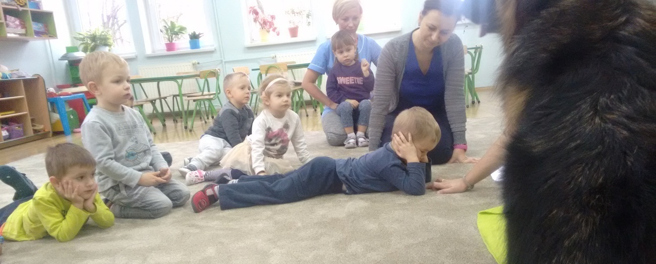 Dnia 02.12.2016 r. naszych przedszkolaków odwiedziła Wandzia - owczarek niemiecki wraz ze swoim opiekunem. W czasie tego spotkania dzieci dowiedziały się jaką rolę odgrywa pies w ratownictwie. Nauczyły się także jak bezpiecznie i odpowiedzialnie postępować z psem. Dzieci poznały pozycje bezpieczne, które należy zastosować w kontakcie z obcym, niebezpiecznym psem. Nasze Smyki wykazały wielką odwagę, gdyż każde podeszło i pogłaskało Wandzię. Zajęcia te były dla naszych dzieci wielkim wydarzeniem i dostarczyły im wiele pozytywnej energii. Bardzo miło będziemy wspominać to spotkanie i jeszcze raz serdecznie dziękujemy Opiekunom Wandzi za ciekawie spędzony czas!