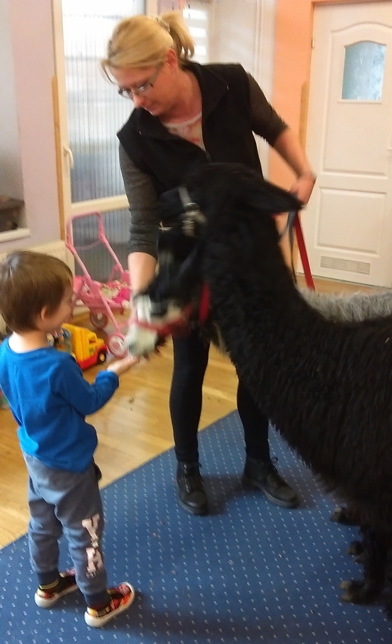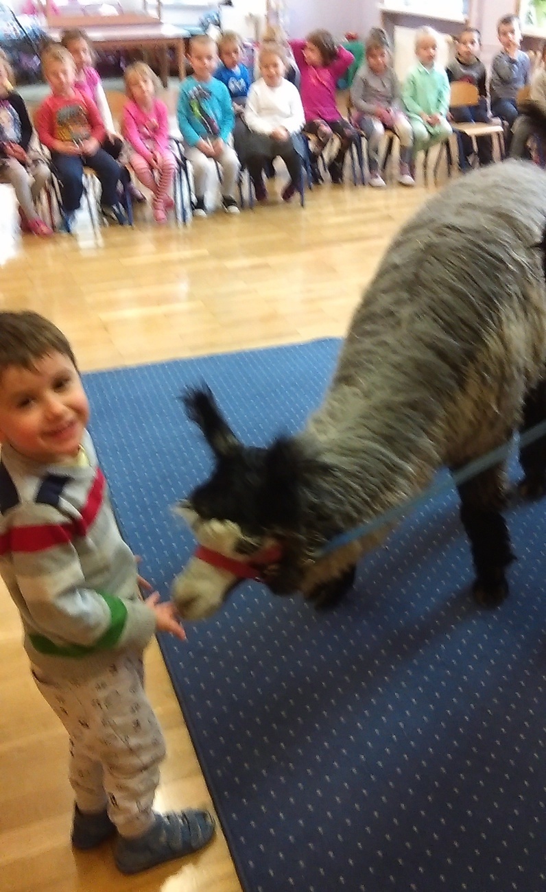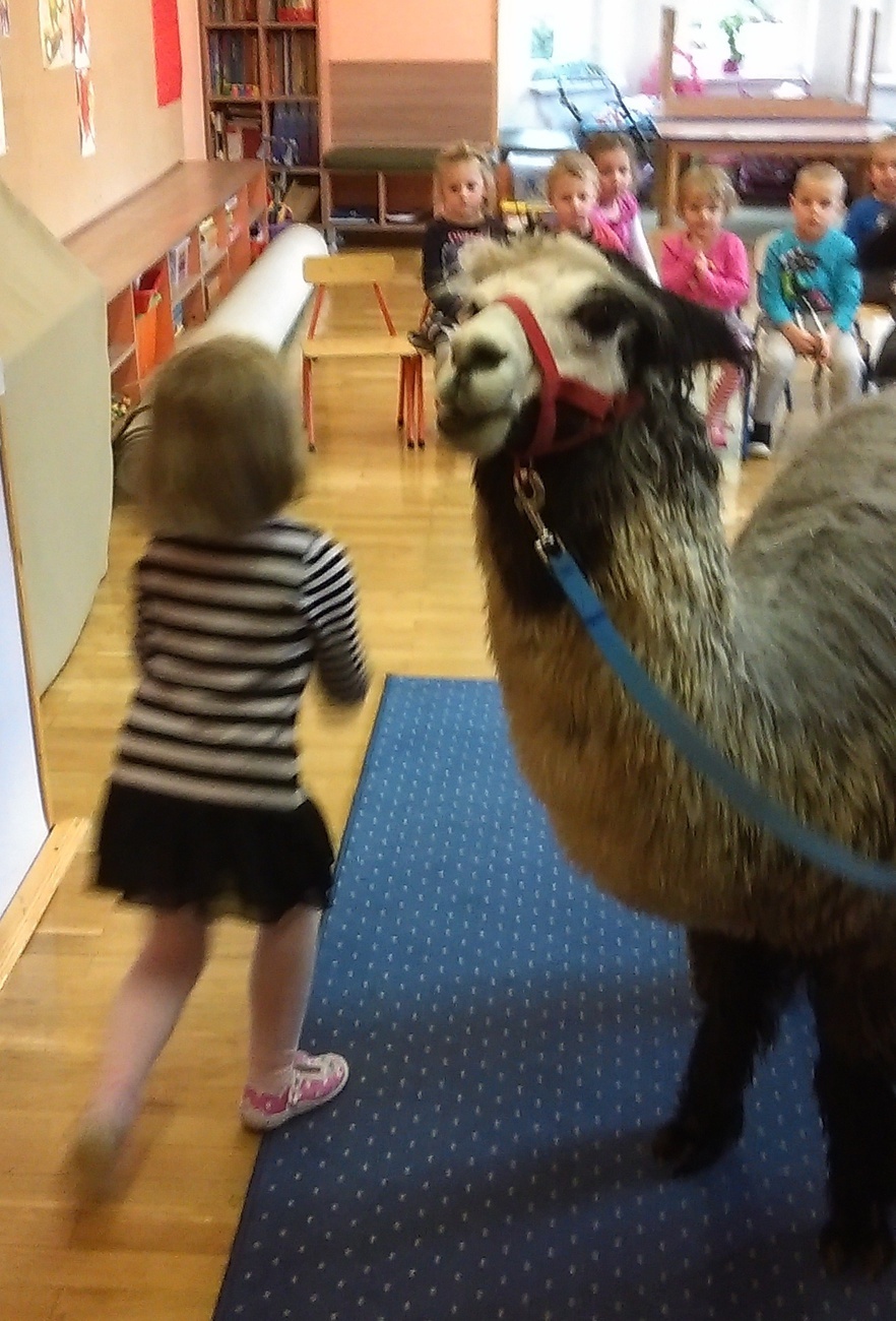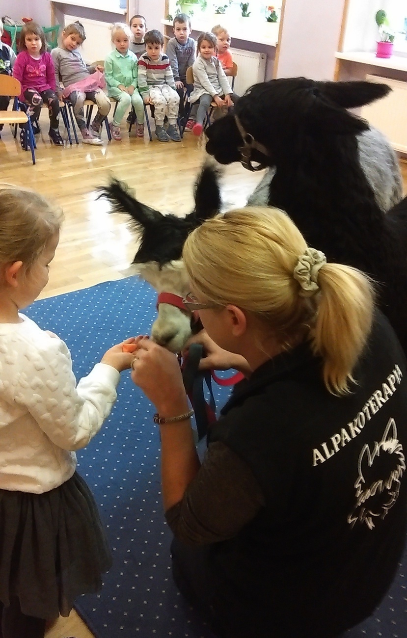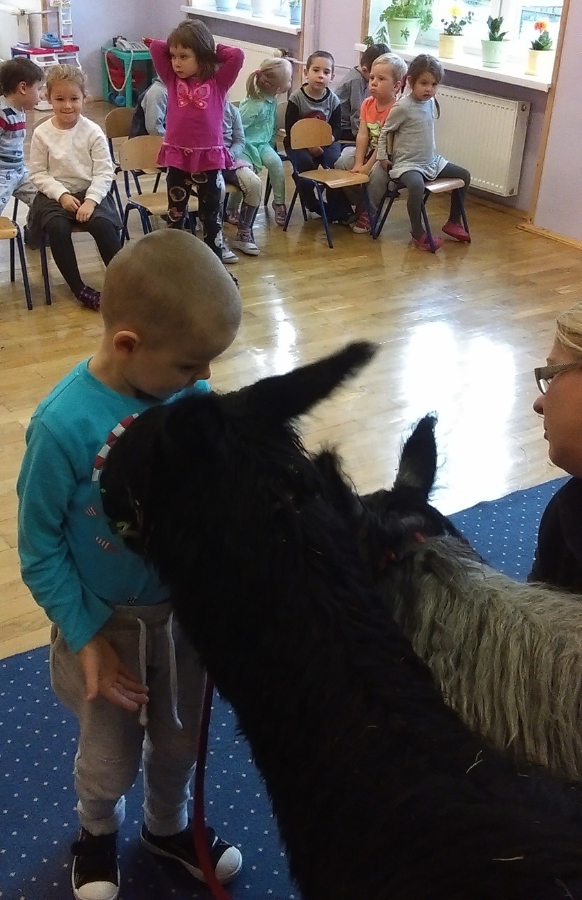 03.11.2016 r. gościły w naszym przedszkolu alpaki. Na samym początku spotkania pani opowiedziała nam o tym jak różne zwierzęta przygotowują się do zimy. Pokazała nam również ślady jakie pozostawiają na śniegu. Następnie rozmawialiśmy o tym jak wyglądają przygotowania do zimy aplaków. Na zakończenie każdy z nas mógł pogłaskać i nakarmić Klaksona i Szafira.