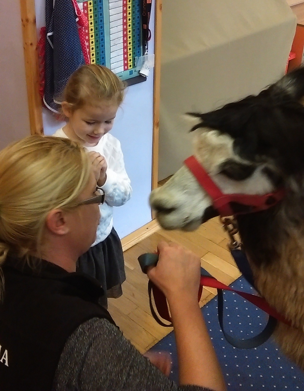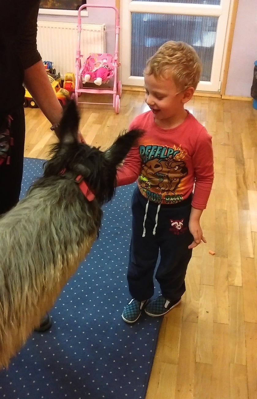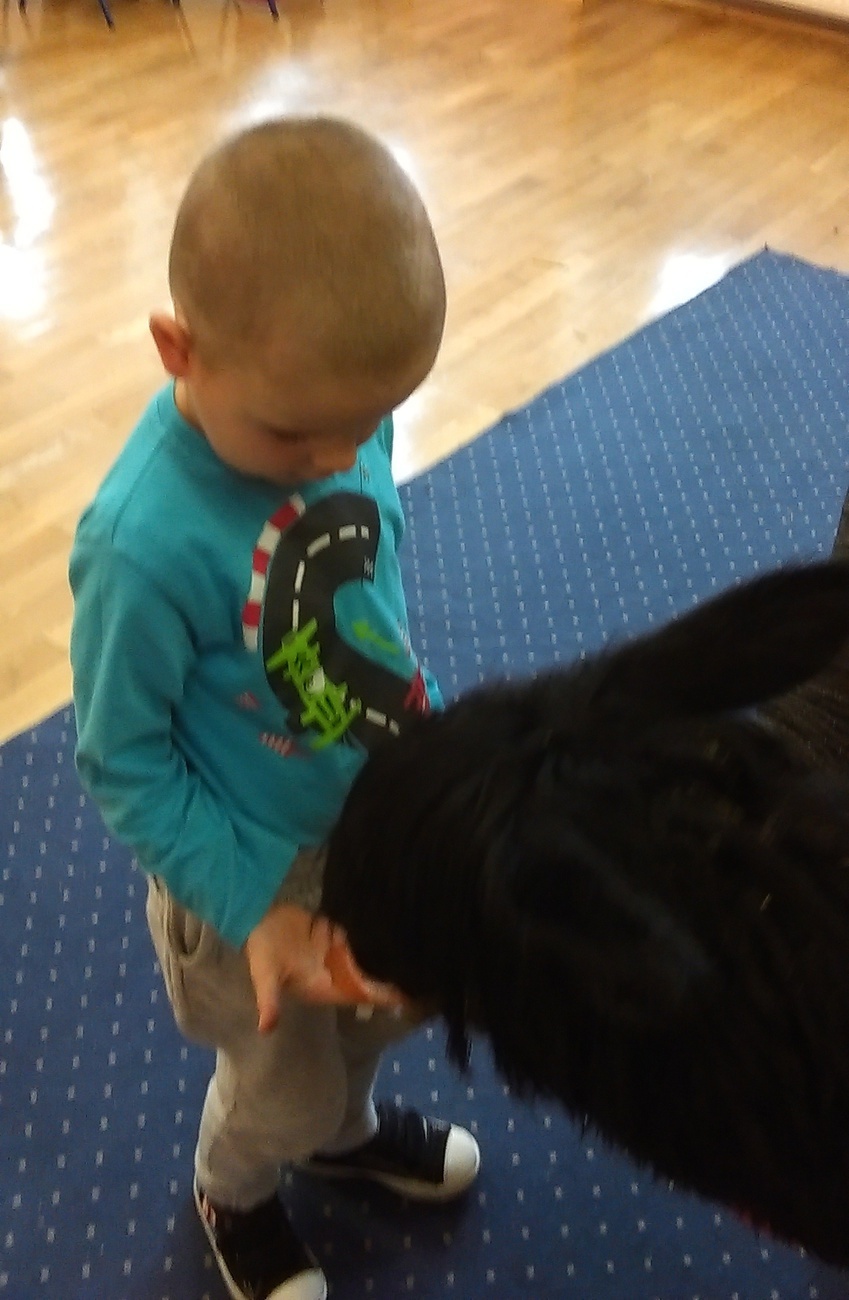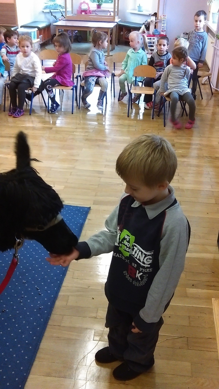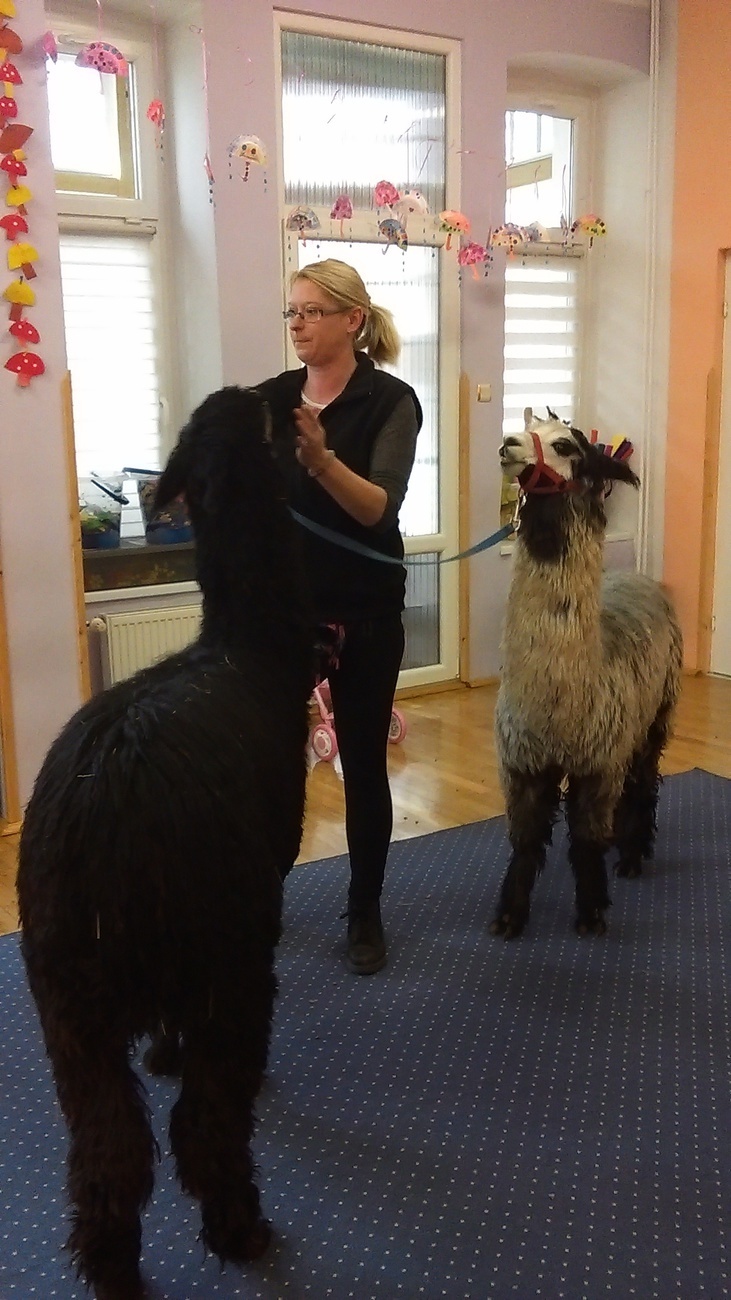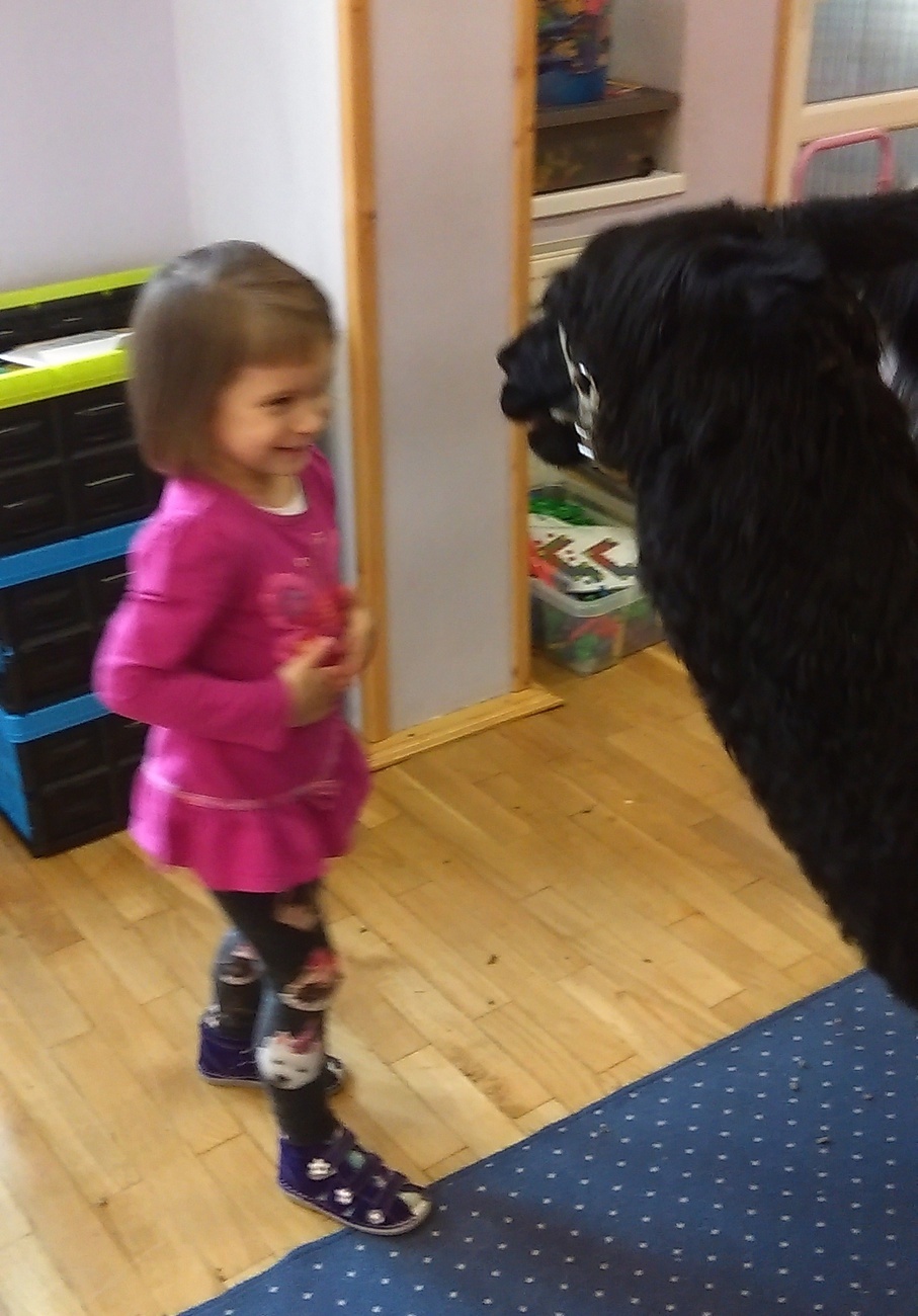 03.11.2016 r. gościły w naszym przedszkolu alpaki. Na samym początku spotkania pani opowiedziała nam o tym jak różne zwierzęta przygotowują się do zimy. Pokazała nam również ślady jakie pozostawiają na śniegu. Następnie rozmawialiśmy o tym jak wyglądają przygotowania do zimy aplaków. Na zakończenie każdy z nas mógł pogłaskać i nakarmić Klaksona i Szafira.